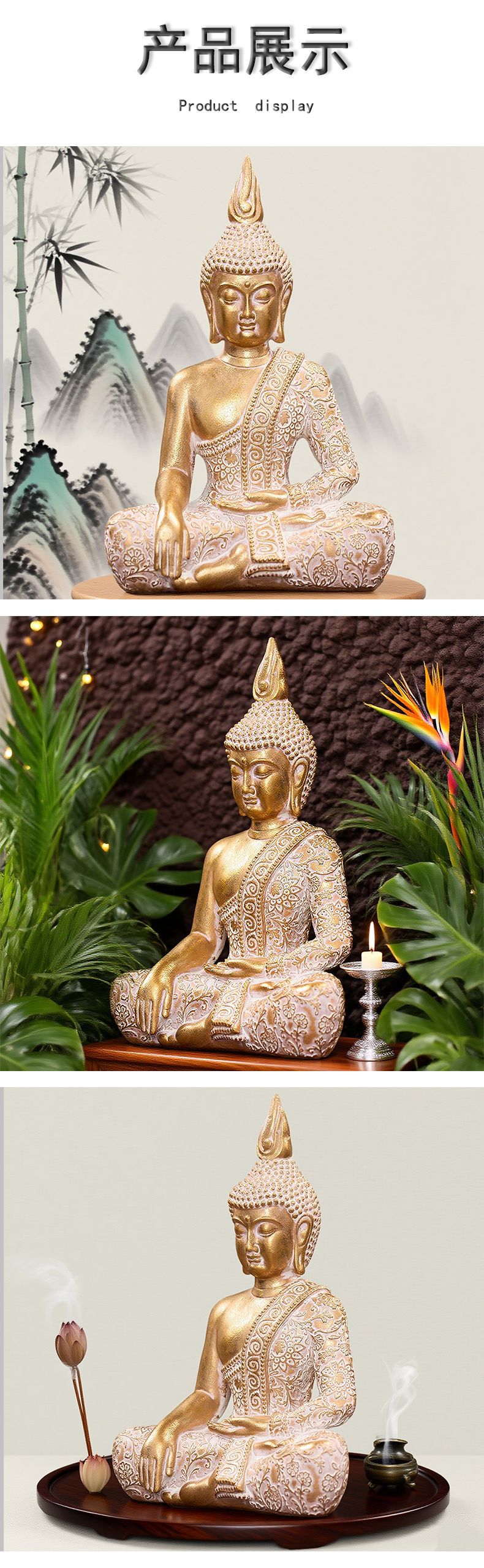 국경을 넘는 금색 불상 조각상, 태국 가정 및 다실 장식품, 선(禪) 스타일 동남아시아 장식품 및 공예품스토어 가기