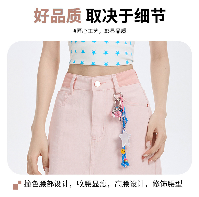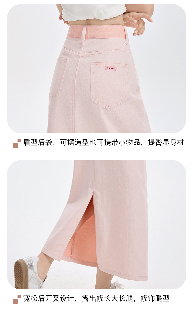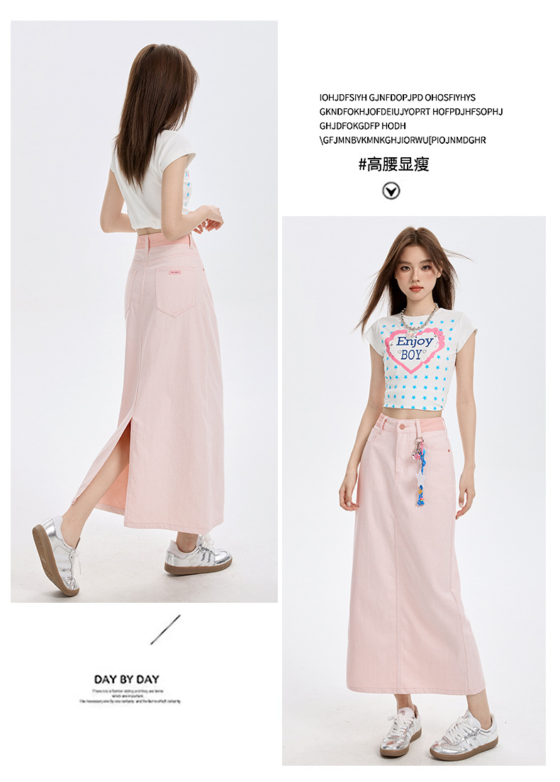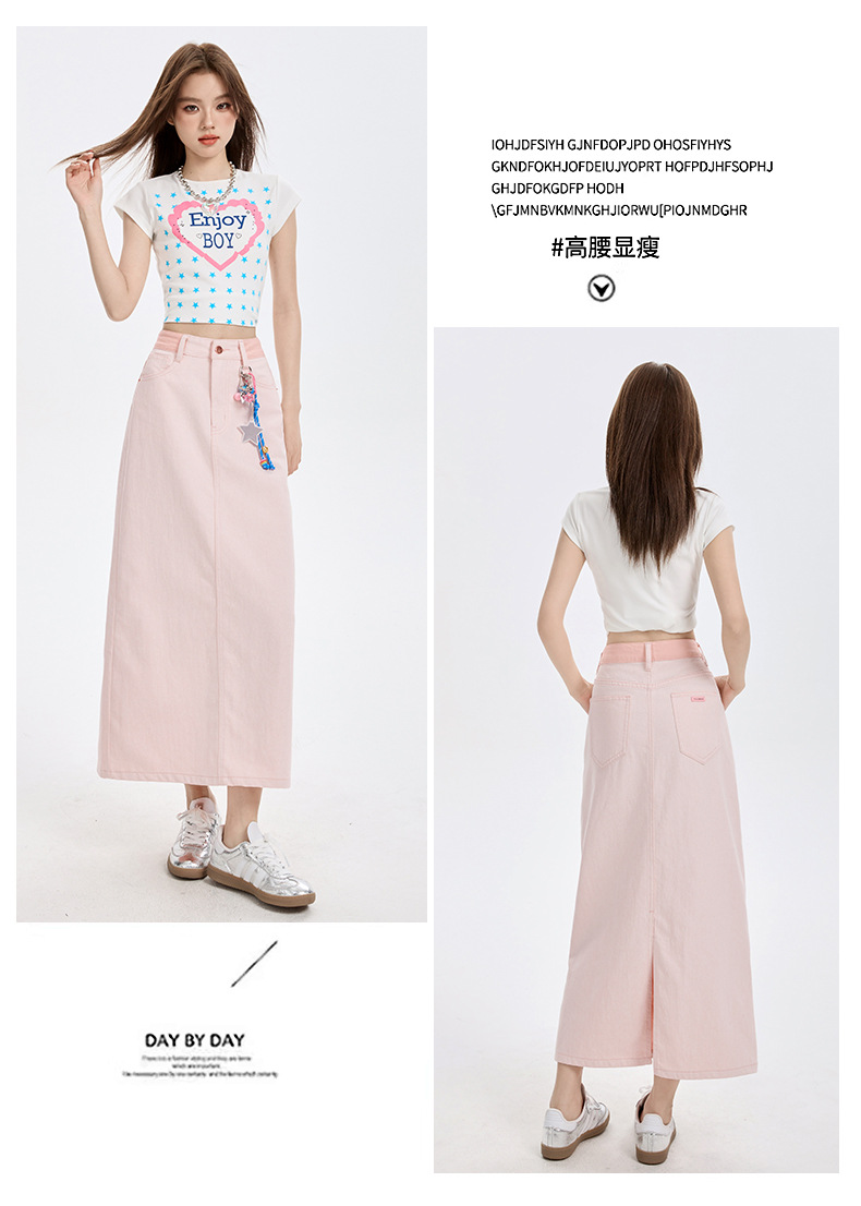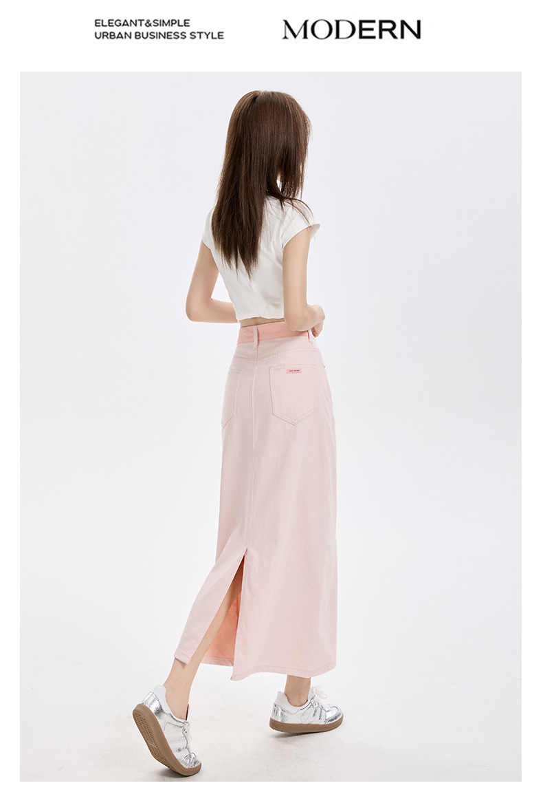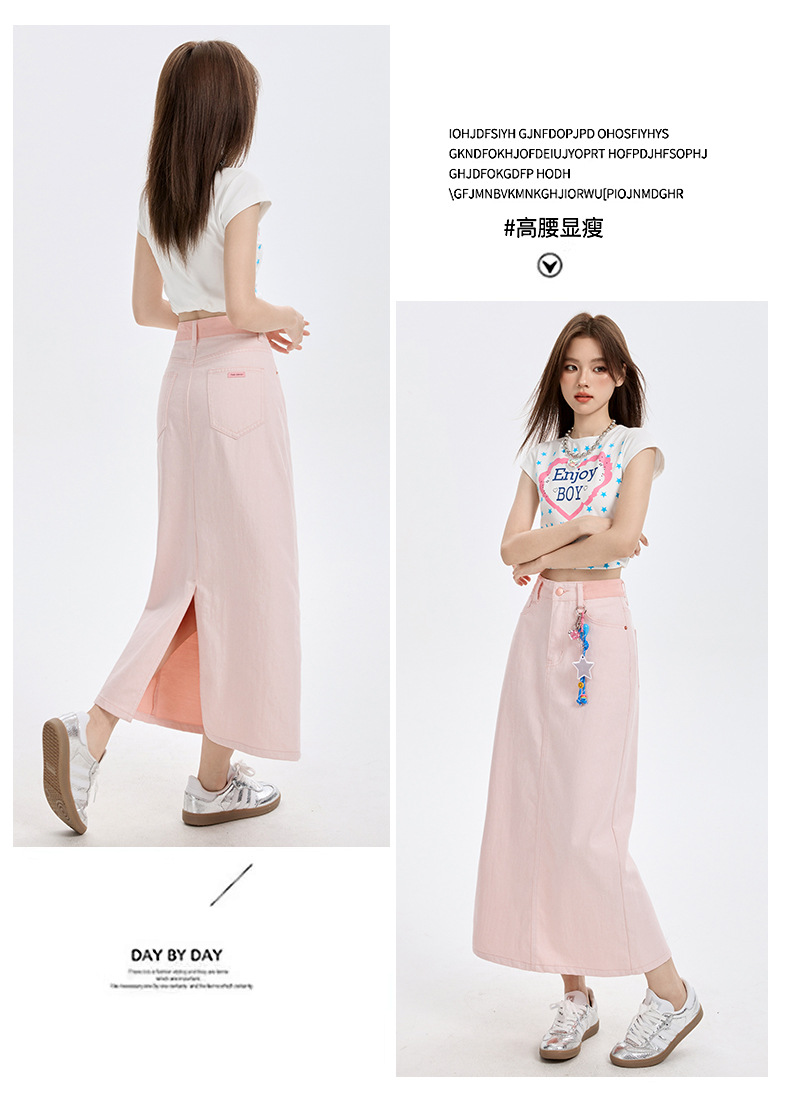 여름 여성을 위한 사쿠라 핑크 하이웨이스트 슬림 데님 스커트 뉴 백 슬릿 중간 길이 다용도 힙 커버 A라인 스커트스토어 가기