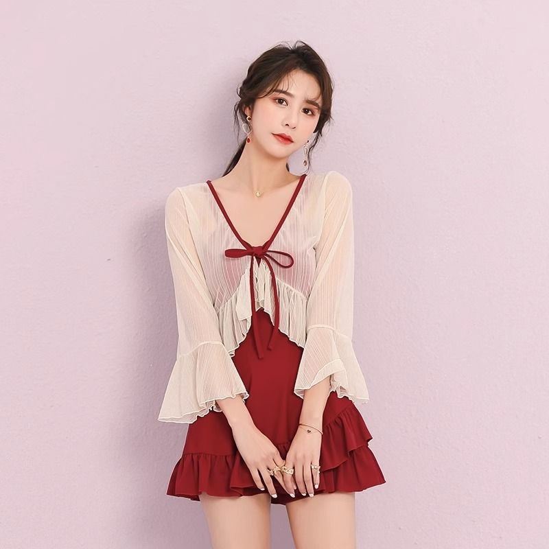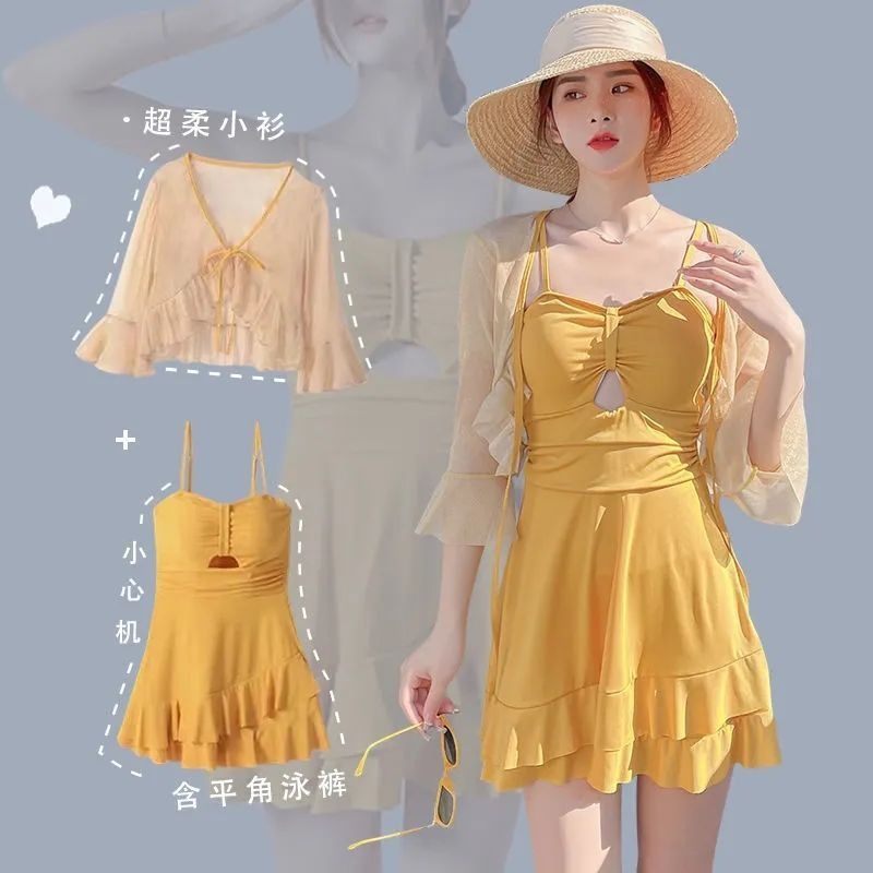 여성용 초가을 수영복, 온천욕, 새로운 패션, 인기 스타일, 배를 커버하고 슬림해 보이게 하는, 보수적인 휴가용 러플 원피스 수영복스토어 가기