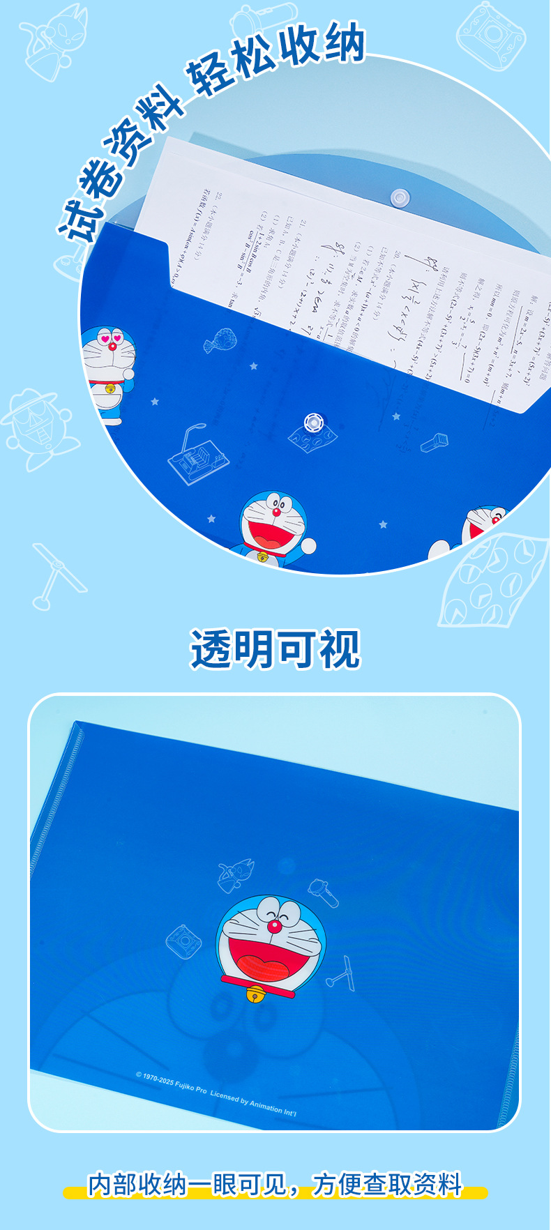 정품 도라에몽 스냅 가방 만화 학생 시험지 보관 가방 귀여운 징글 고양이 어린이 문서 가방 도매스토어 가기