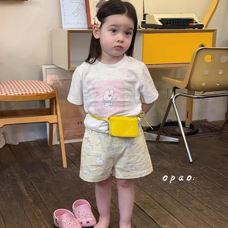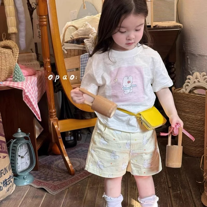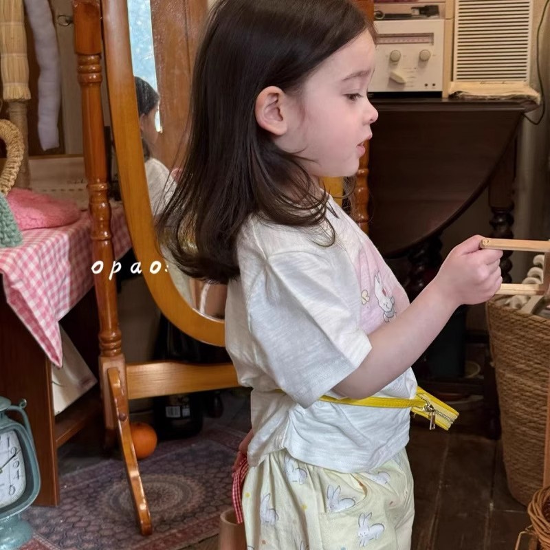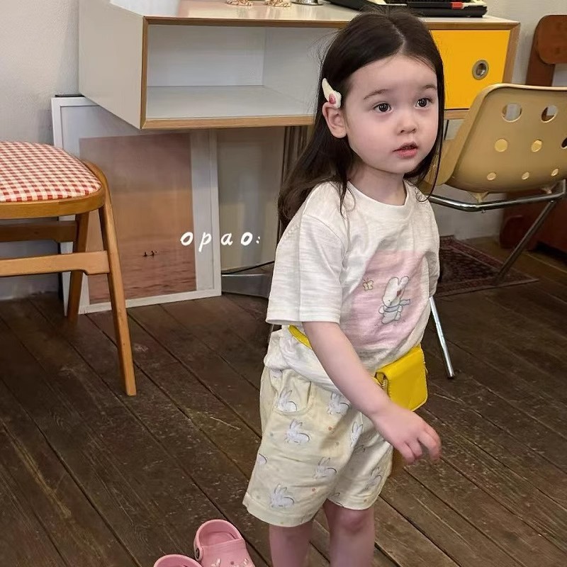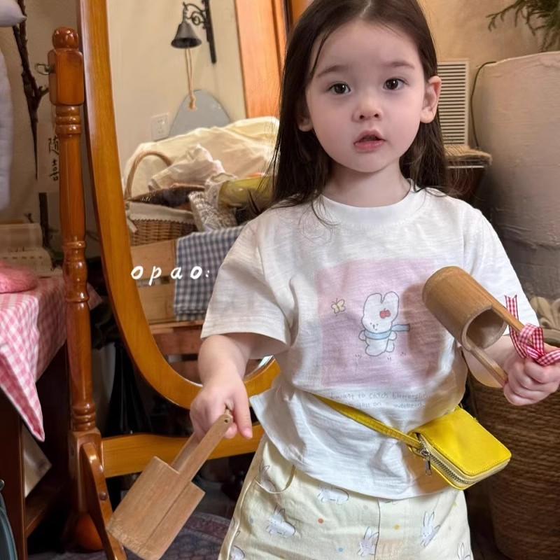 아기 소녀를위한 어린이 여름 한국 반팔 탑 유행 올 매치 통기성 편안한 대나무 면 귀여운 티셔츠