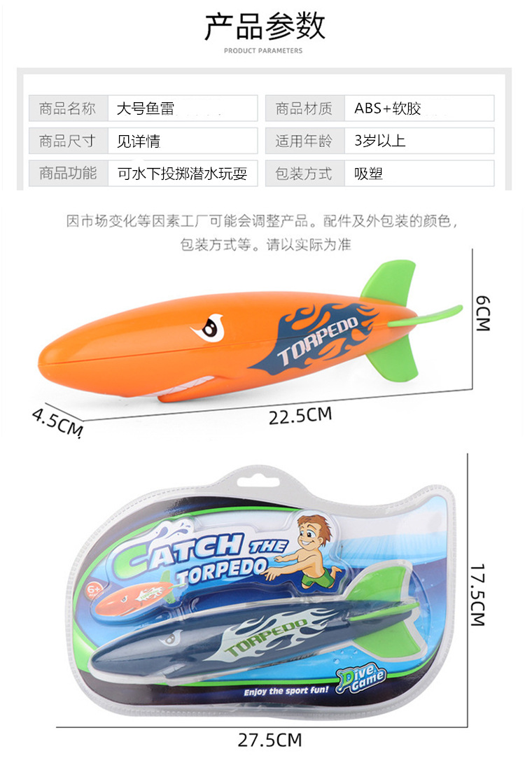 신제품 어린이 물놀이 장난감 수중 던지기 대형 상어 어뢰 수영장 다이빙 훈련 교육 보조 장치스토어 가기