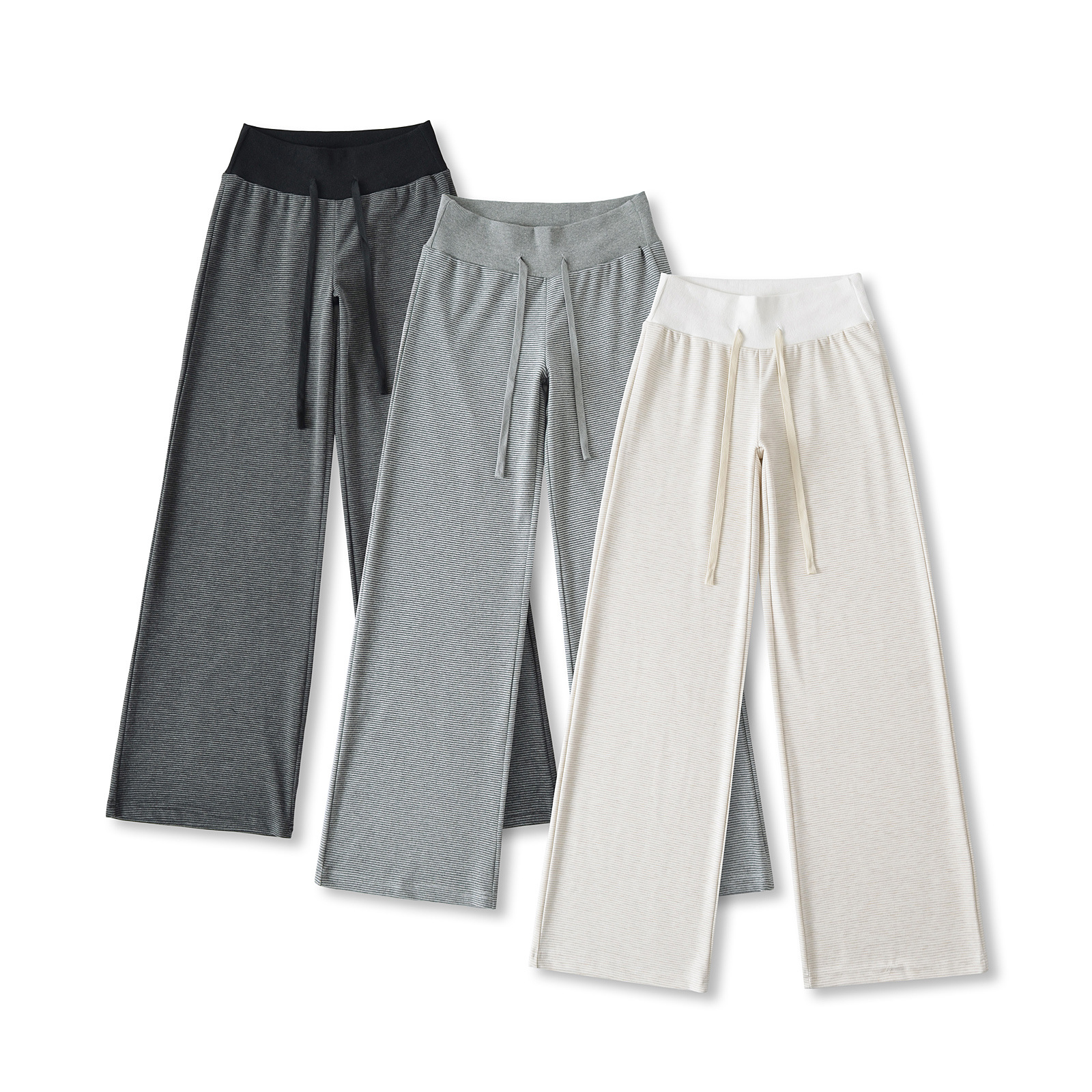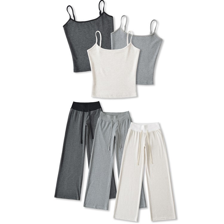 여성용 스트라이프 니트 서스펜더 바지 정장 여름 허리 타이 탑 드로스트링 루즈 스트레이트 드레이프 바닥 길이 바지스토어 가기