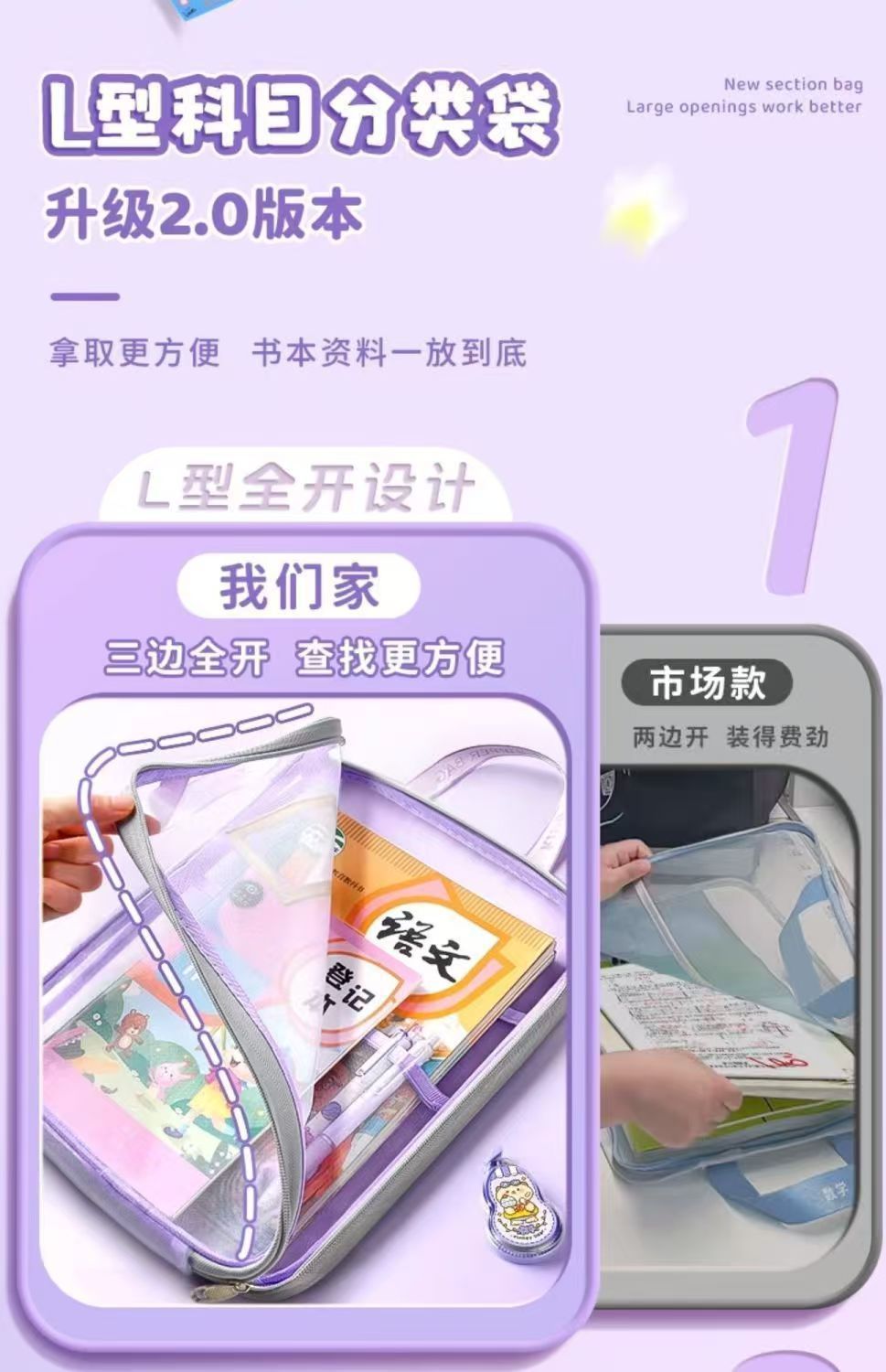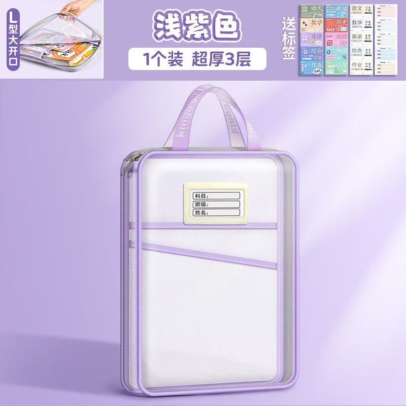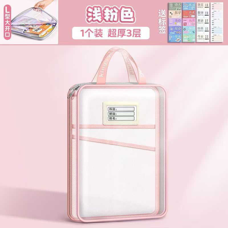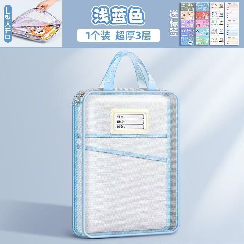 과목 분류 가방 L형 투명 파일 가방 A4 대용량 메쉬 시험지 보관 휴대용 책가방 지퍼형스토어 가기