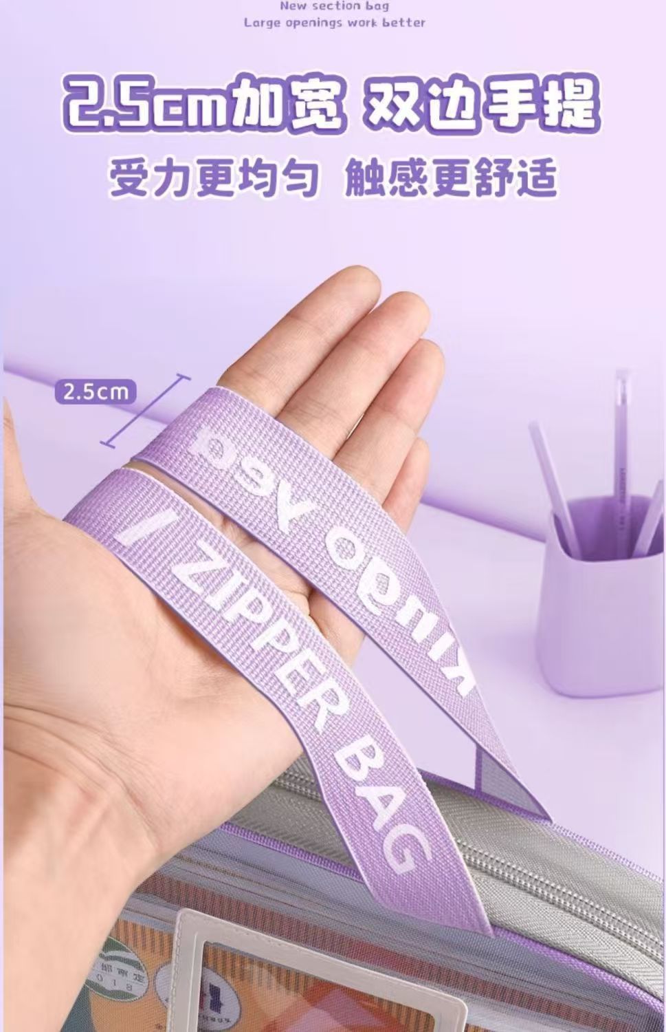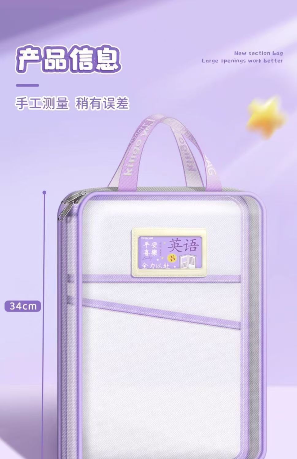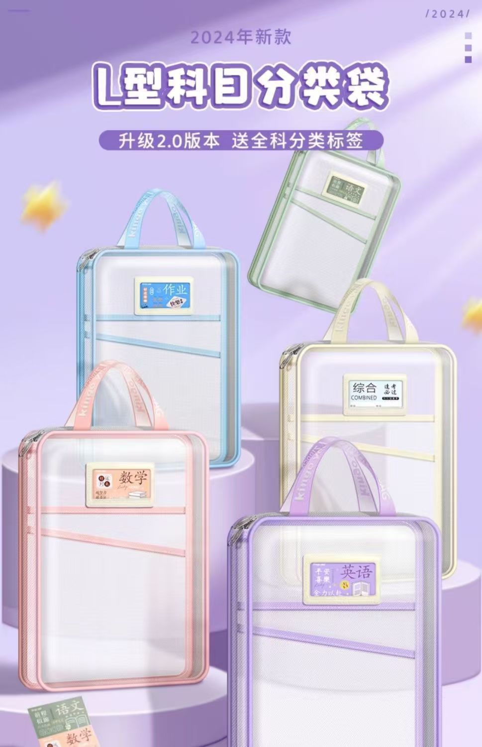 과목 분류 가방 L형 투명 파일 가방 A4 대용량 메쉬 시험지 보관 휴대용 책가방 지퍼형스토어 가기