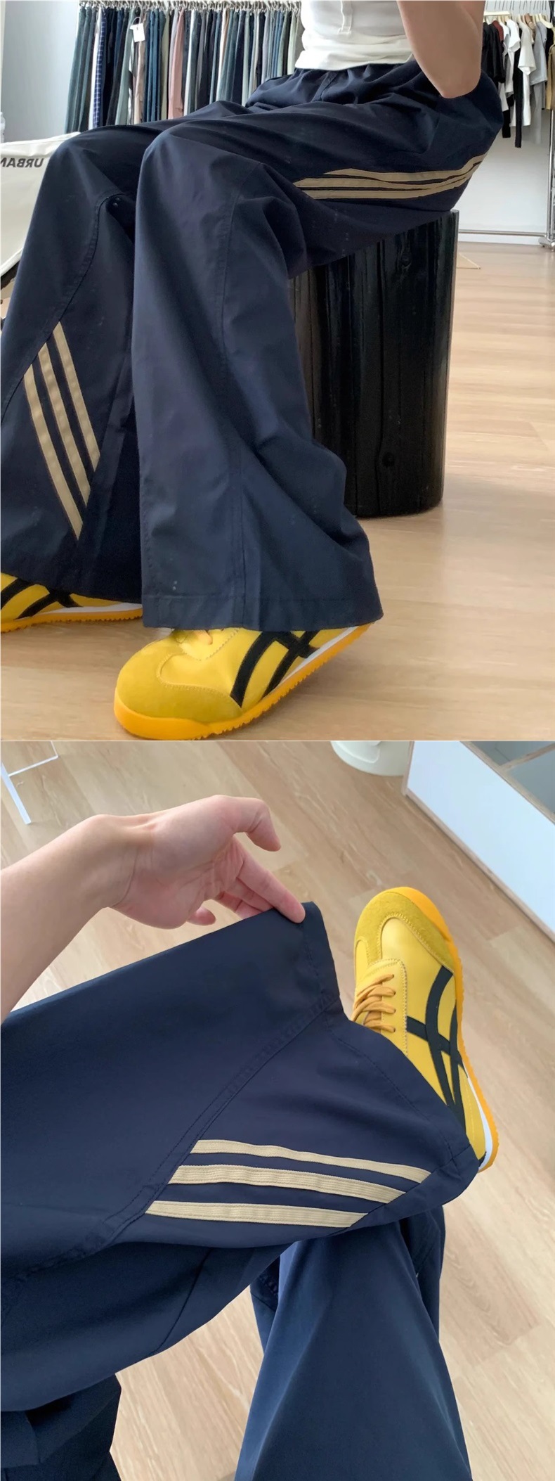 봄 여름 여성용 아메리칸 스트라이프 충전 스포츠 바지, 얇은 하이 웨이스트, 루즈하고 속건성 작업복, 패셔너블하고 새로운 스타일, 다재다능함스토어 가기