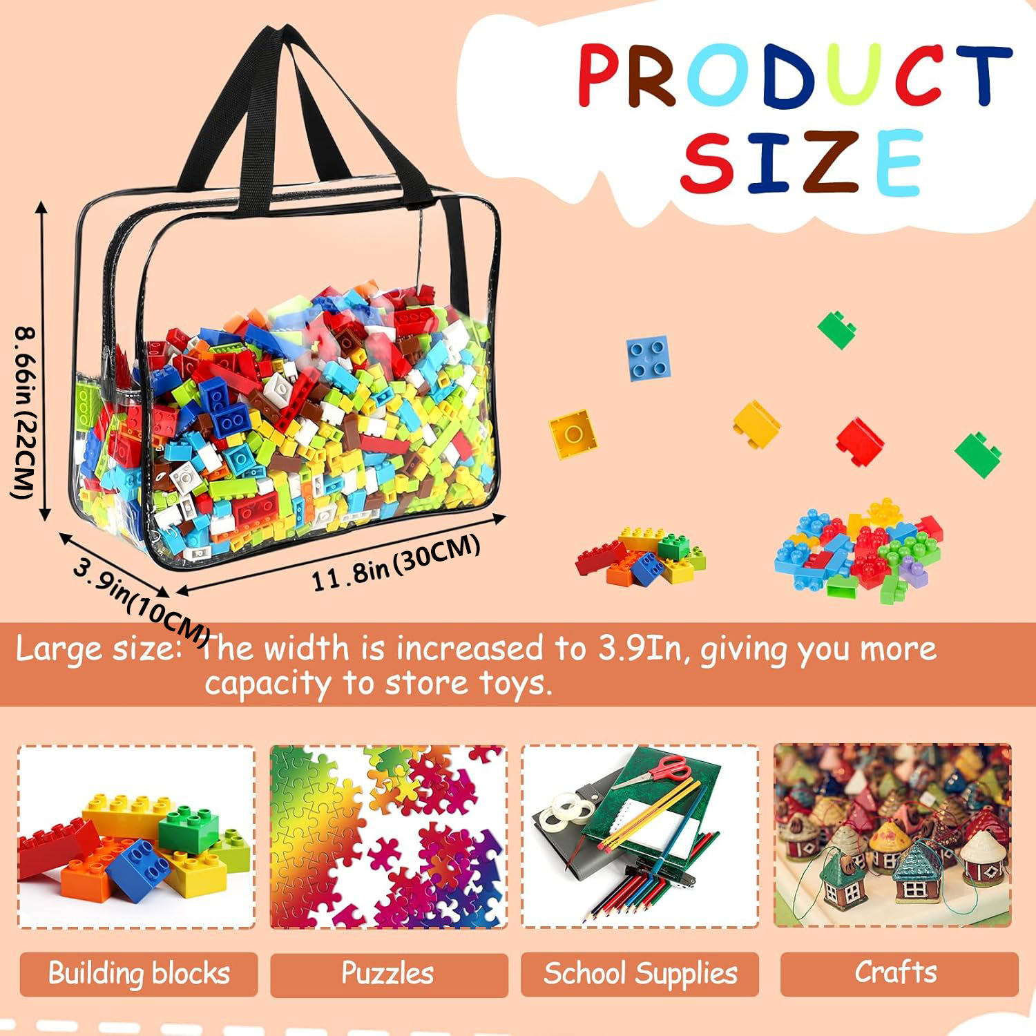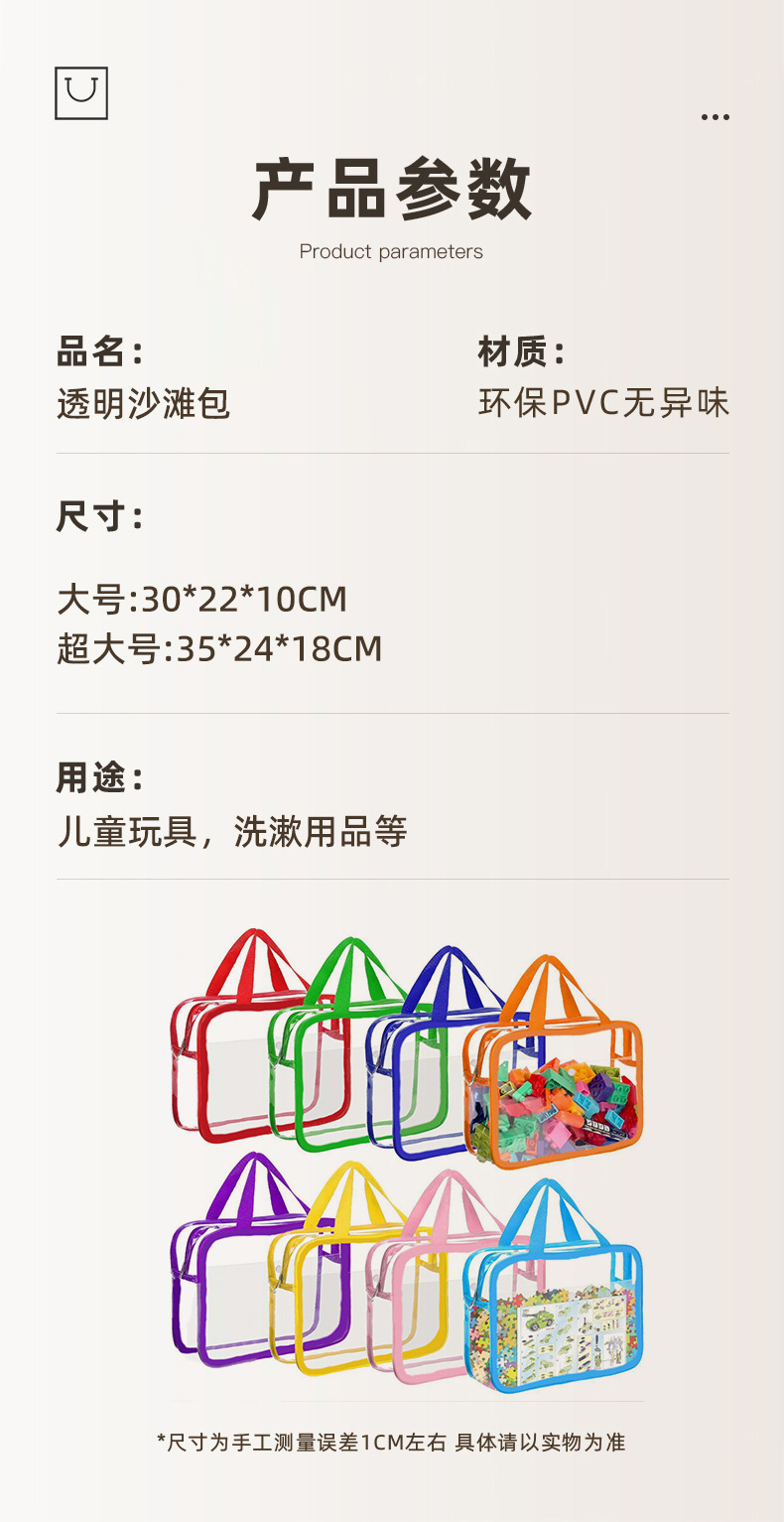 투명 PVC 장난감 보관 가방 비치 퍼즐 보관 가방 여행 방수 보관 가방 지퍼가 달린 세탁 가방