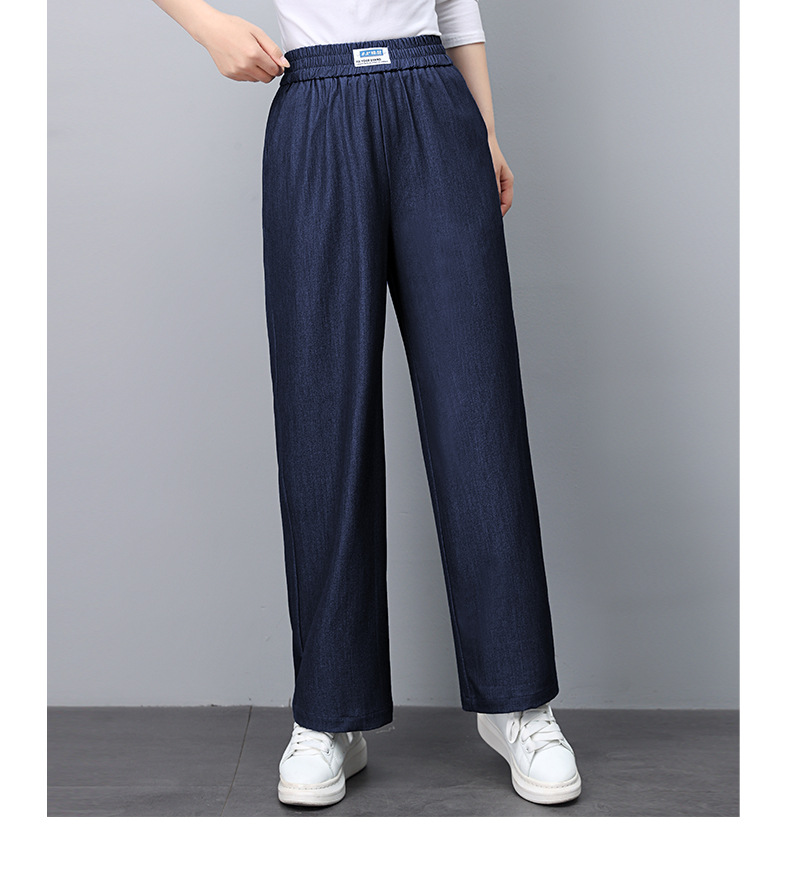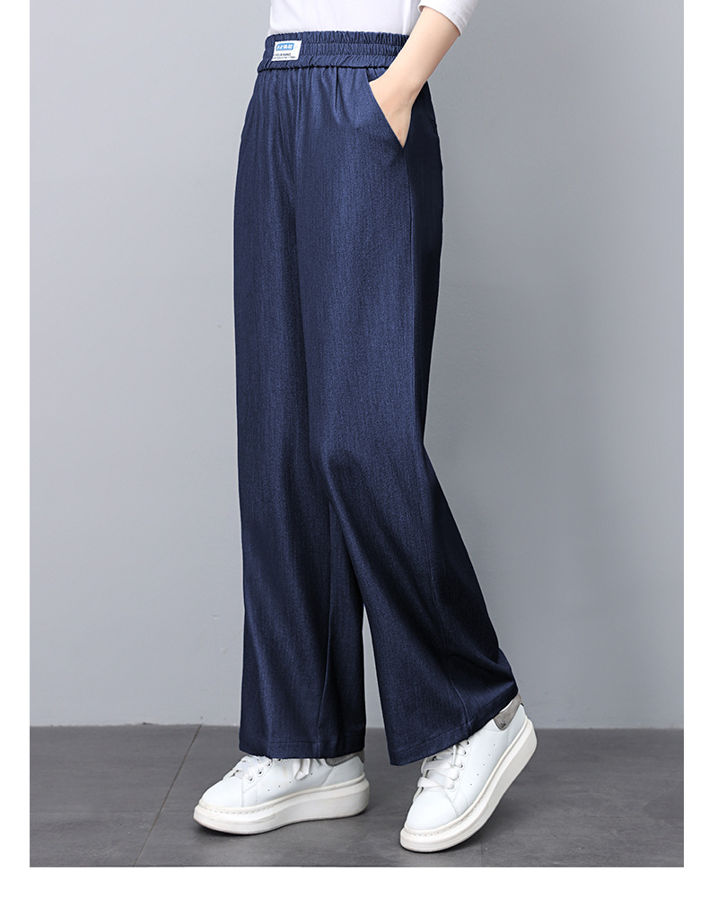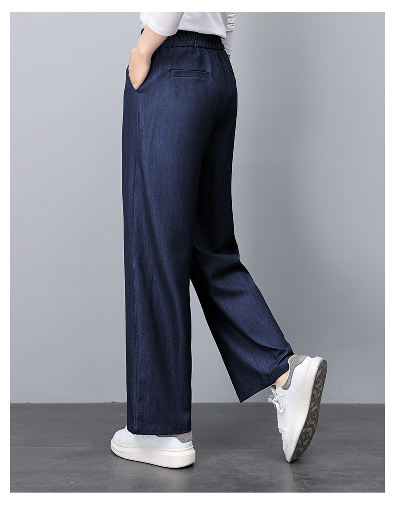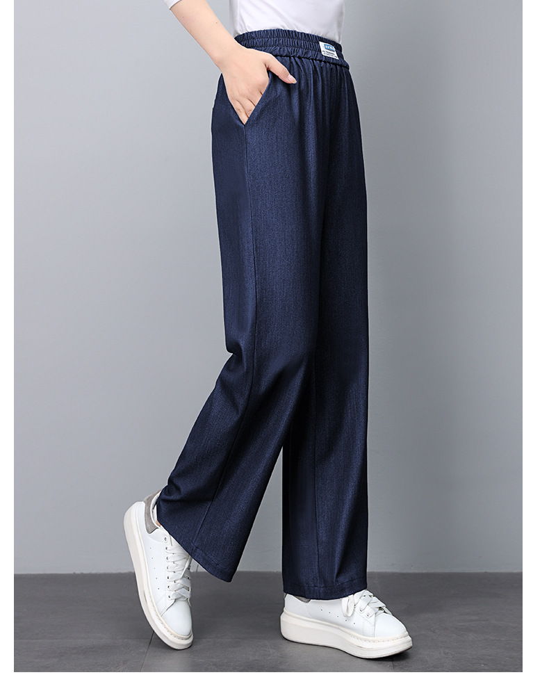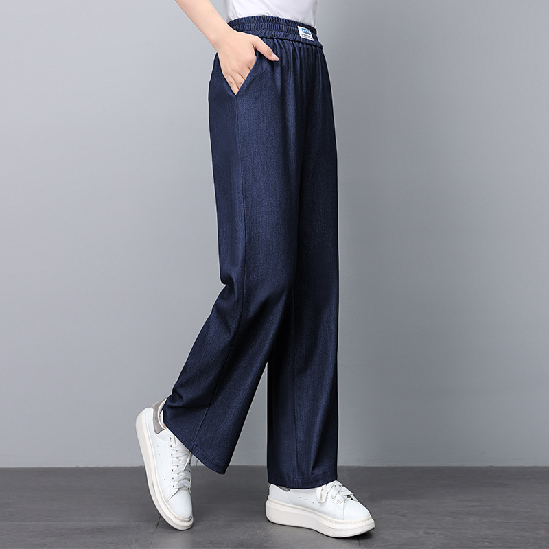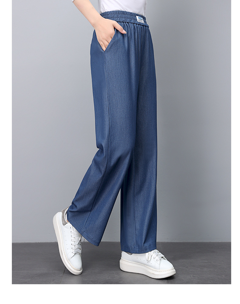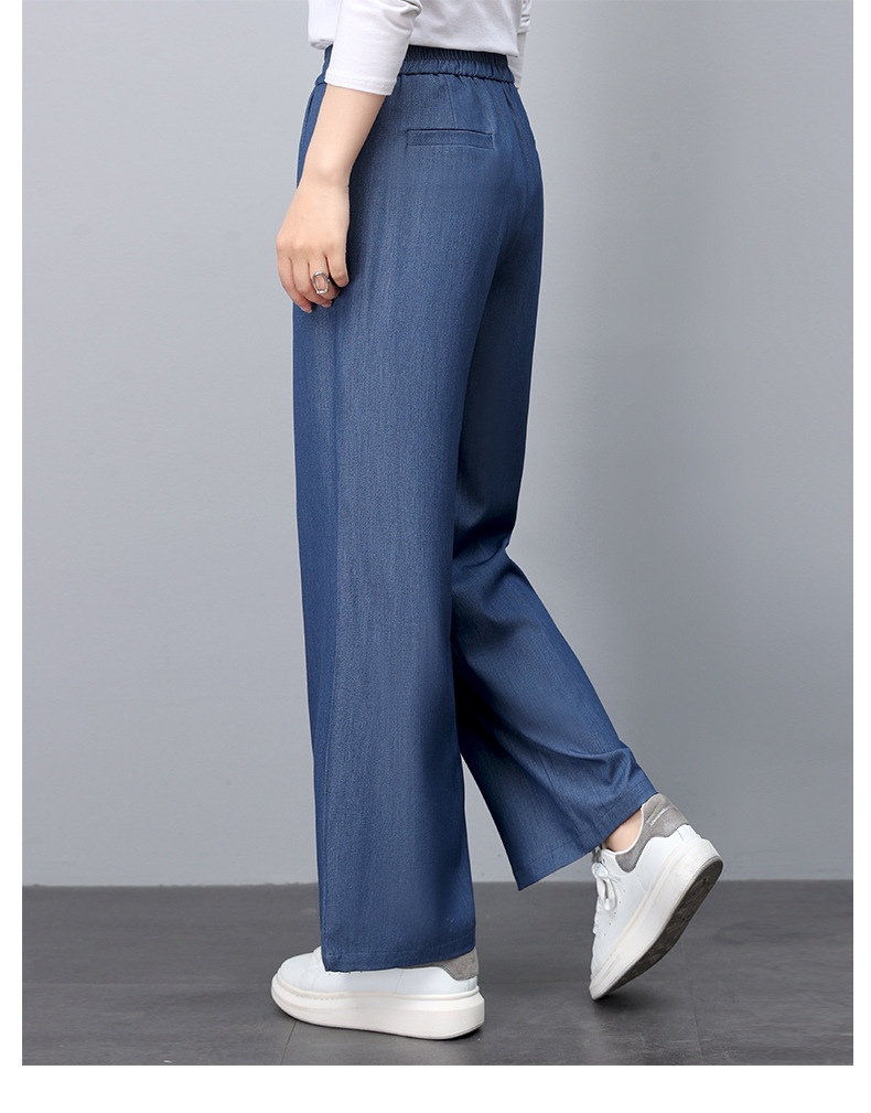 여름 얇은 텐셀 청바지 여성의 2025 새로운 스타일 슬림 핏 캐주얼 와이드 레그 바지 아이스 실크 쿨 바지
