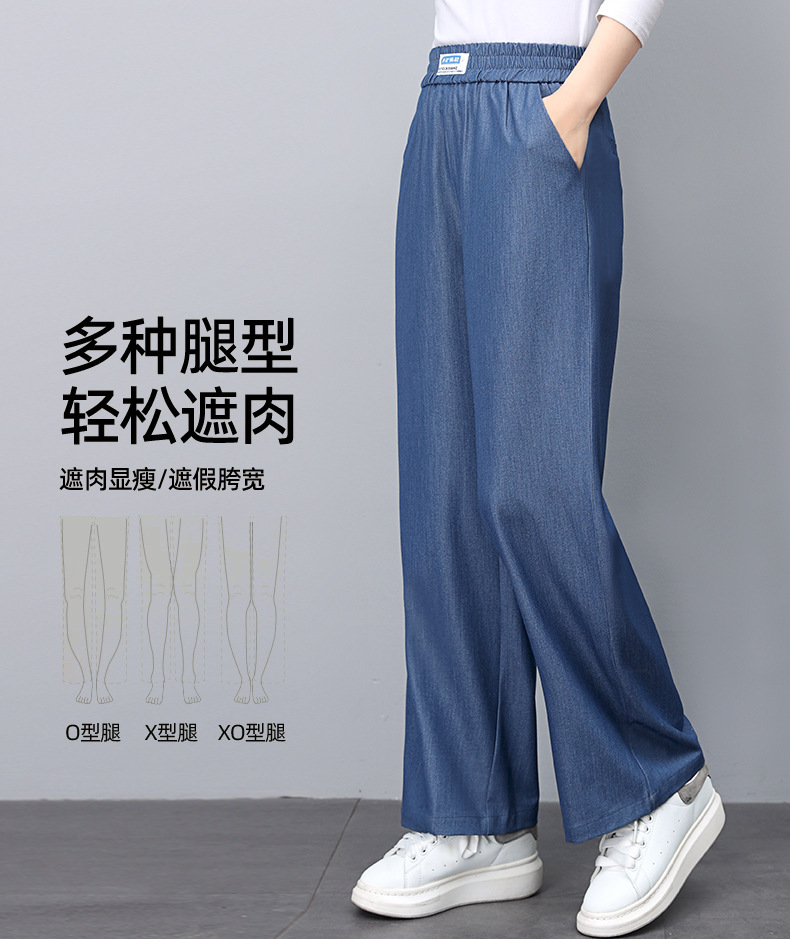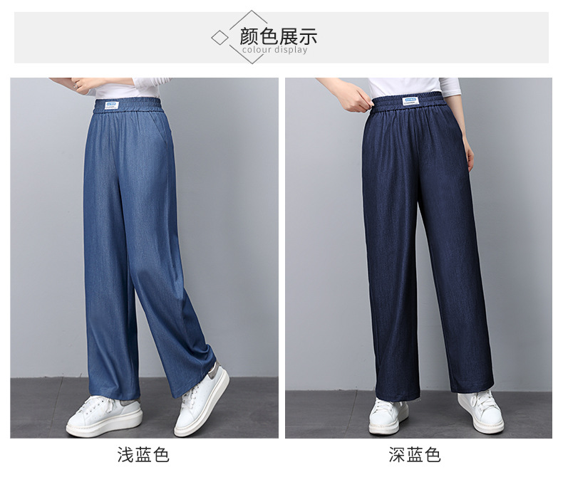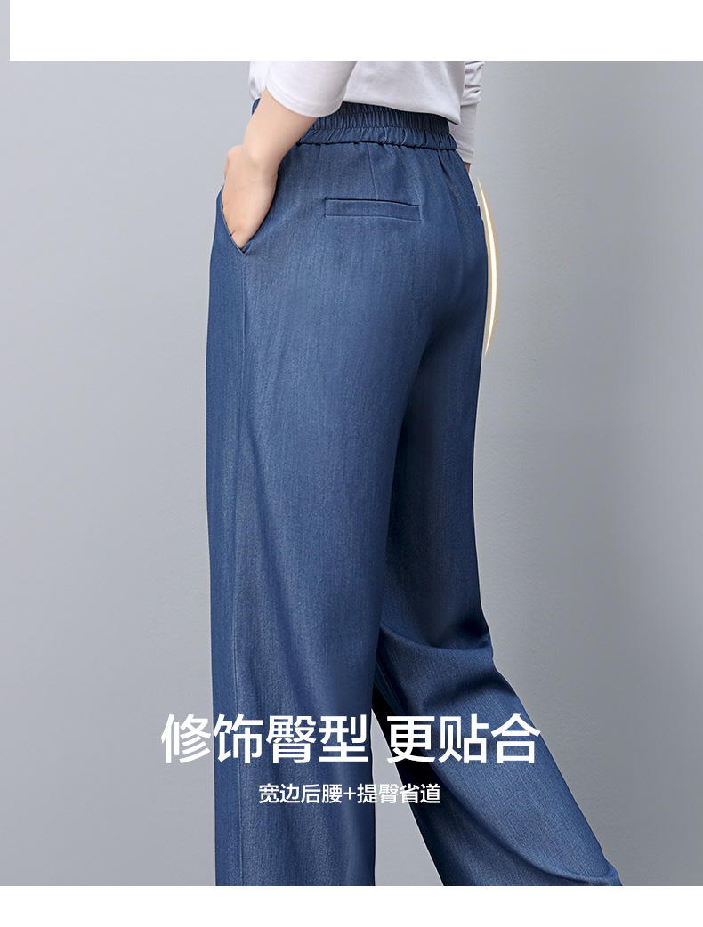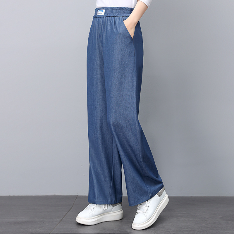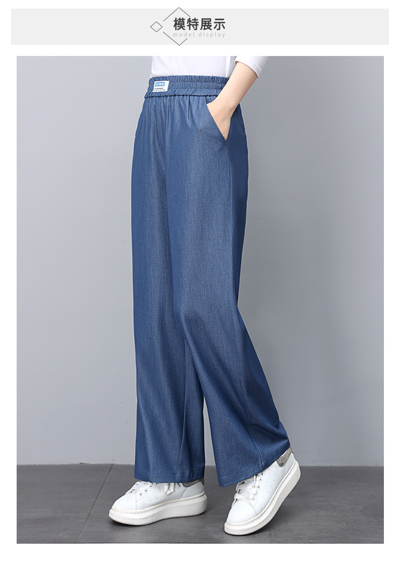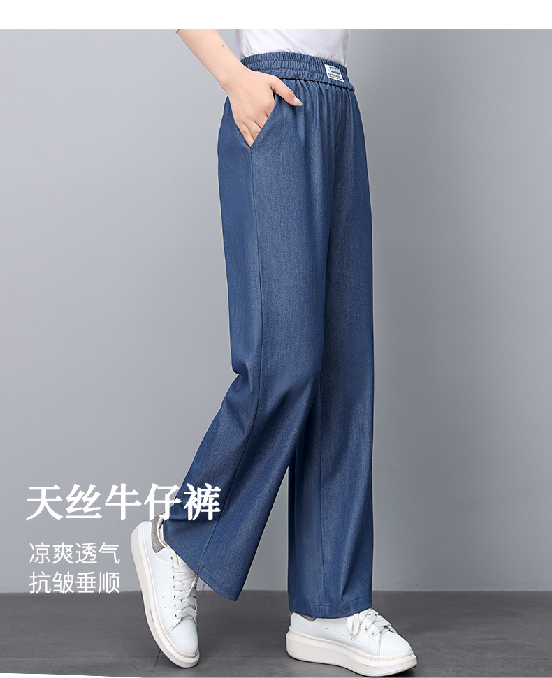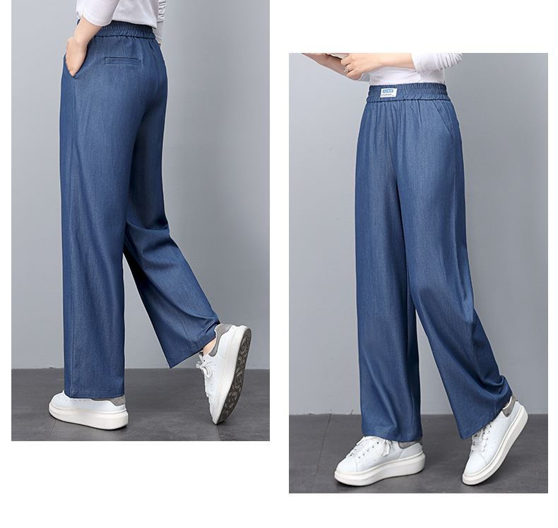 여름 얇은 텐셀 청바지 여성의 2025 새로운 스타일 슬림 핏 캐주얼 와이드 레그 바지 아이스 실크 쿨 바지스토어 가기