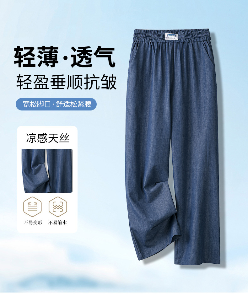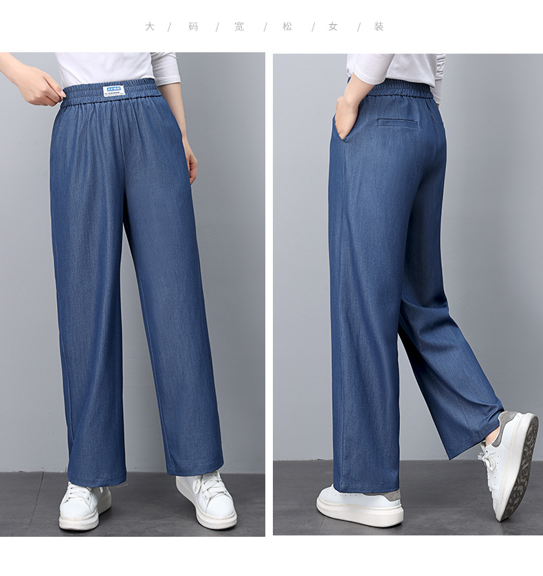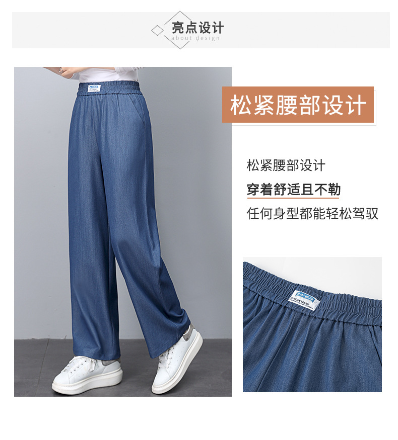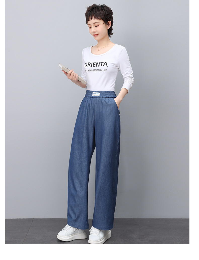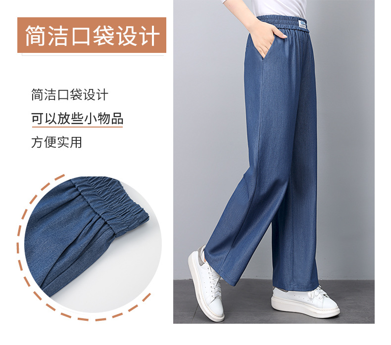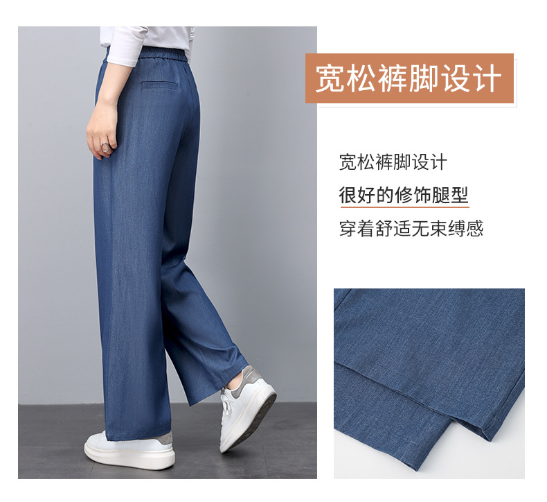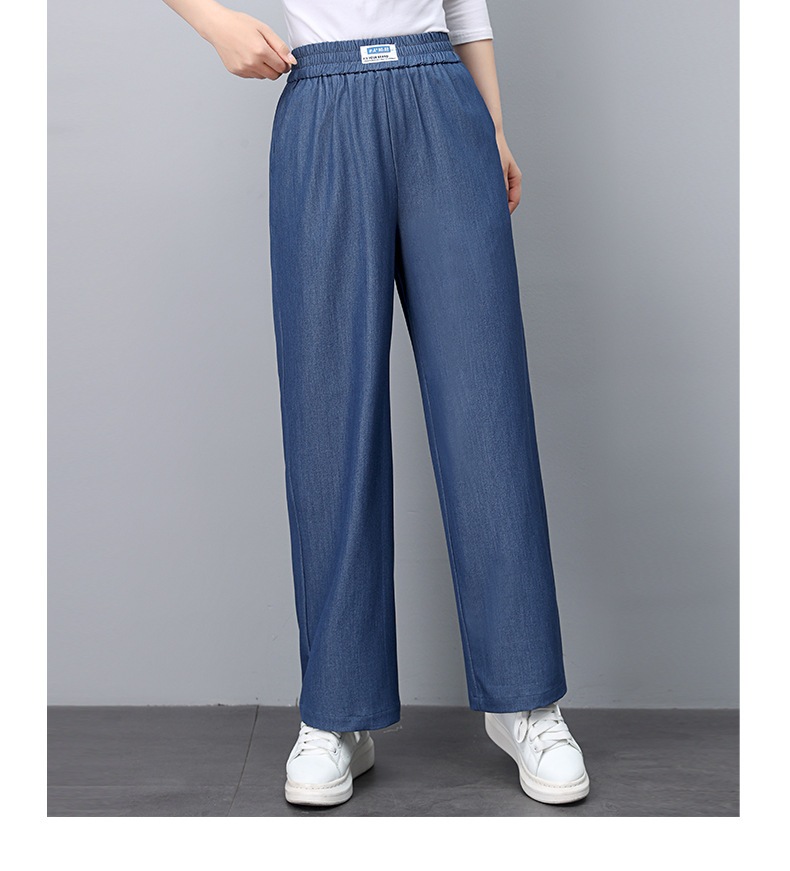 여름 얇은 텐셀 청바지 여성의 2025 새로운 스타일 슬림 핏 캐주얼 와이드 레그 바지 아이스 실크 쿨 바지스토어 가기