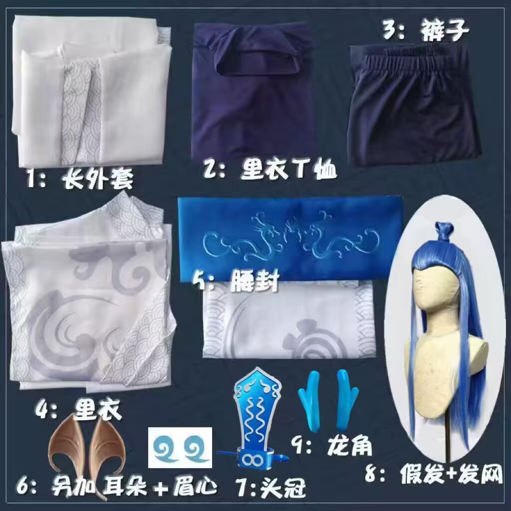 • 아오빙 쓰리피스 슈트 + 속옷 + 귀 + 용뿔 + 머리관 + 가발