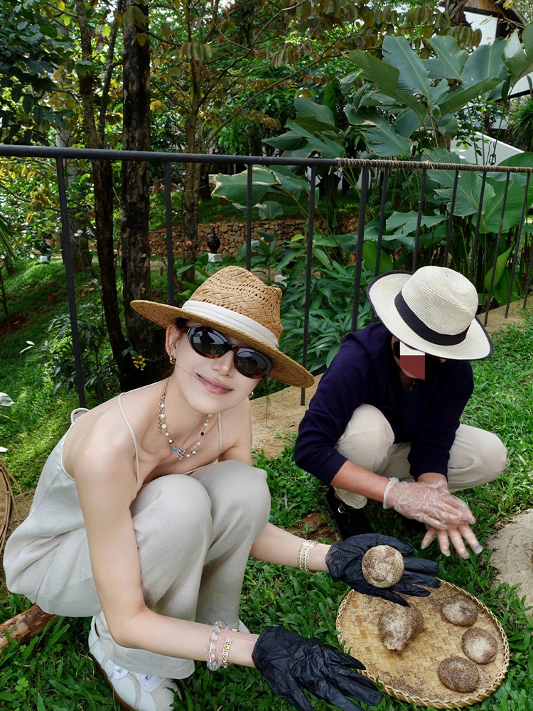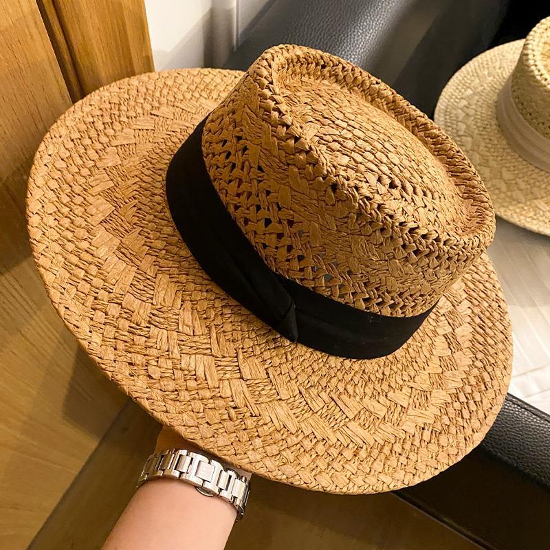 프랑스 스타일 올드 머니 스타일 중공 밀짚 모자 여성의 여름 해변 휴가 태양 보호 모자 파나마 비치 모자스토어 가기