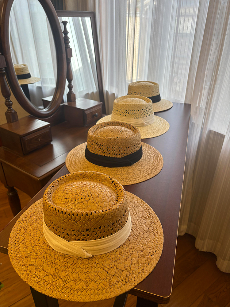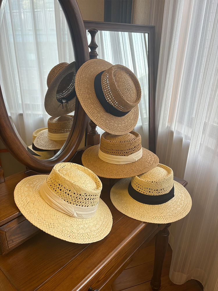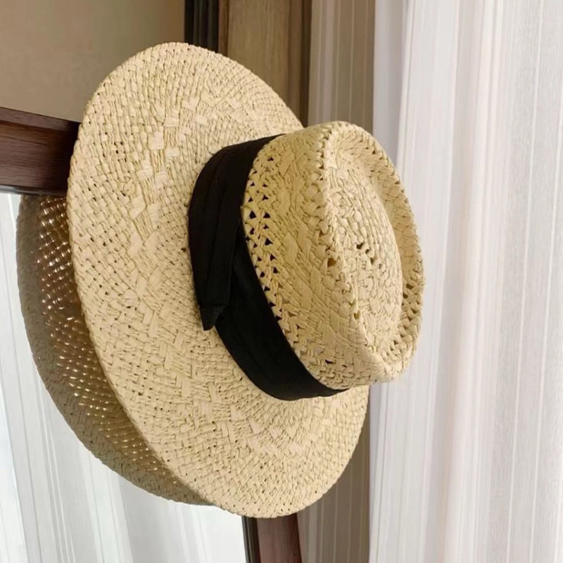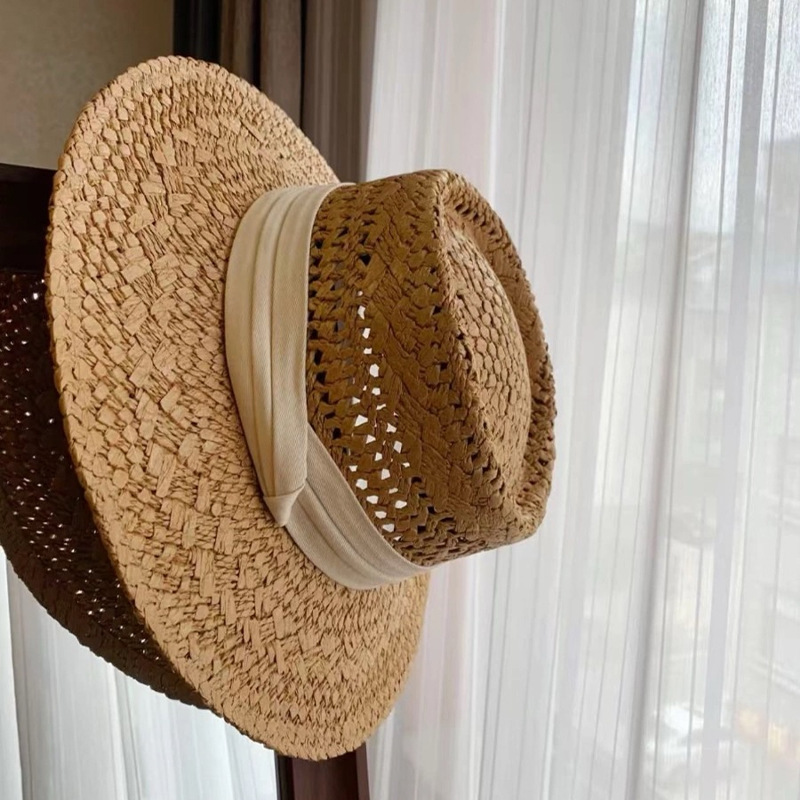 프랑스 스타일 올드 머니 스타일 중공 밀짚 모자 여성의 여름 해변 휴가 태양 보호 모자 파나마 비치 모자
