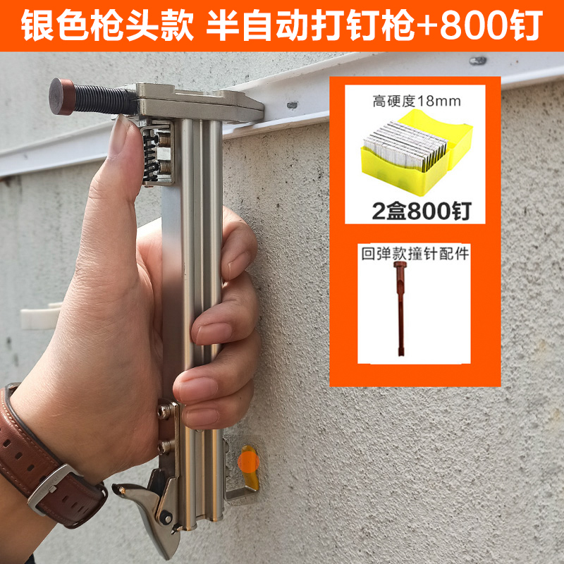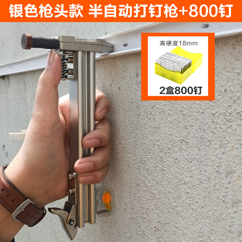 • 녹슬지 않는 ST18E 실버 헤드 반자동 강철 못총 [단일 총] + 못 800개