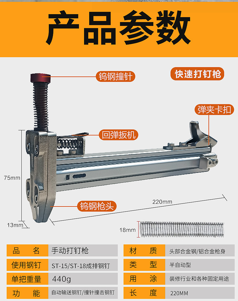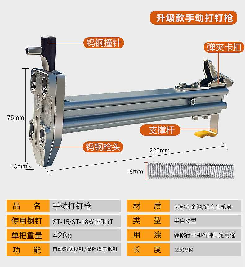 • ST18G 반자동 강철 못총 + 못 2상자 + 예비 발사 핀 + 클로 해머