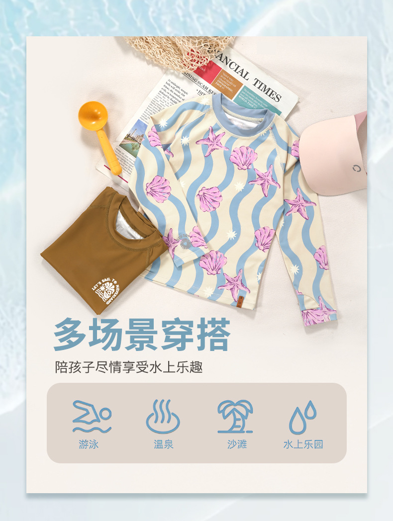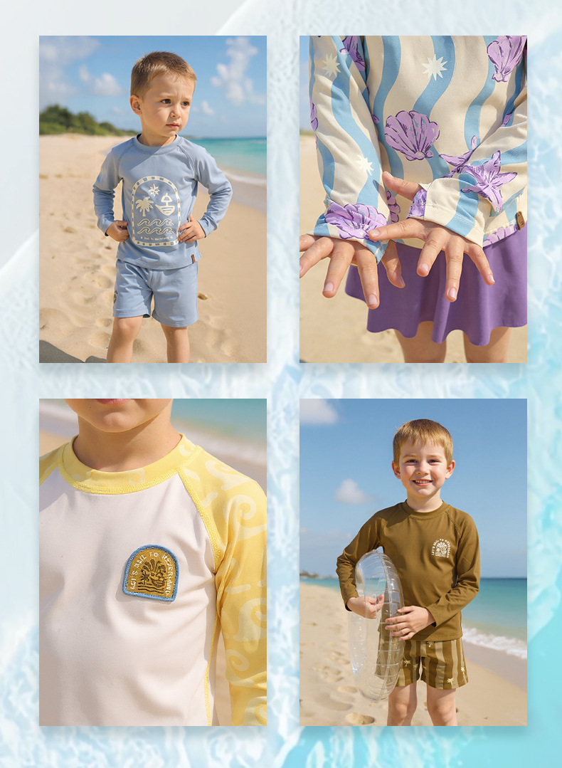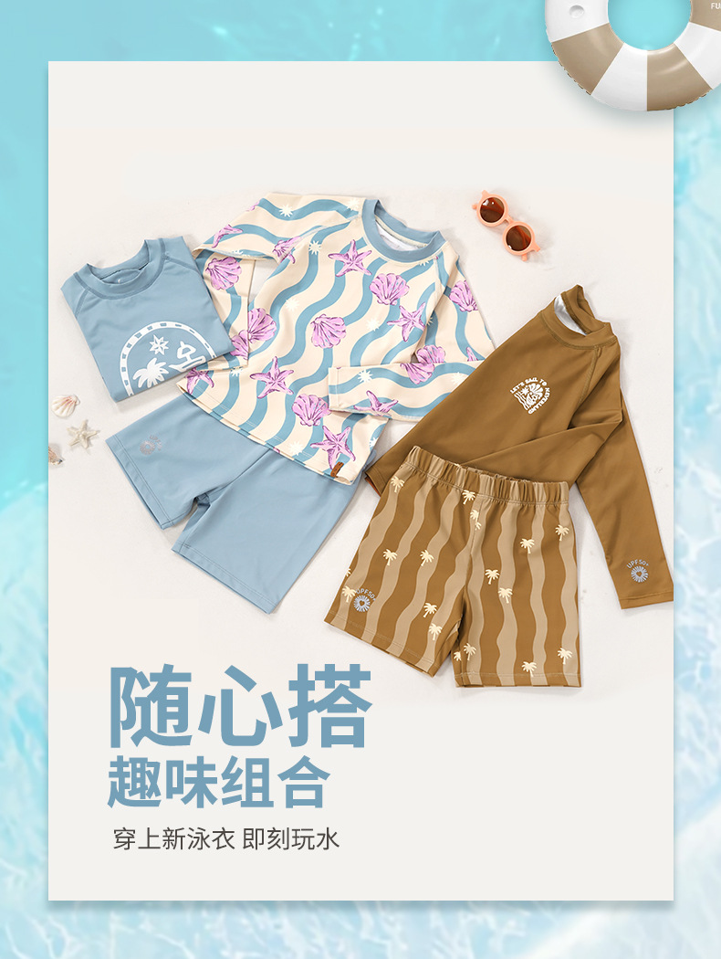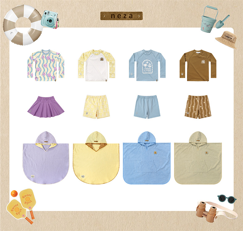 neza [Island Palette] 수영복 아동용 여아 수영복 긴팔 남아용 자외선 차단 수영복 스플릿 탑스토어 가기
