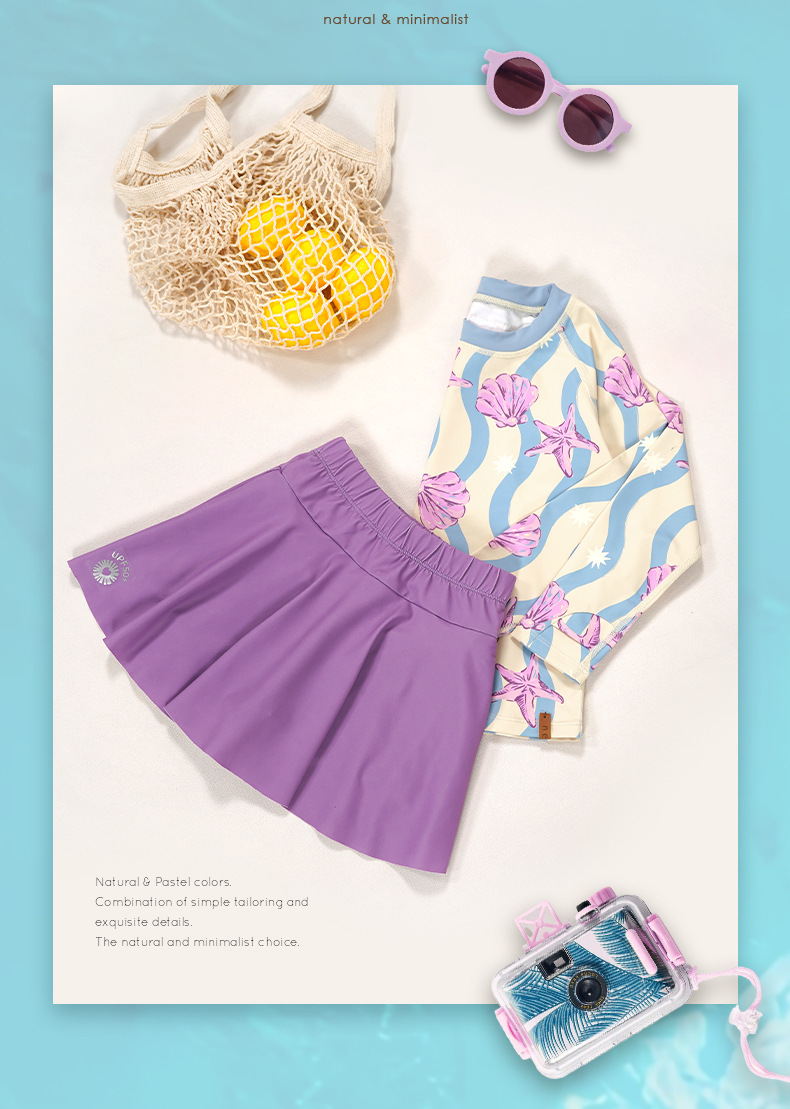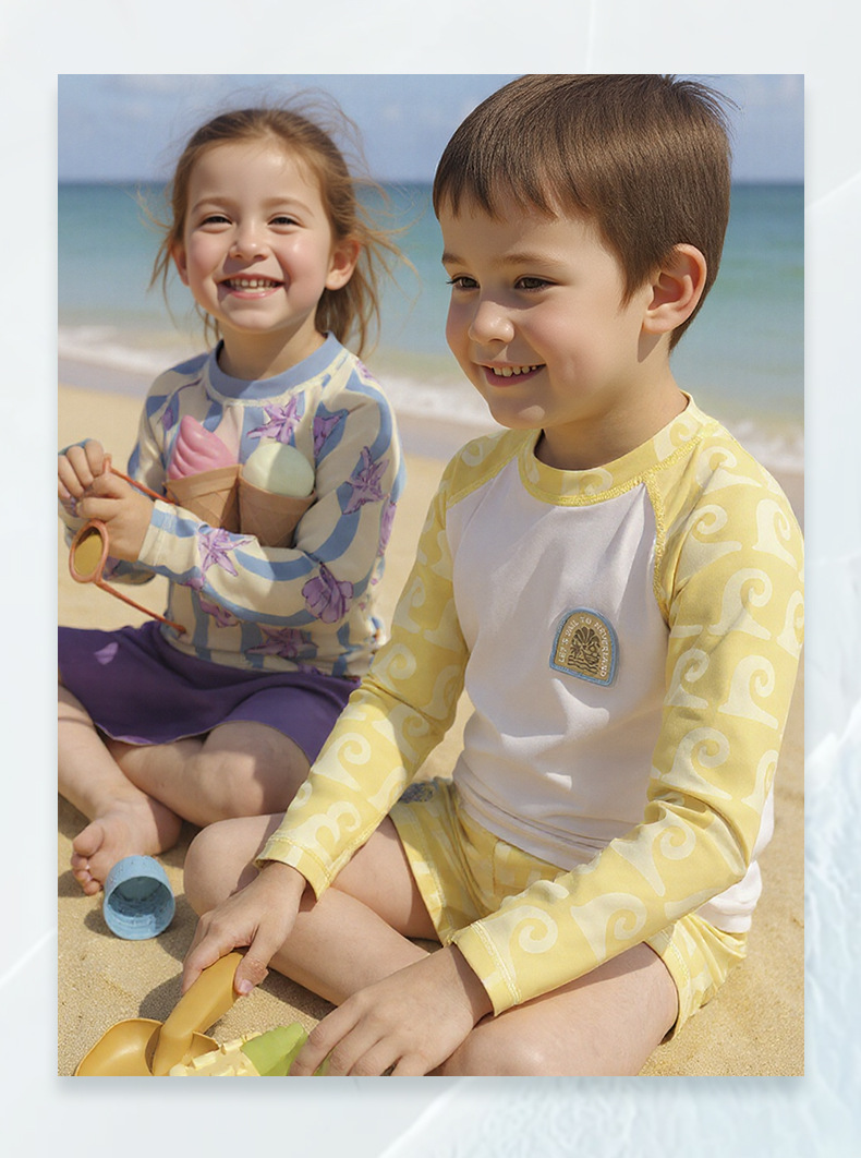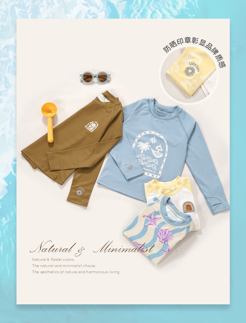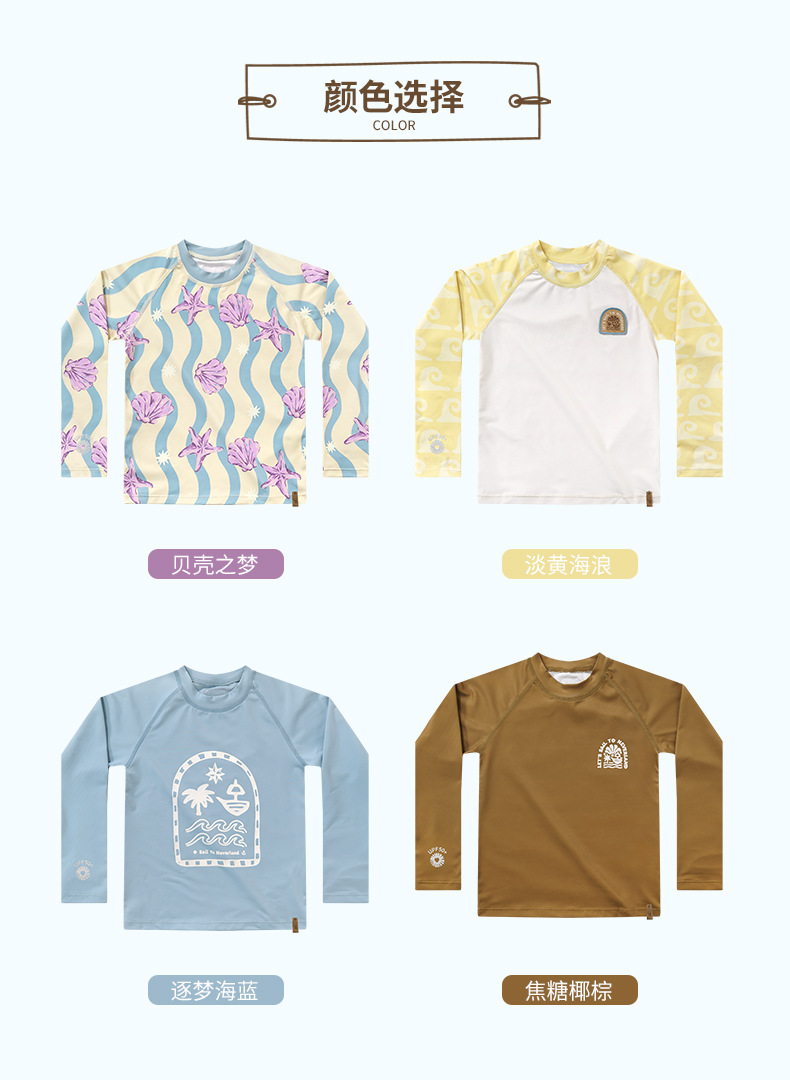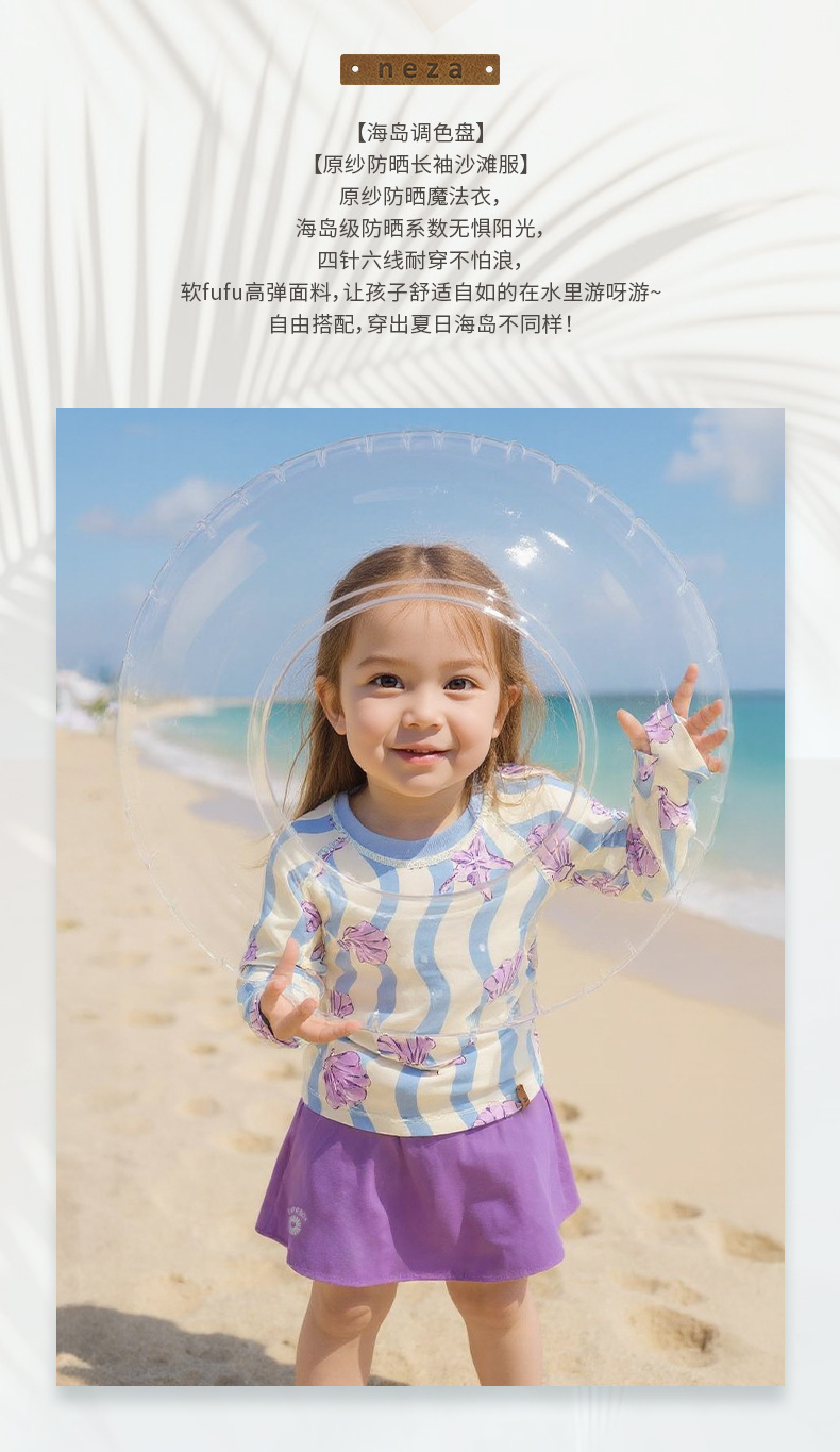 neza [Island Palette] 수영복 아동용 여아 수영복 긴팔 남아용 자외선 차단 수영복 스플릿 탑