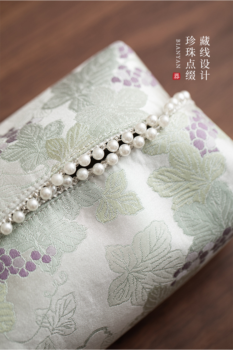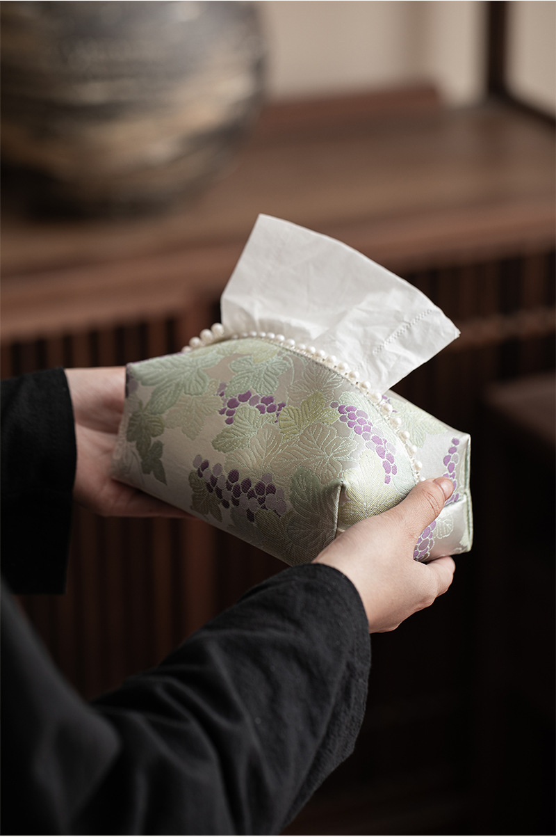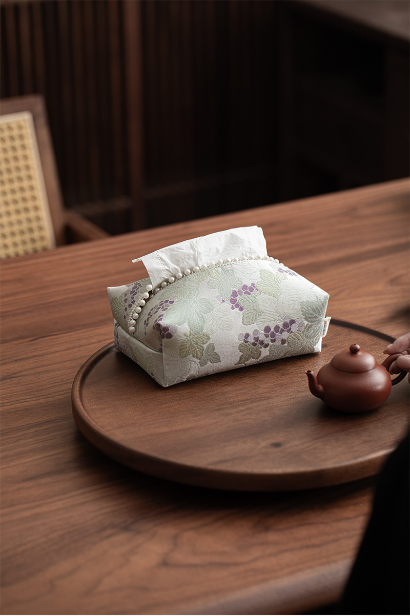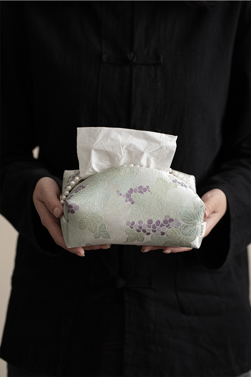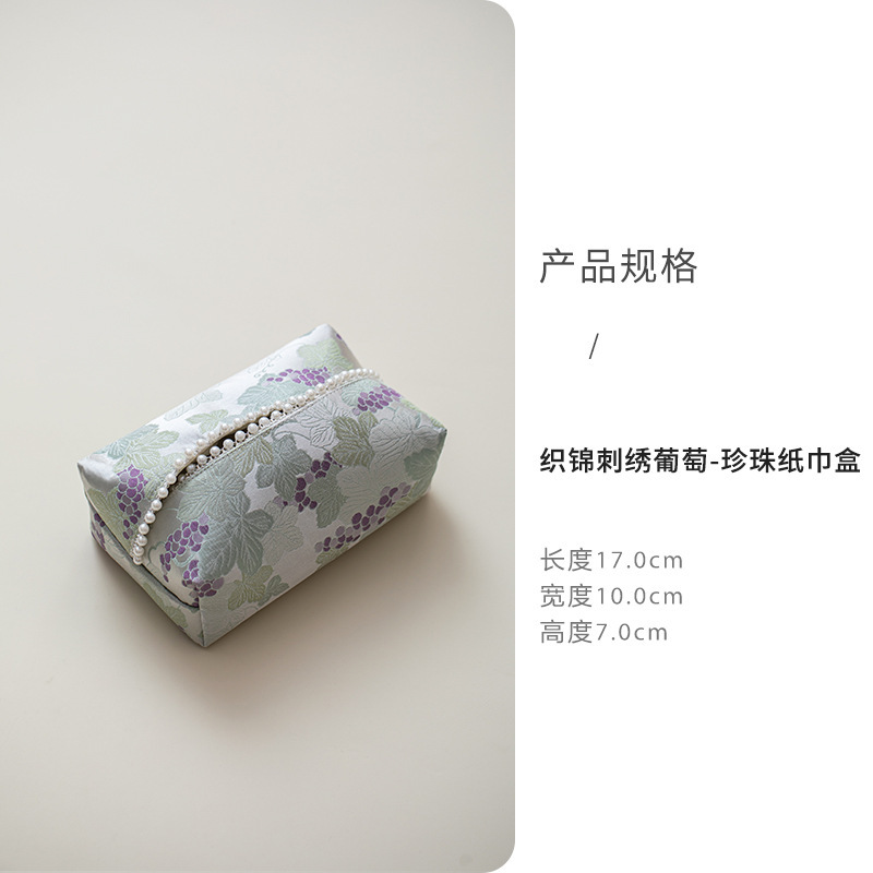 • 브로케이드 자수 포도 진주 티슈 박스