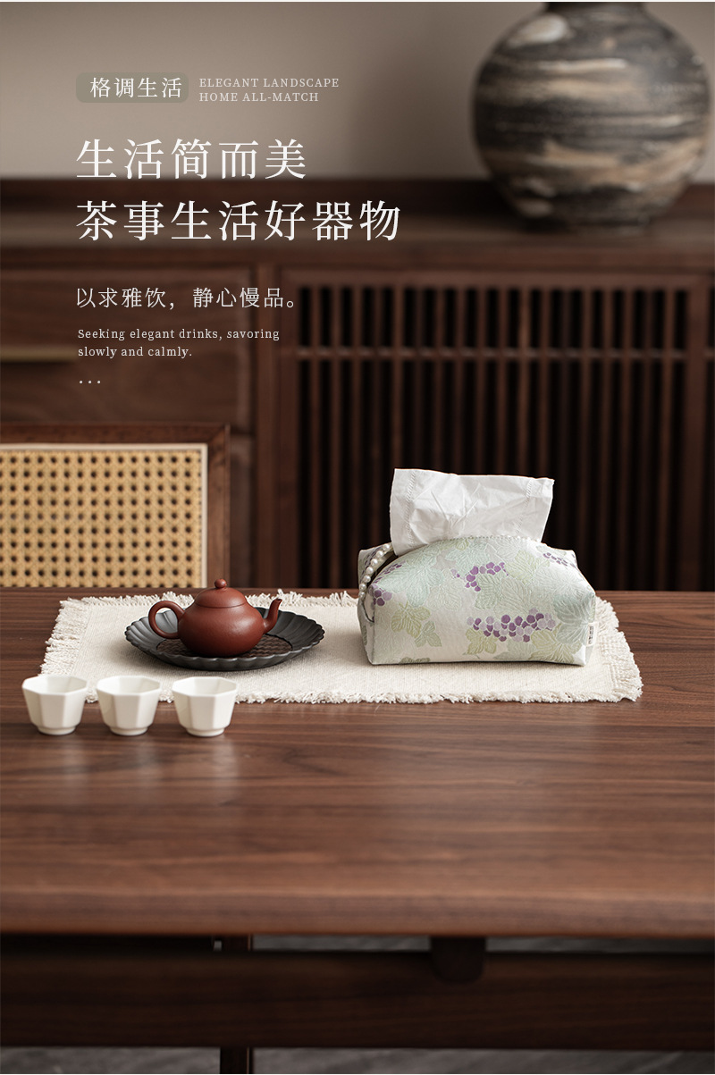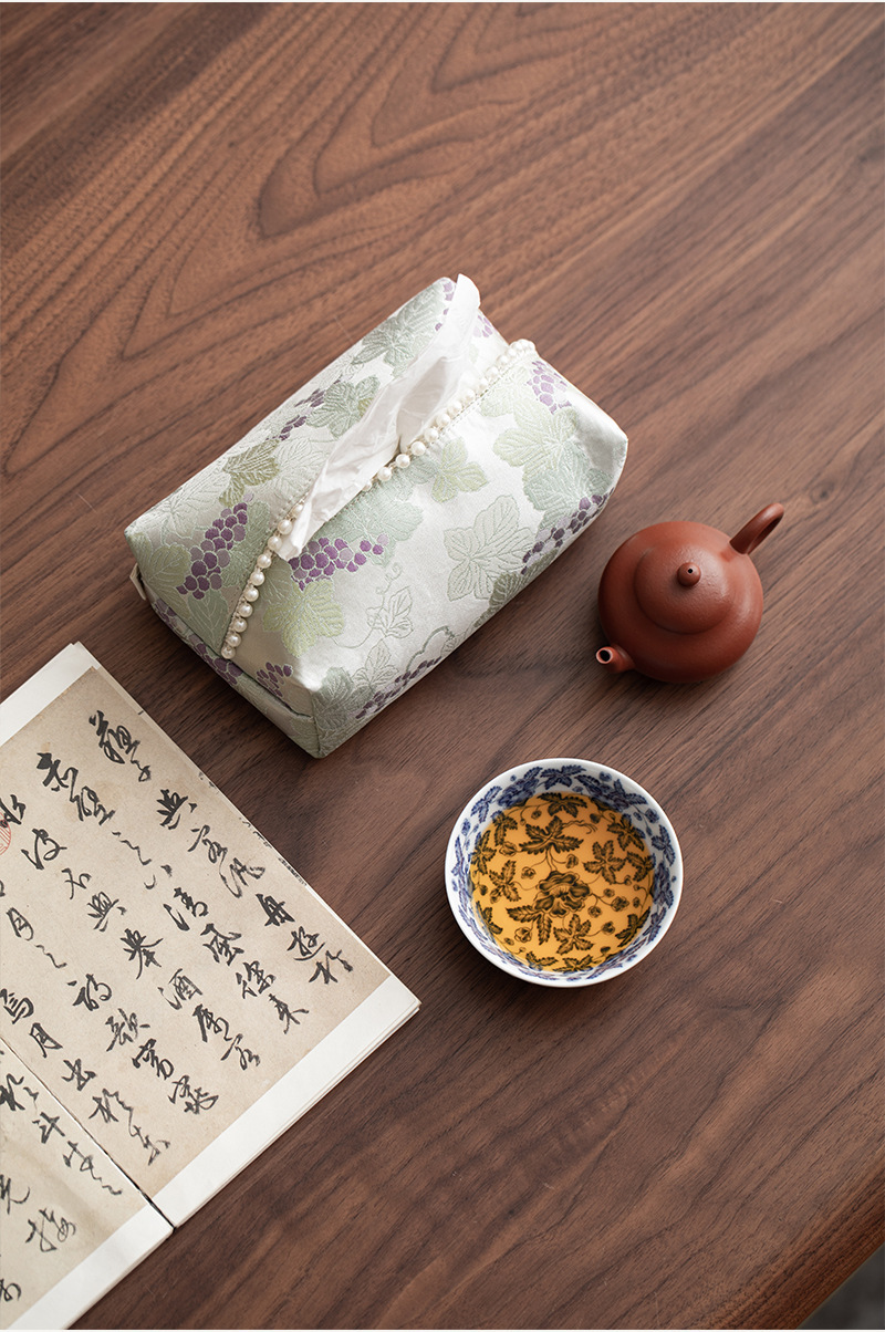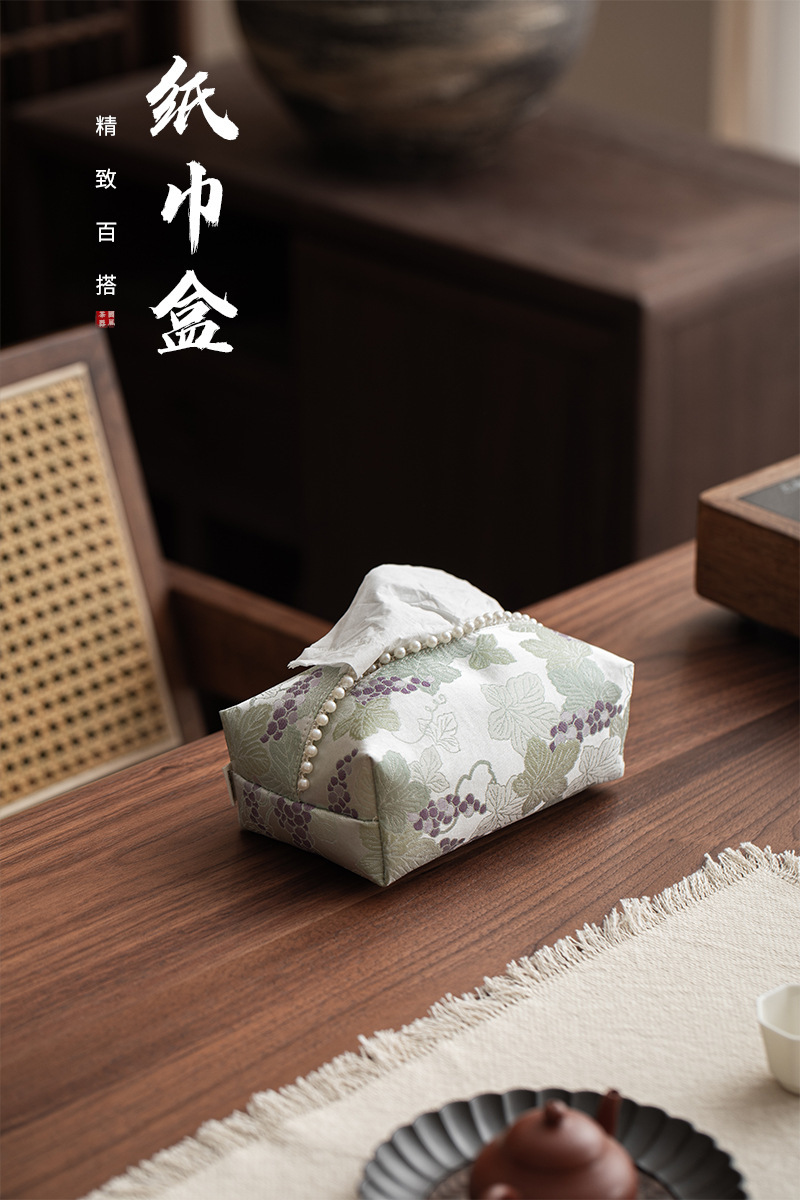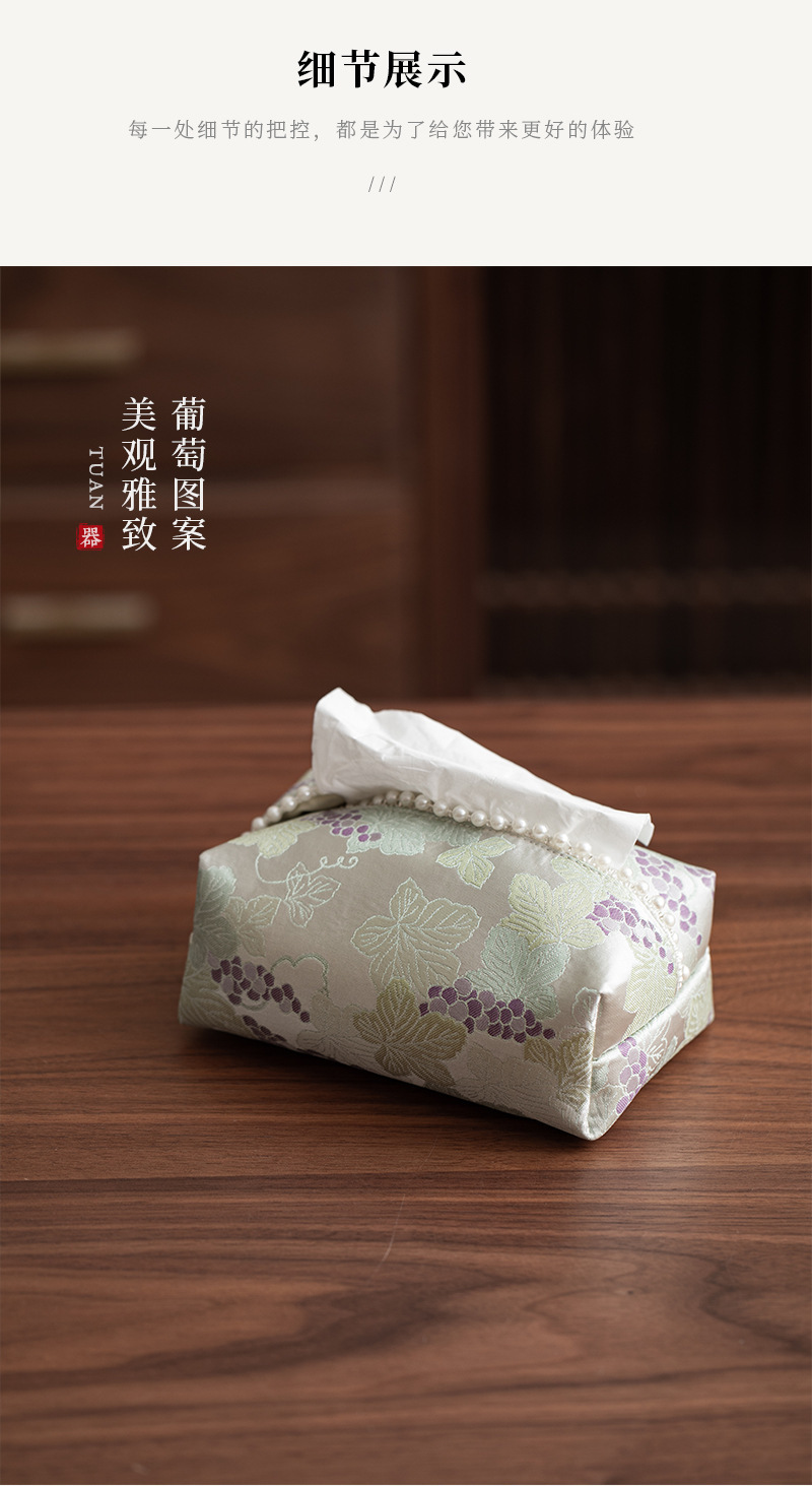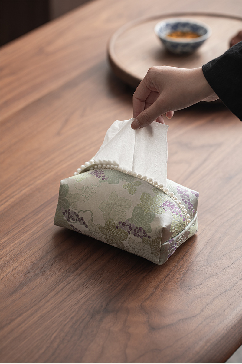 • 브로케이드 자수 포도 진주 티슈 박스