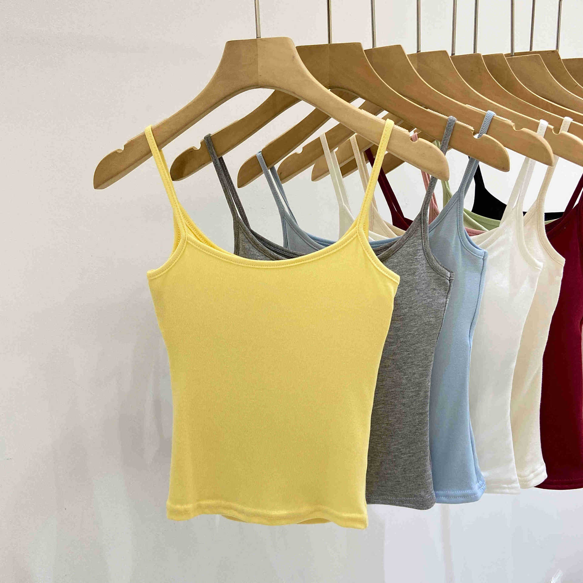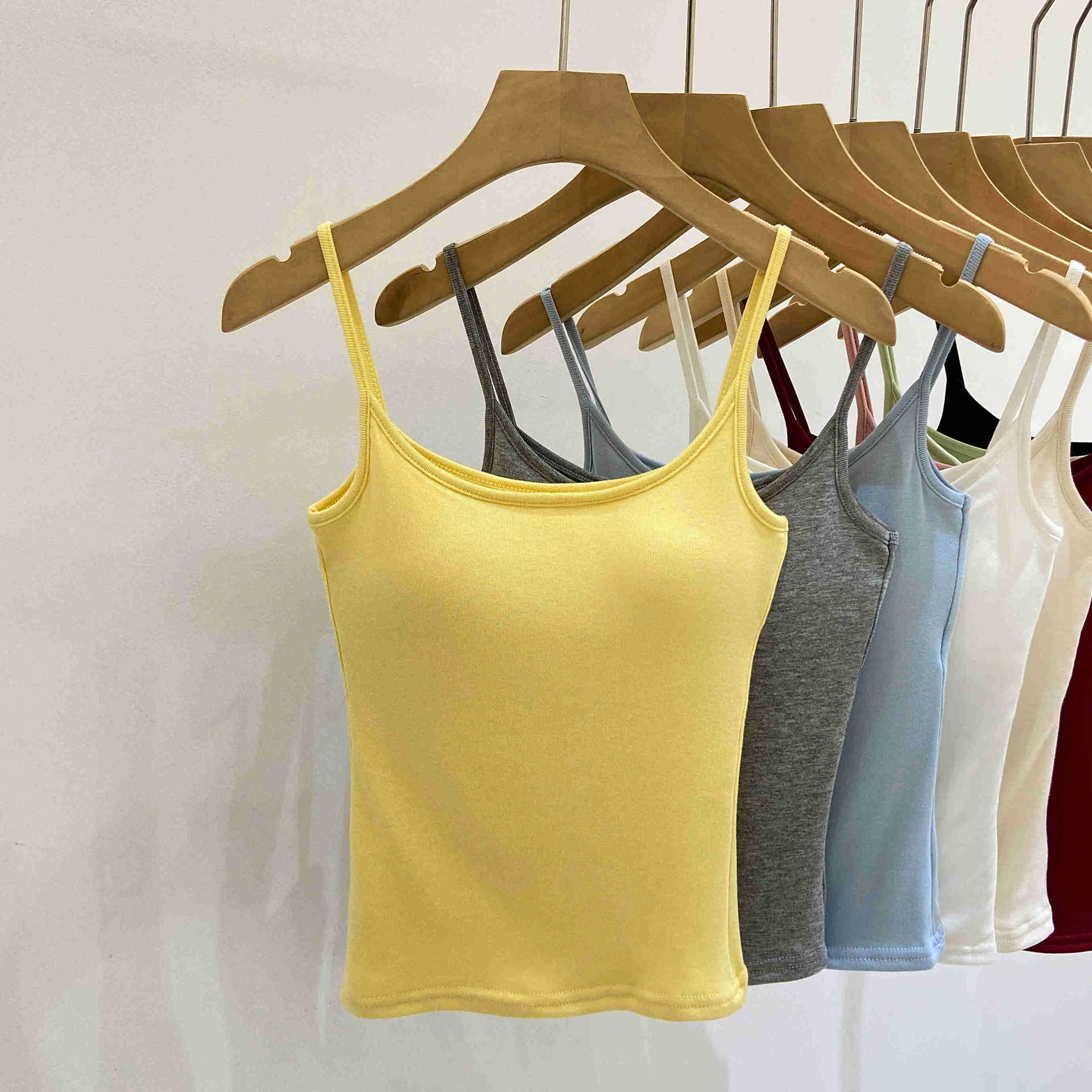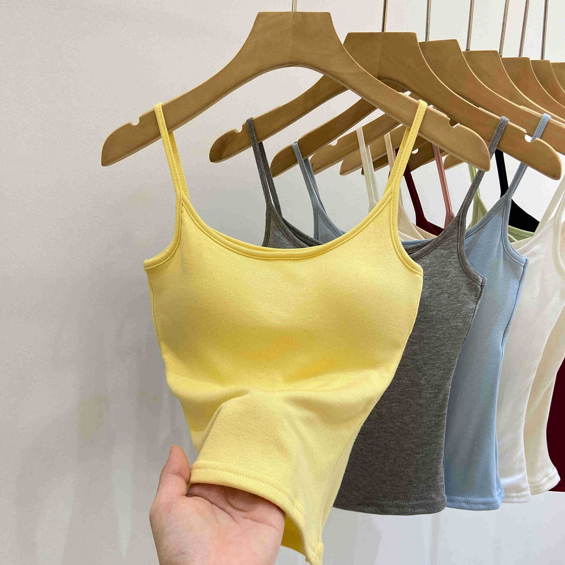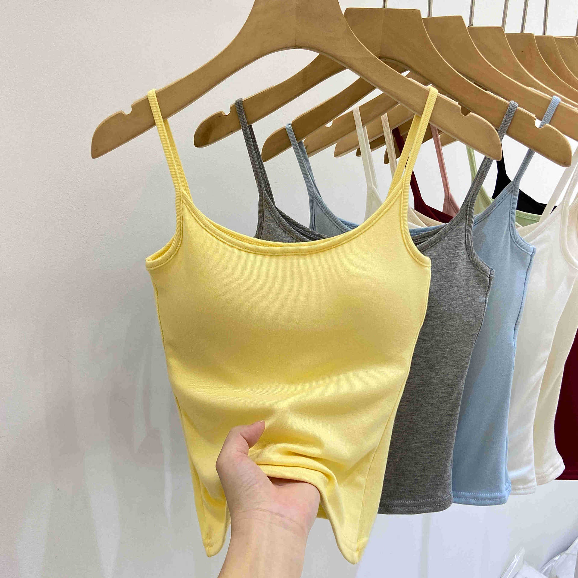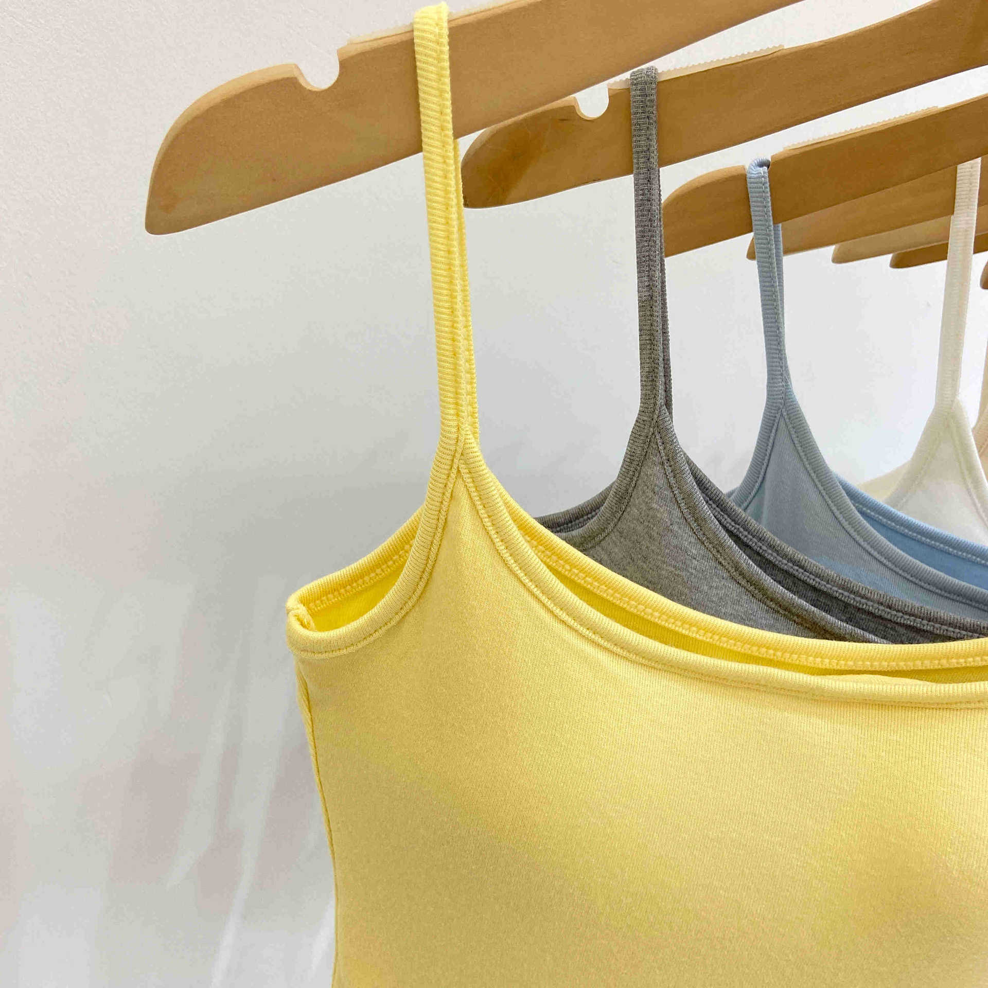 밝은 노란색 카미 솔 여성의 여름 원피스 핫 소녀 민소매 탑 가슴 패드 슬림 핏 짧은 아름다운 뒤스토어 가기