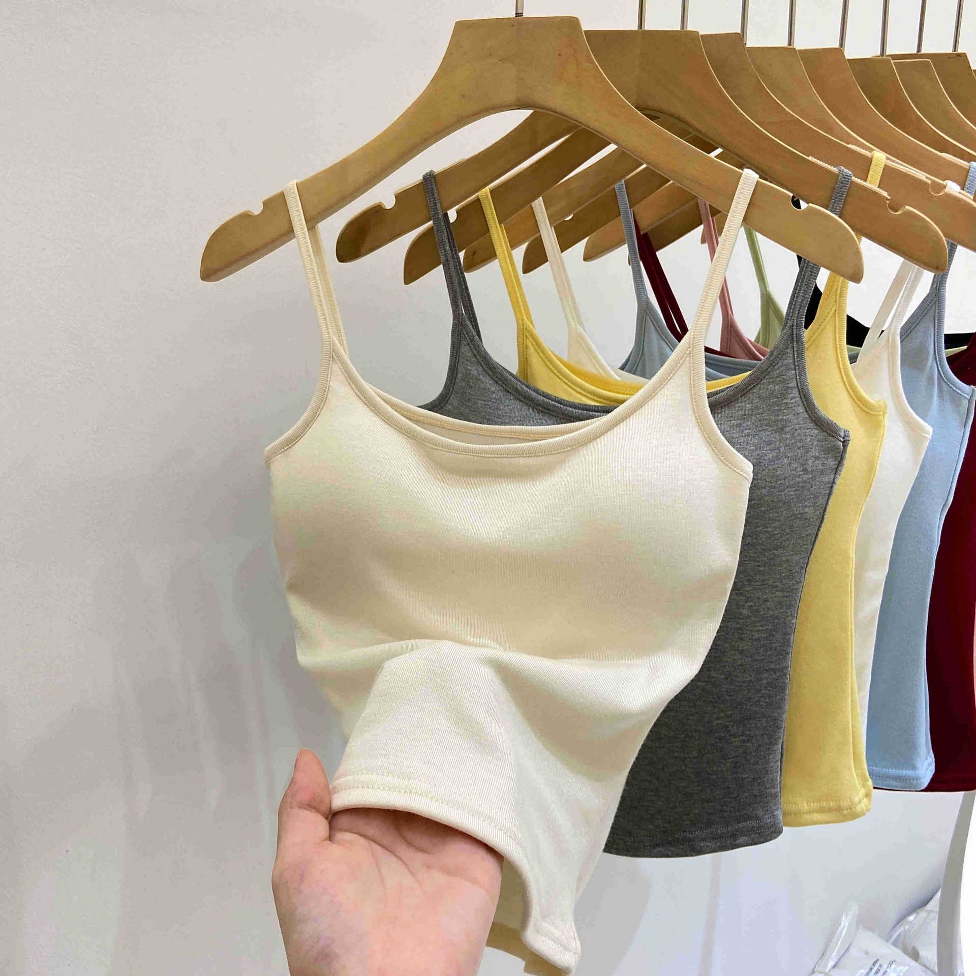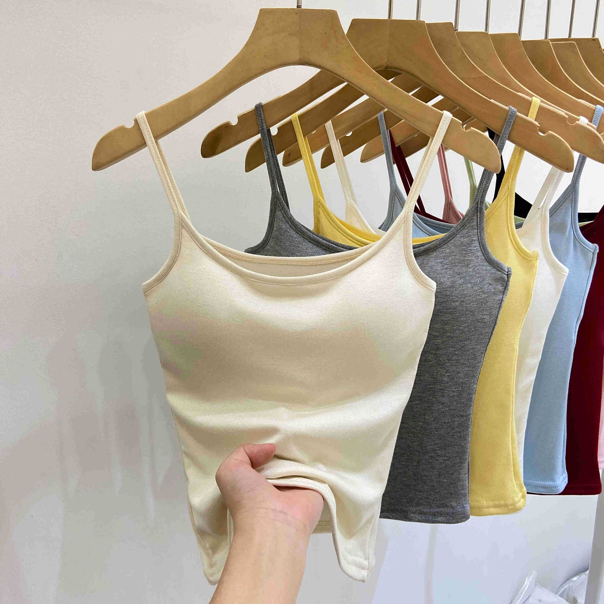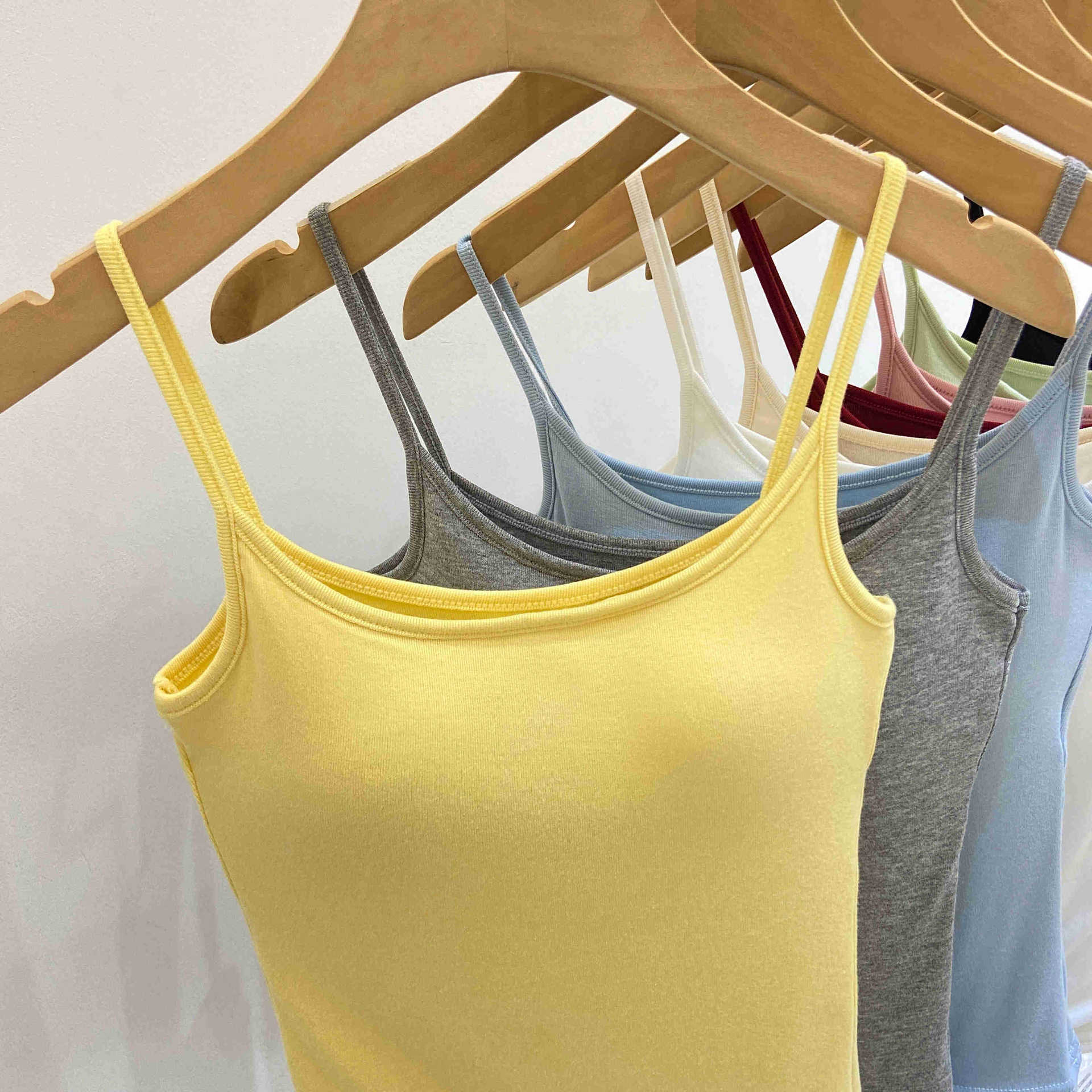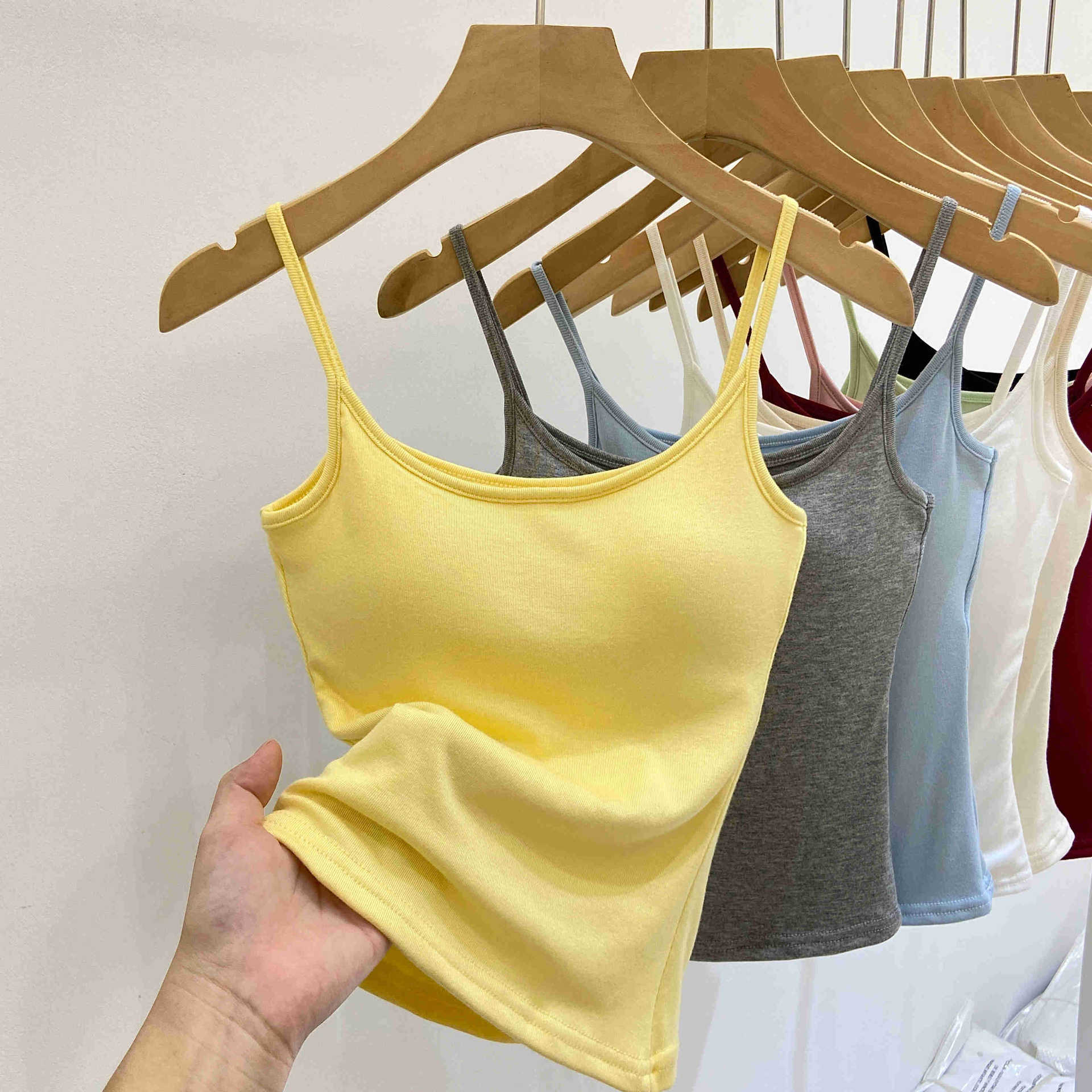 밝은 노란색 카미 솔 여성의 여름 원피스 핫 소녀 민소매 탑 가슴 패드 슬림 핏 짧은 아름다운 뒤스토어 가기