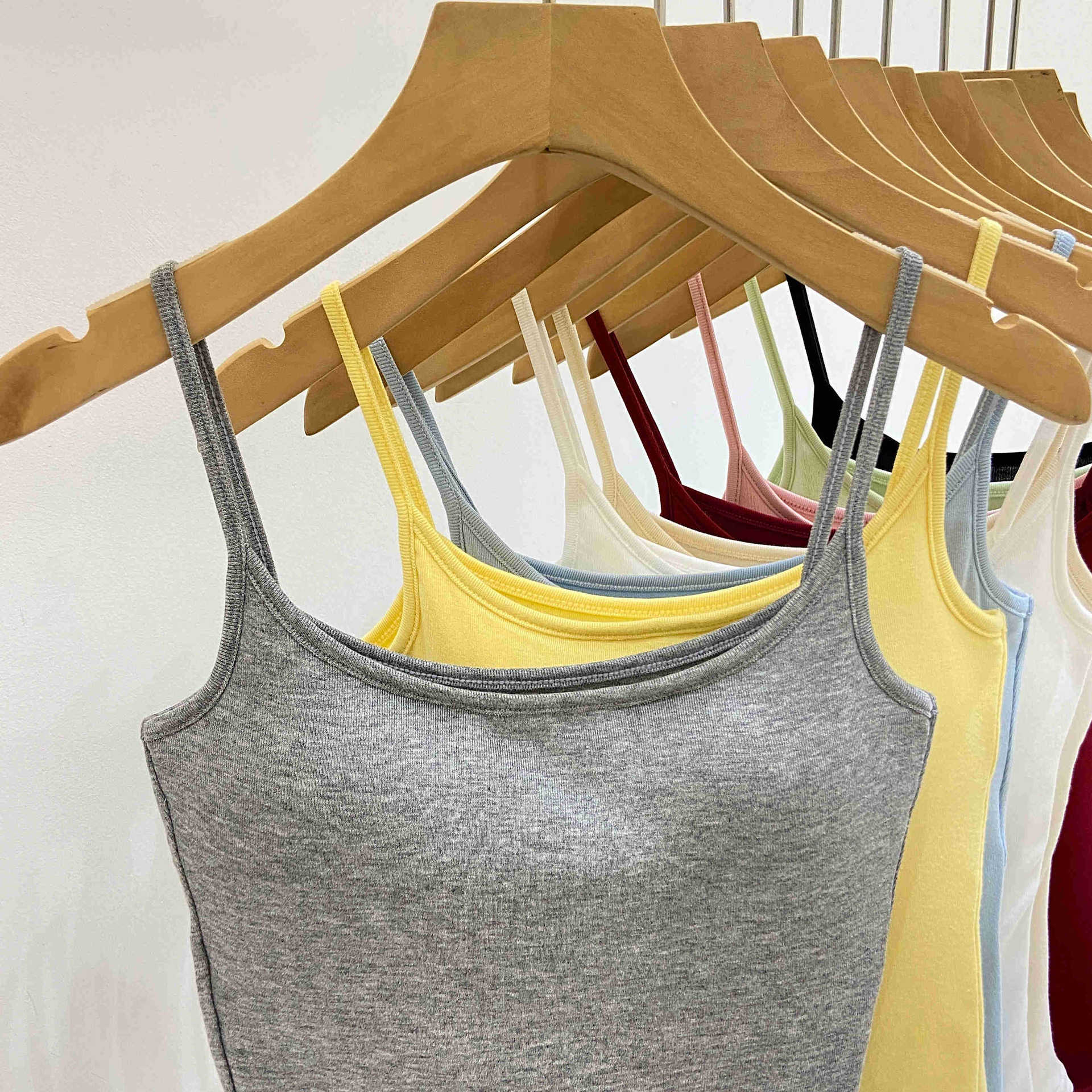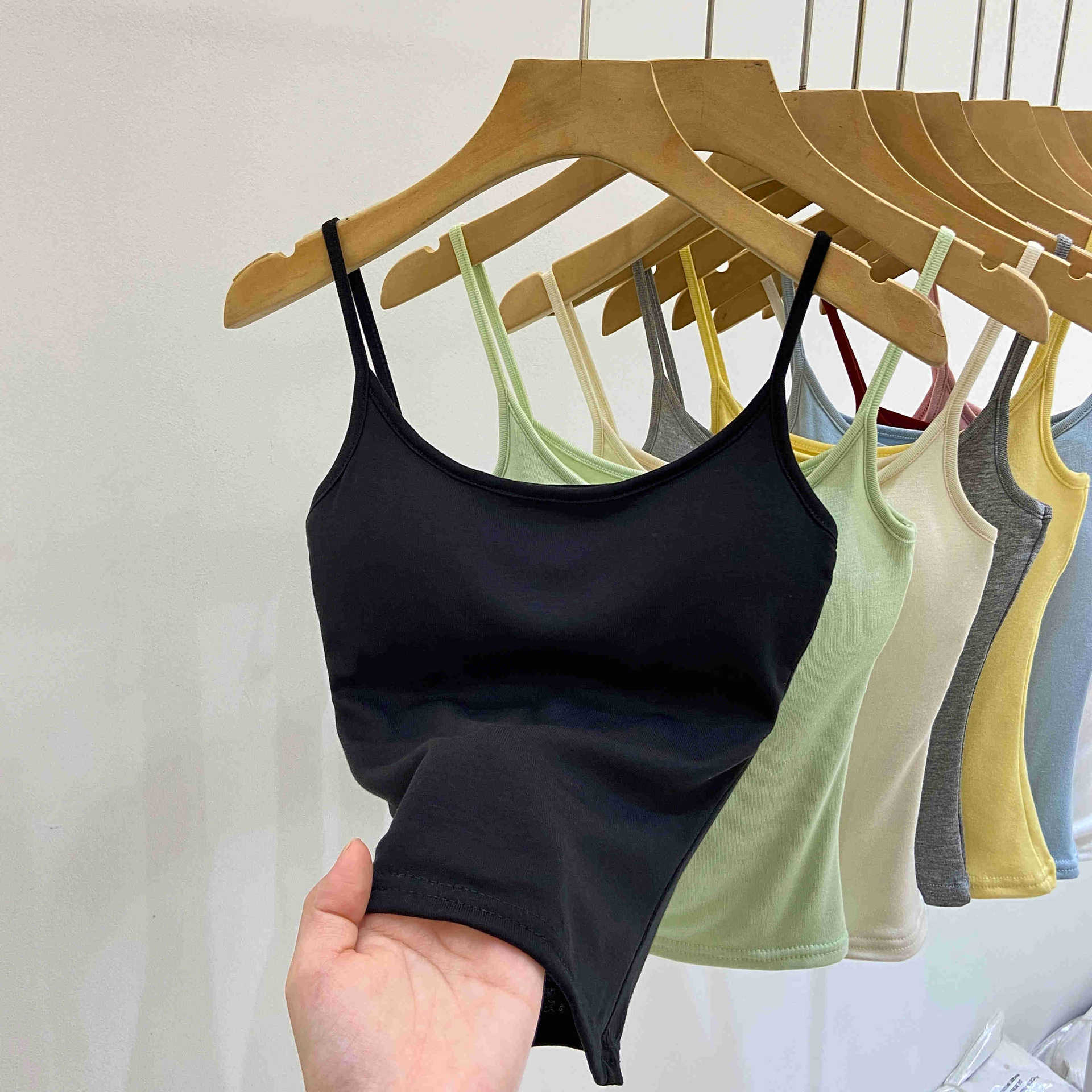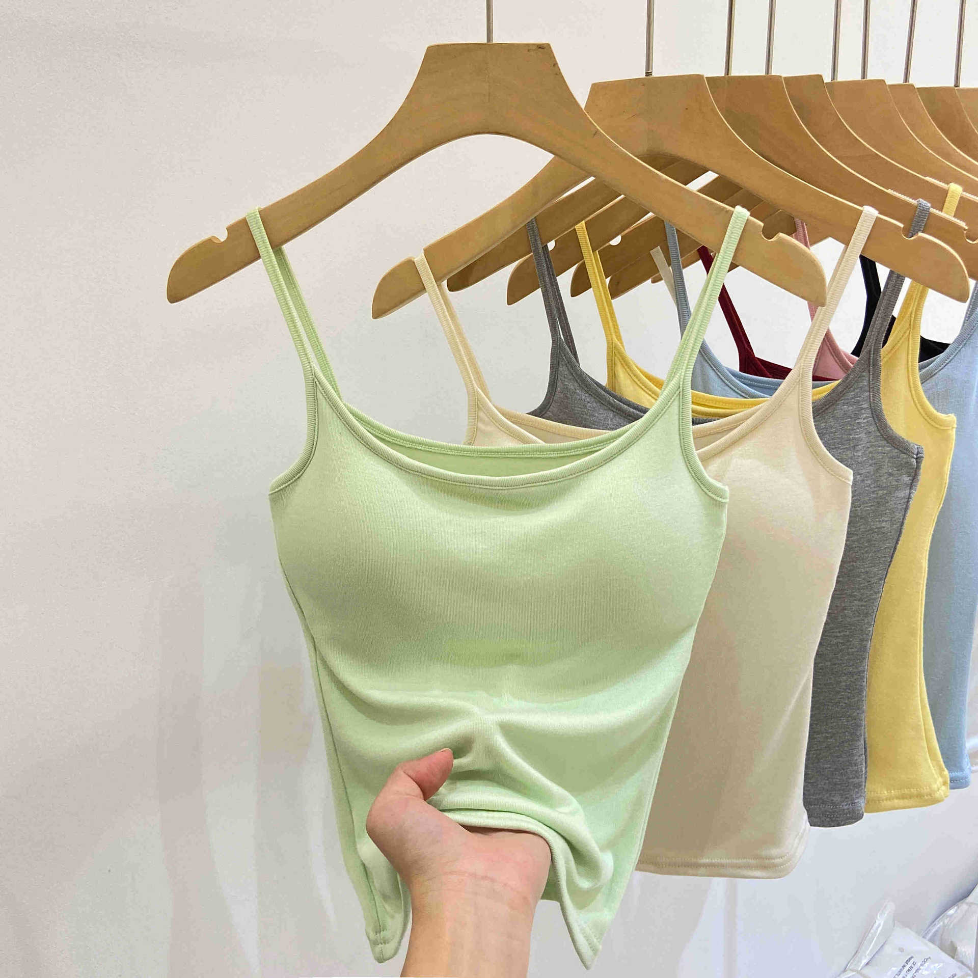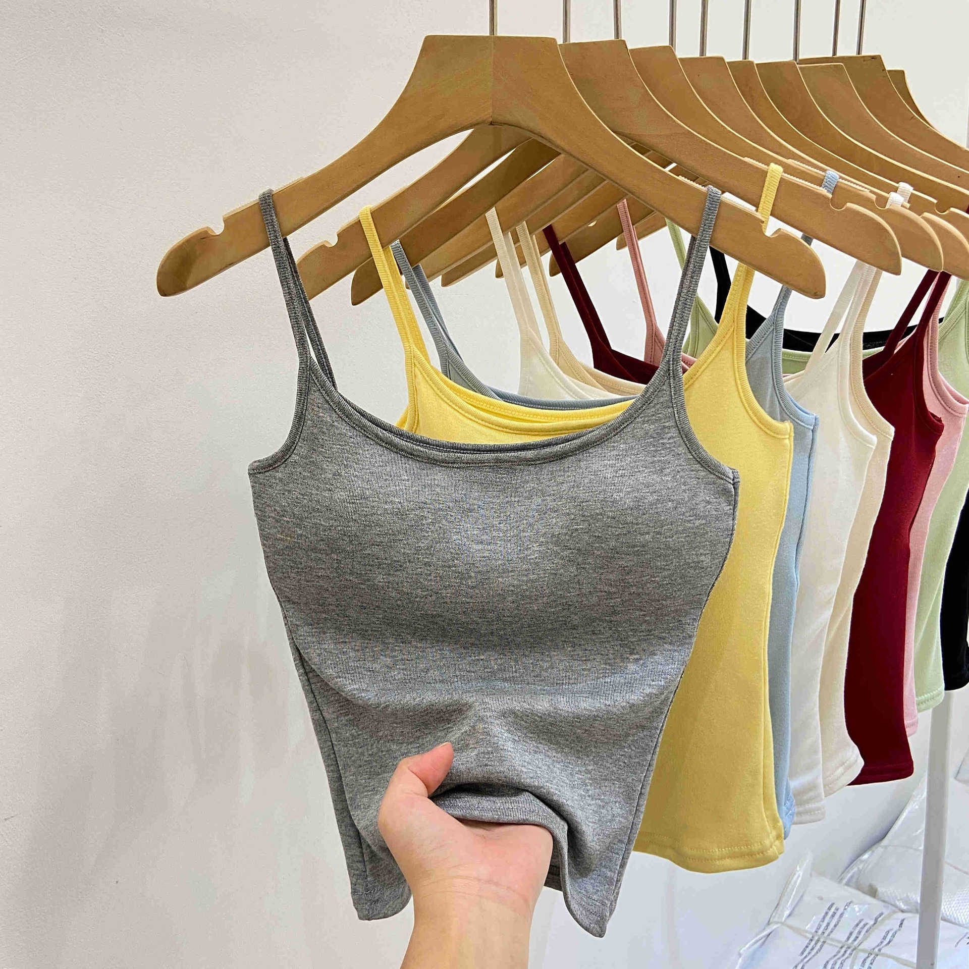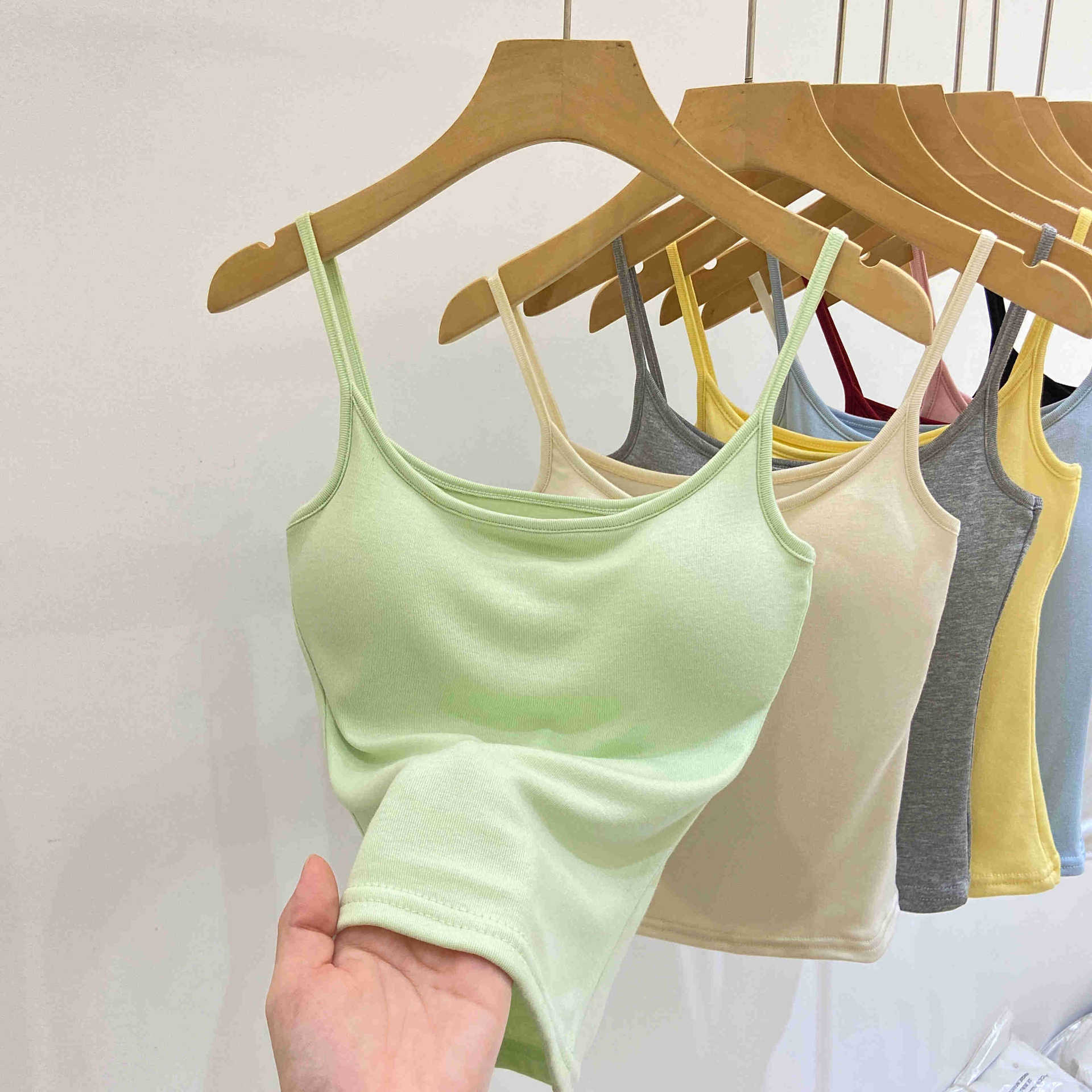 밝은 노란색 카미 솔 여성의 여름 원피스 핫 소녀 민소매 탑 가슴 패드 슬림 핏 짧은 아름다운 뒤스토어 가기