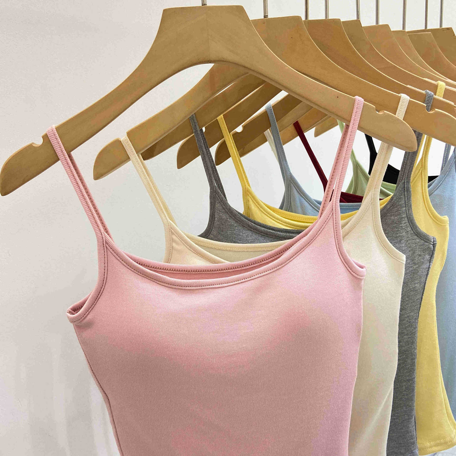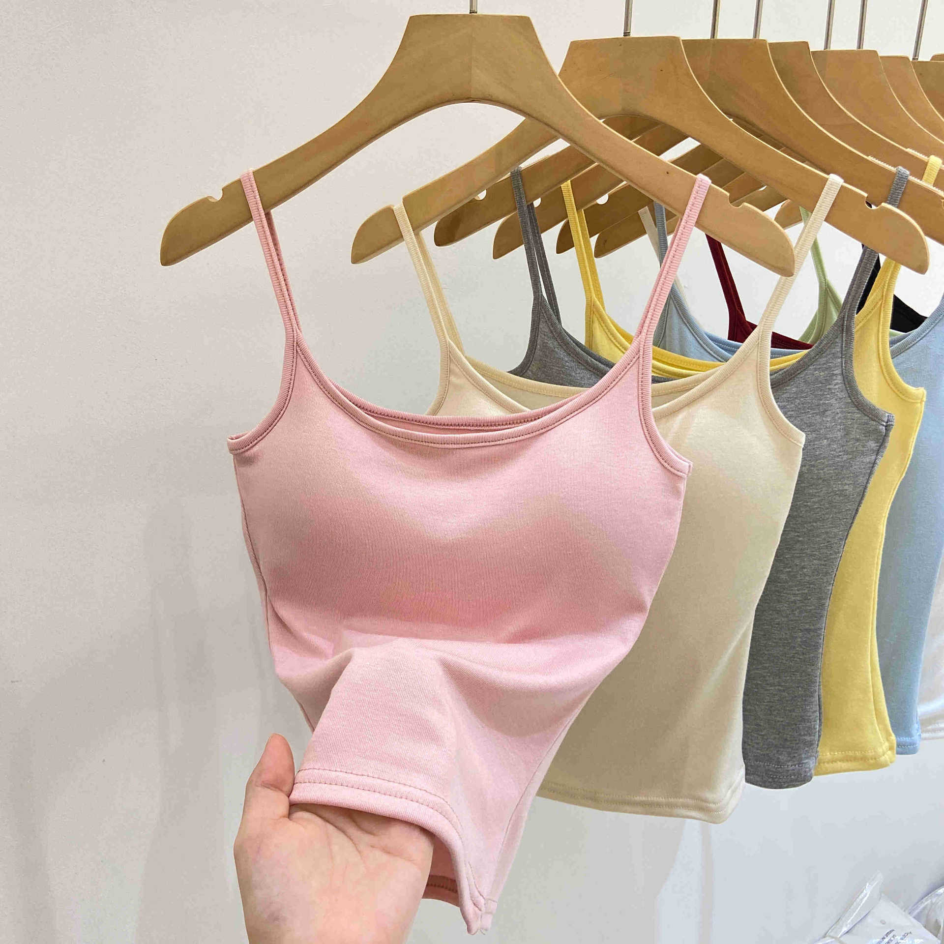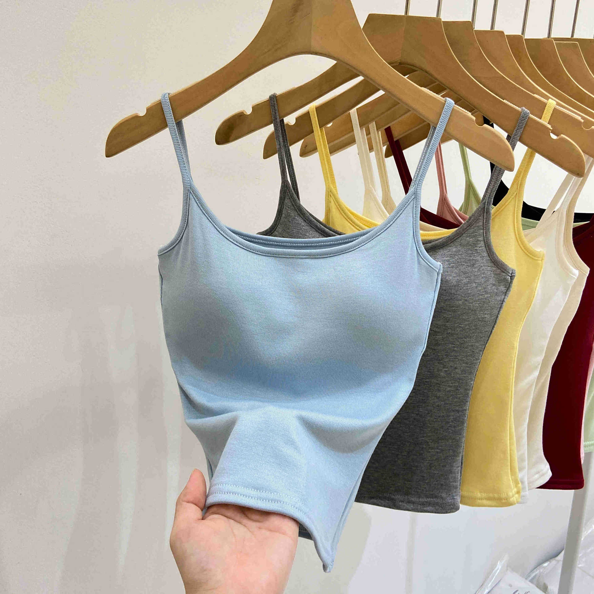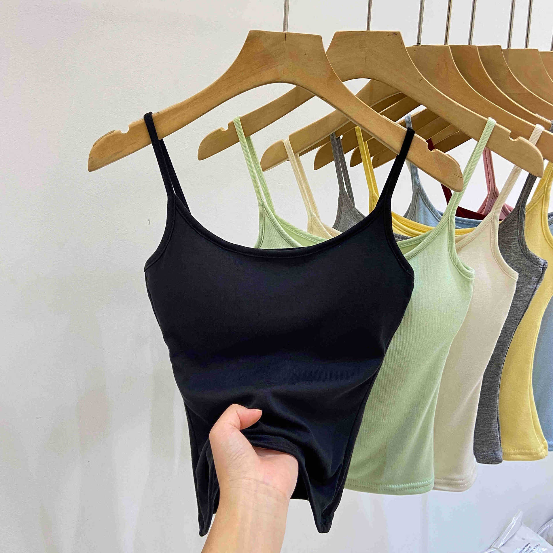 밝은 노란색 카미 솔 여성의 여름 원피스 핫 소녀 민소매 탑 가슴 패드 슬림 핏 짧은 아름다운 뒤스토어 가기
