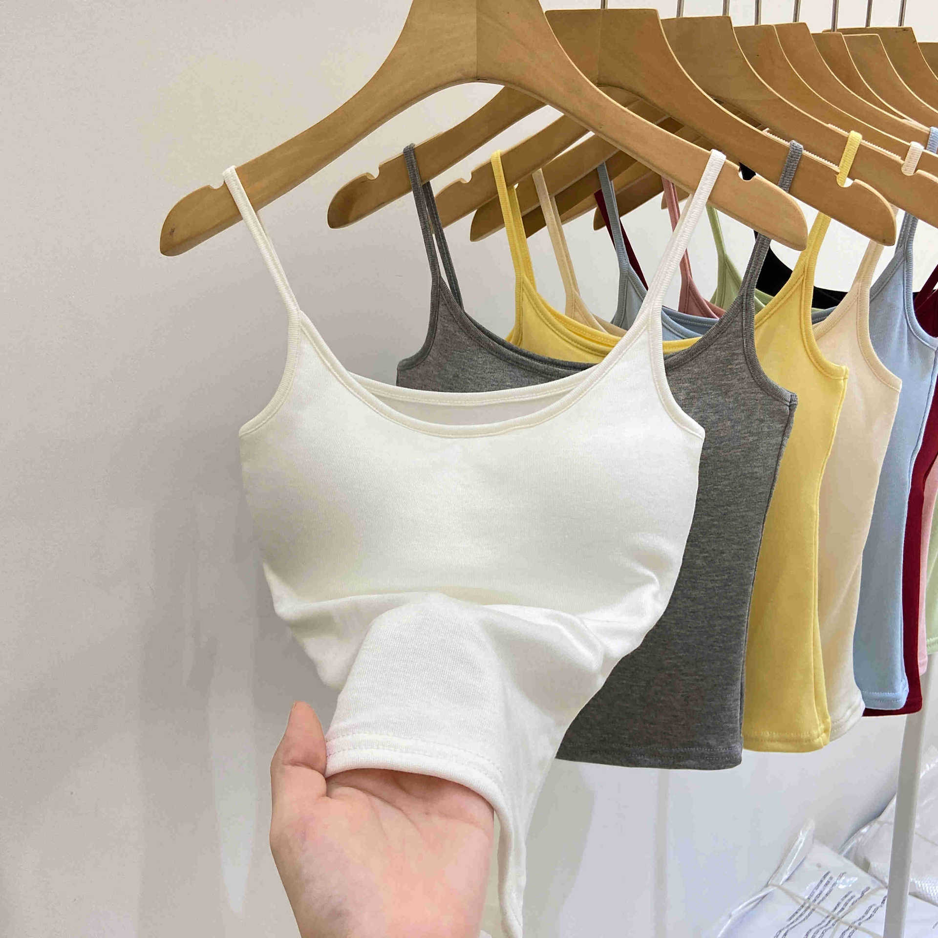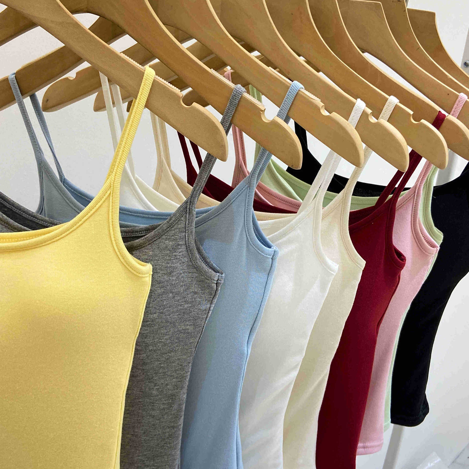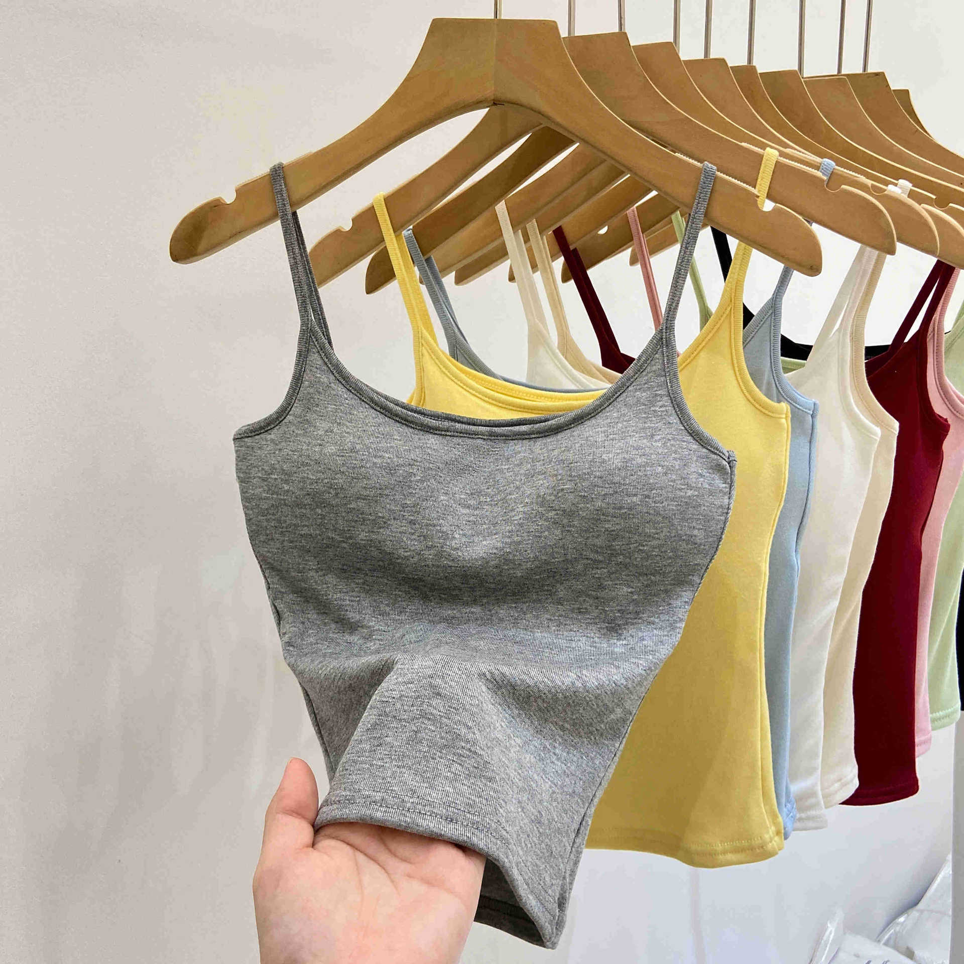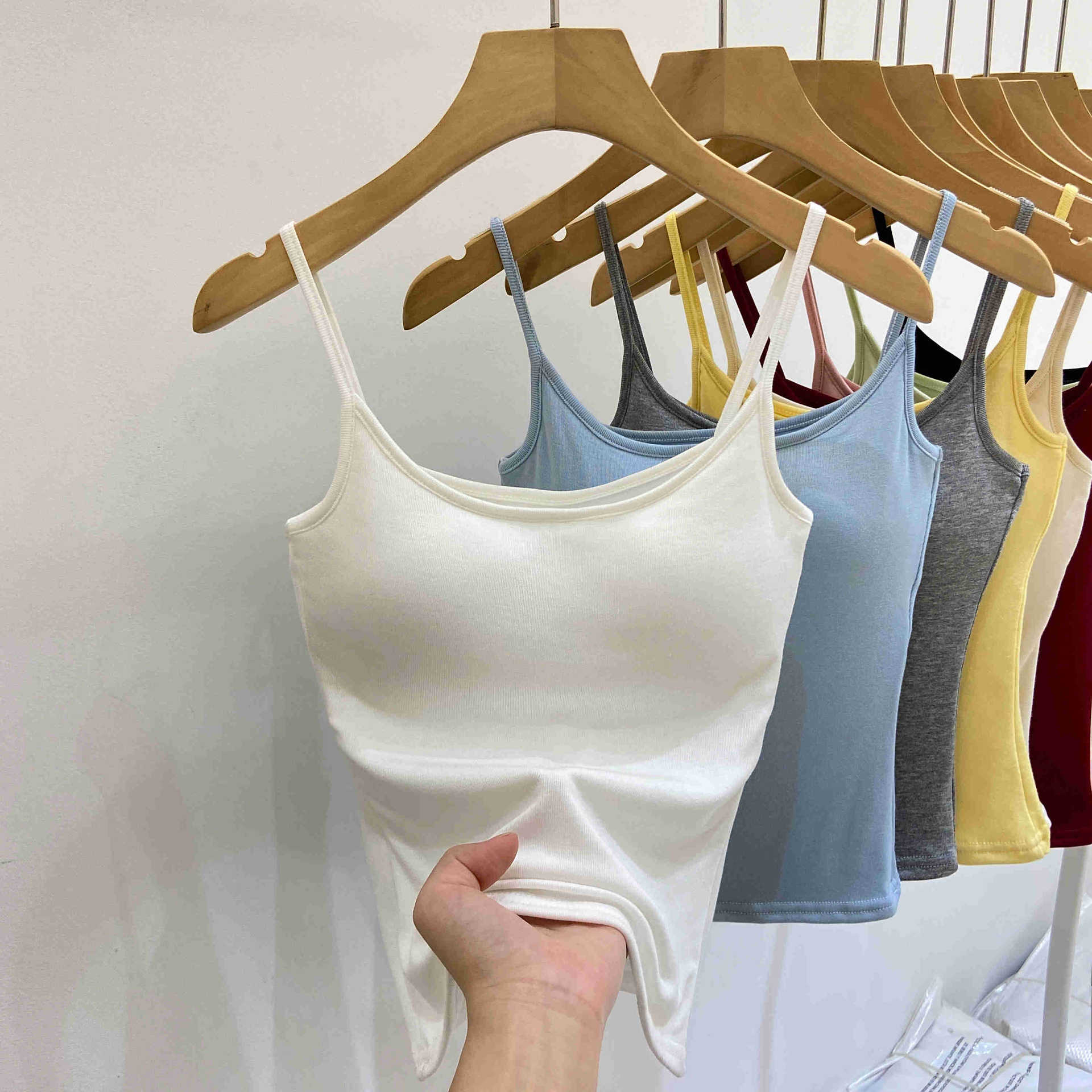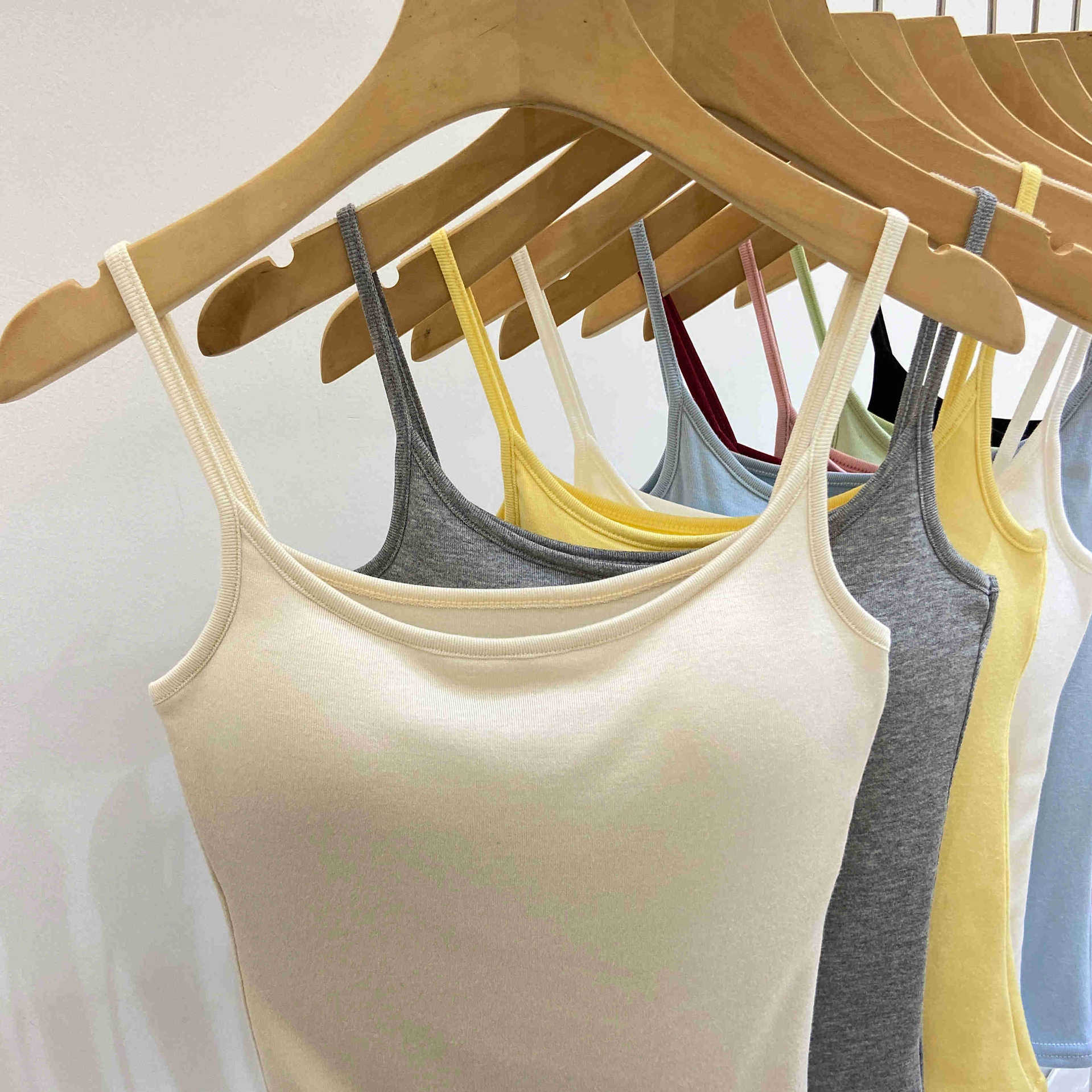 밝은 노란색 카미 솔 여성의 여름 원피스 핫 소녀 민소매 탑 가슴 패드 슬림 핏 짧은 아름다운 뒤스토어 가기