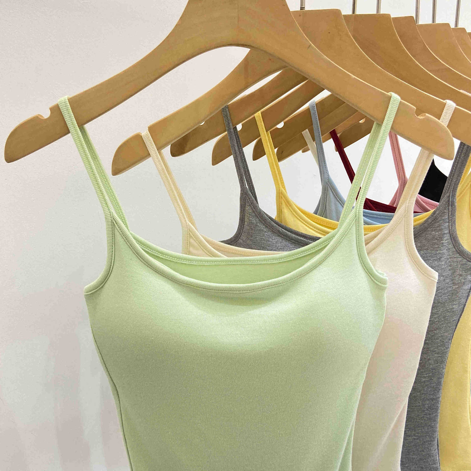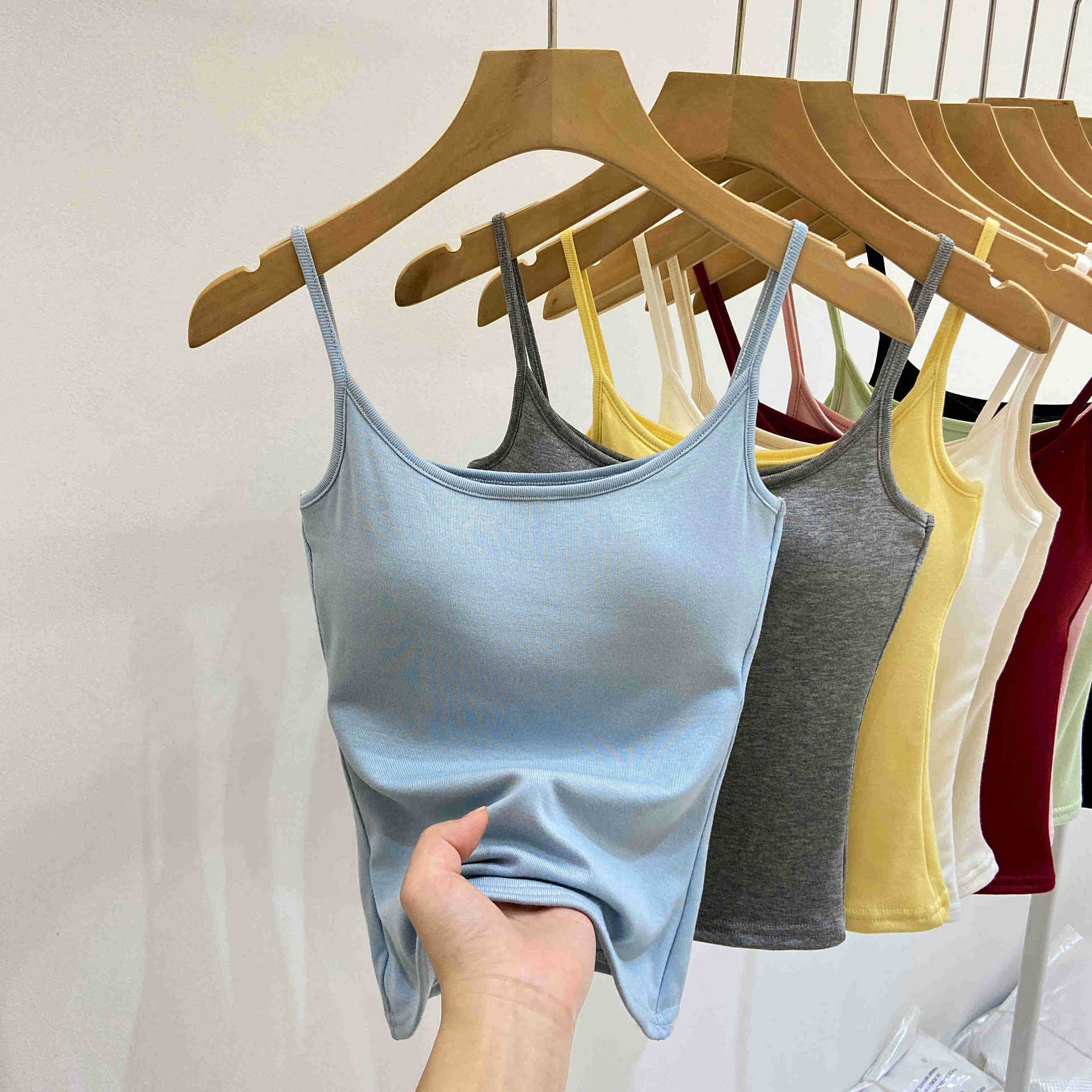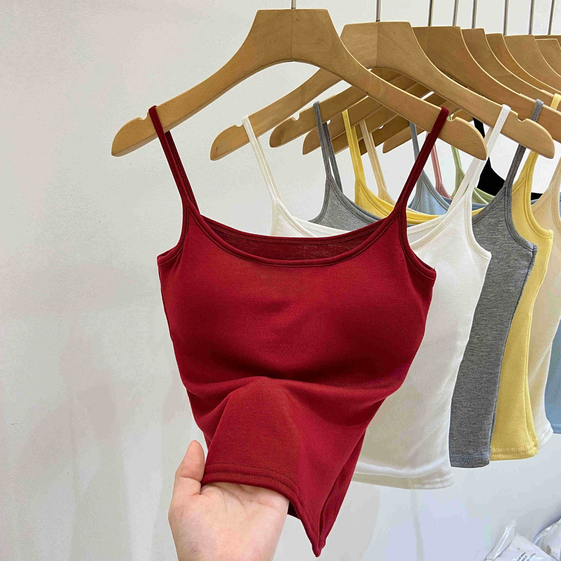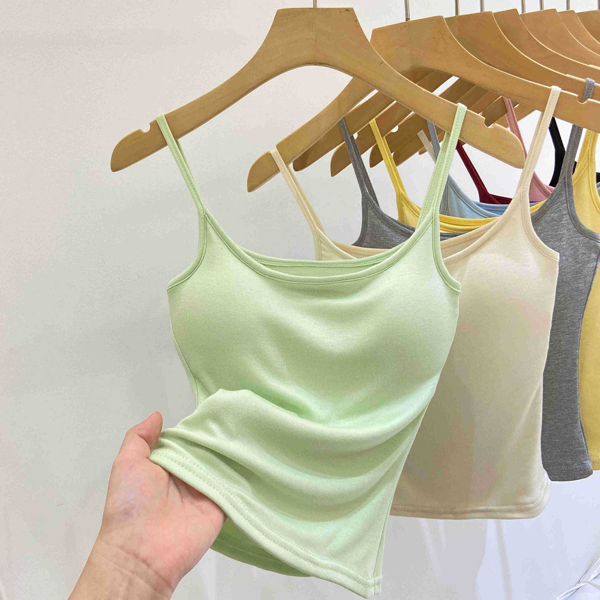 밝은 노란색 카미 솔 여성의 여름 원피스 핫 소녀 민소매 탑 가슴 패드 슬림 핏 짧은 아름다운 뒤스토어 가기