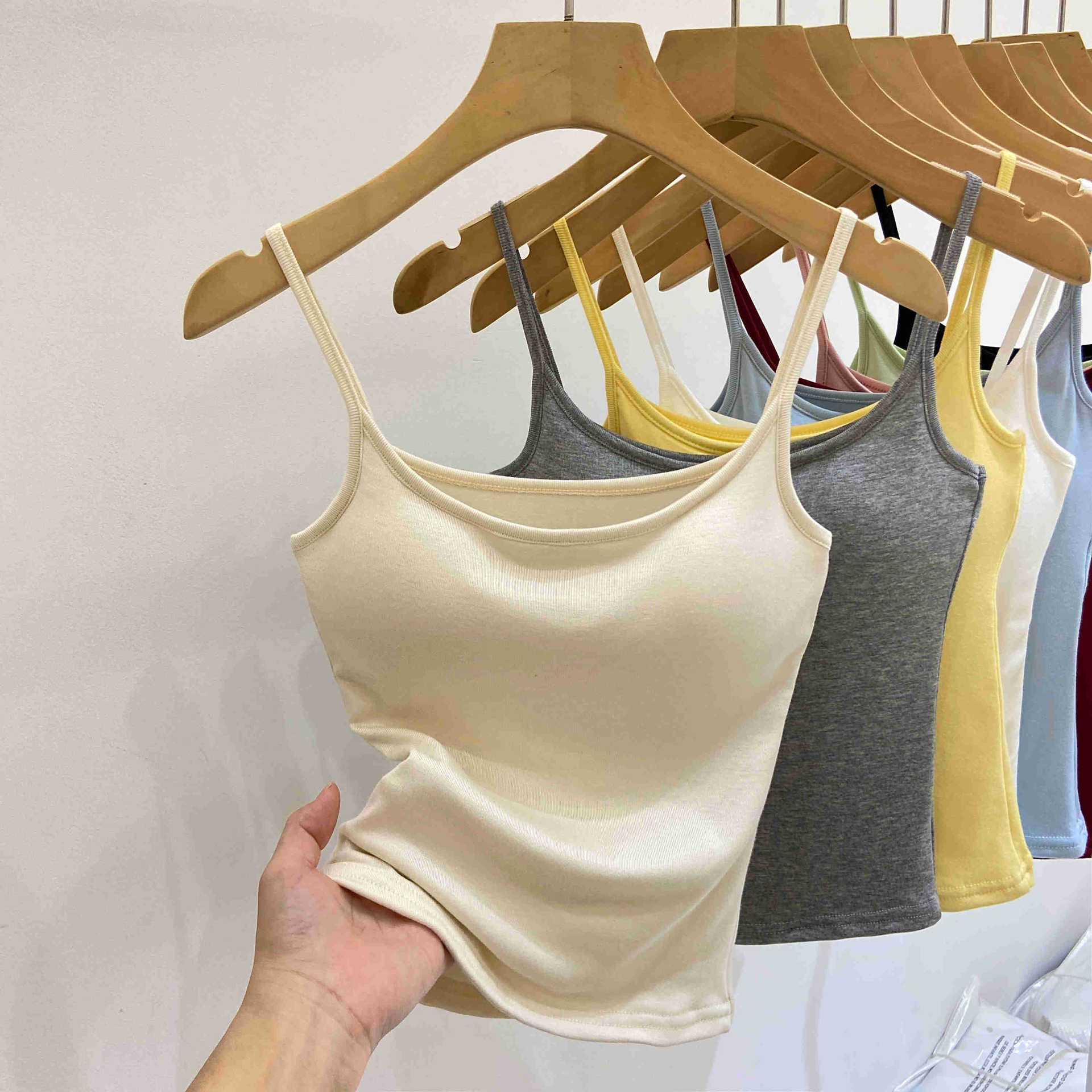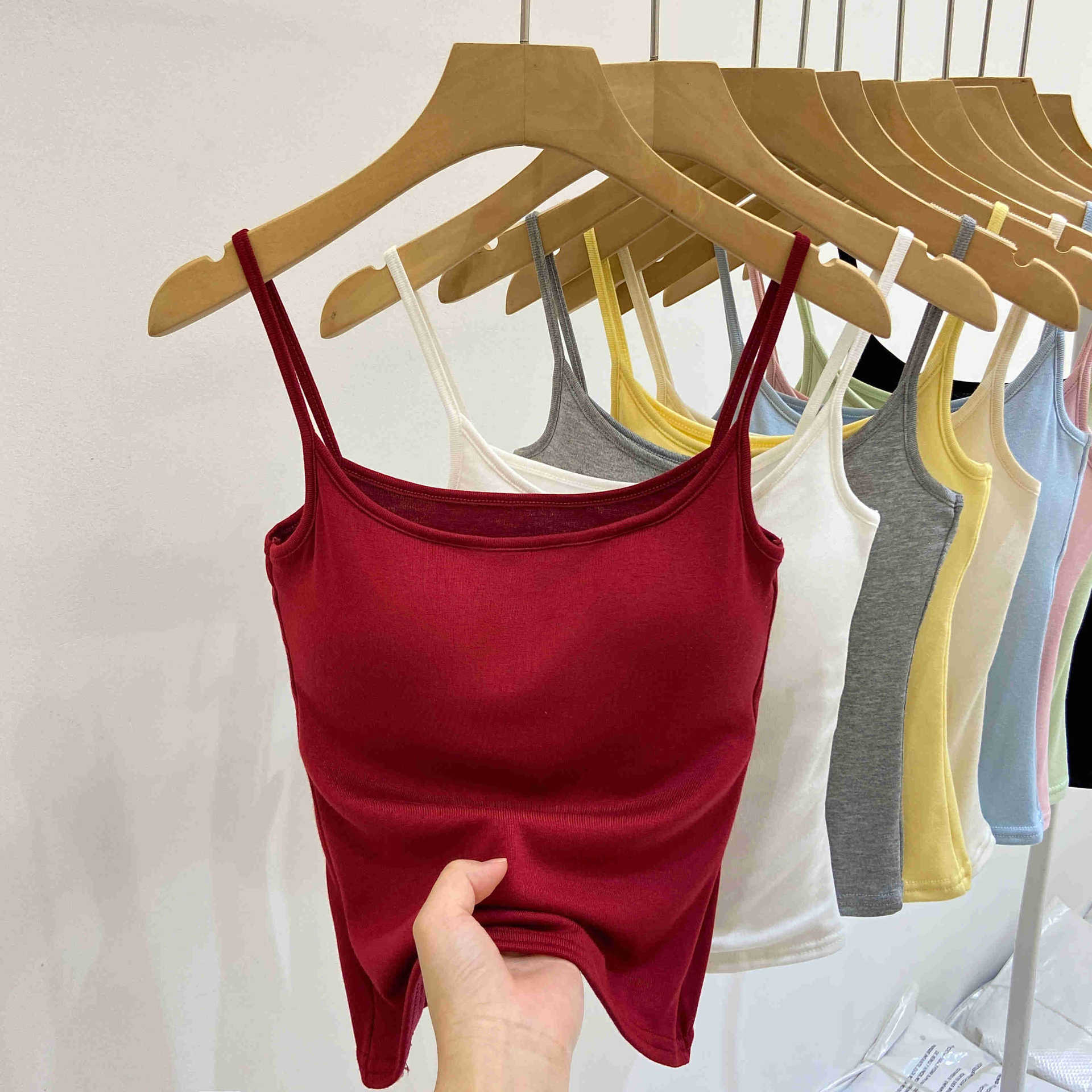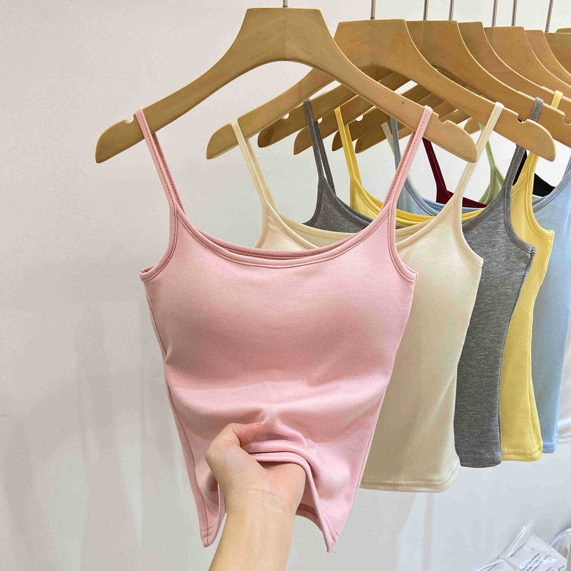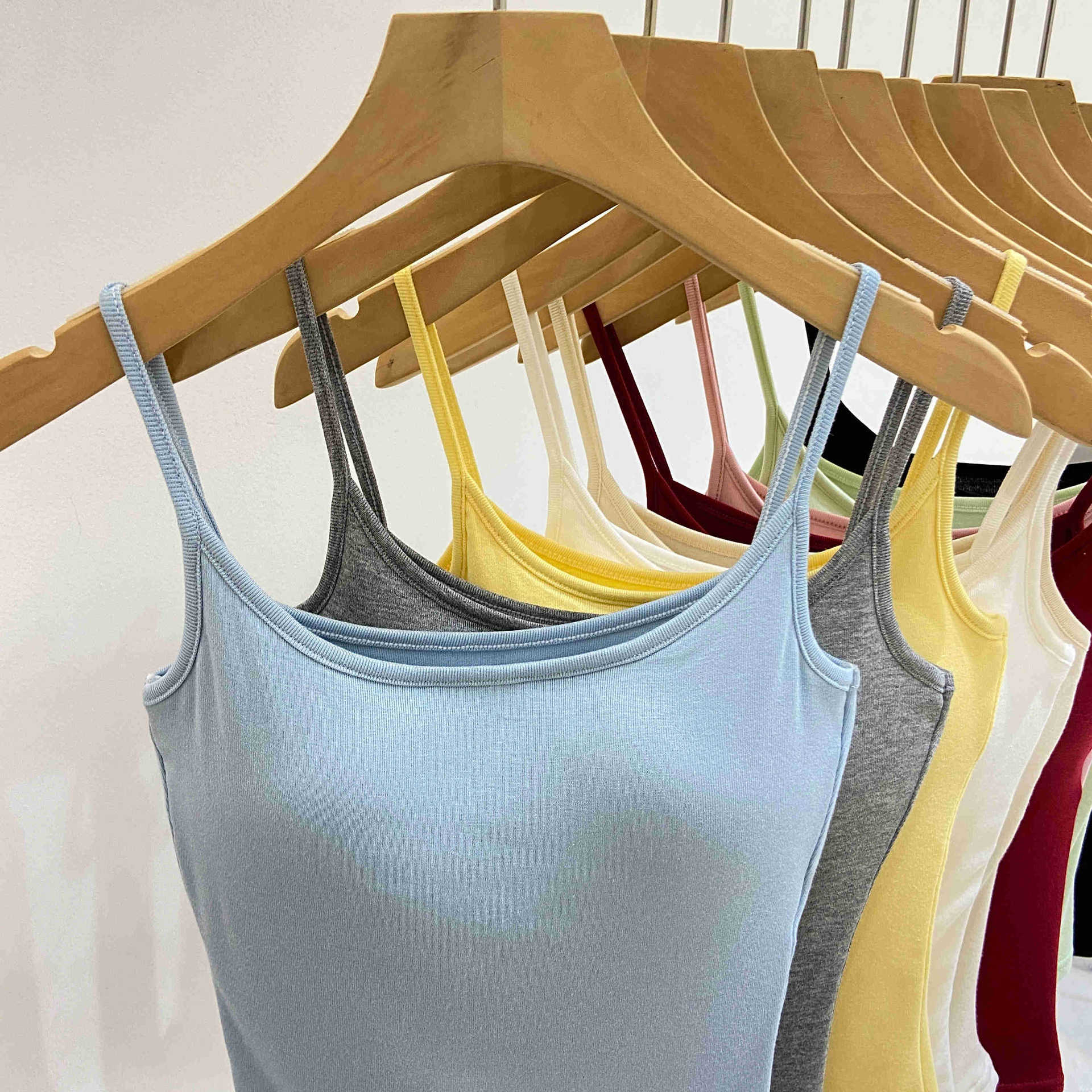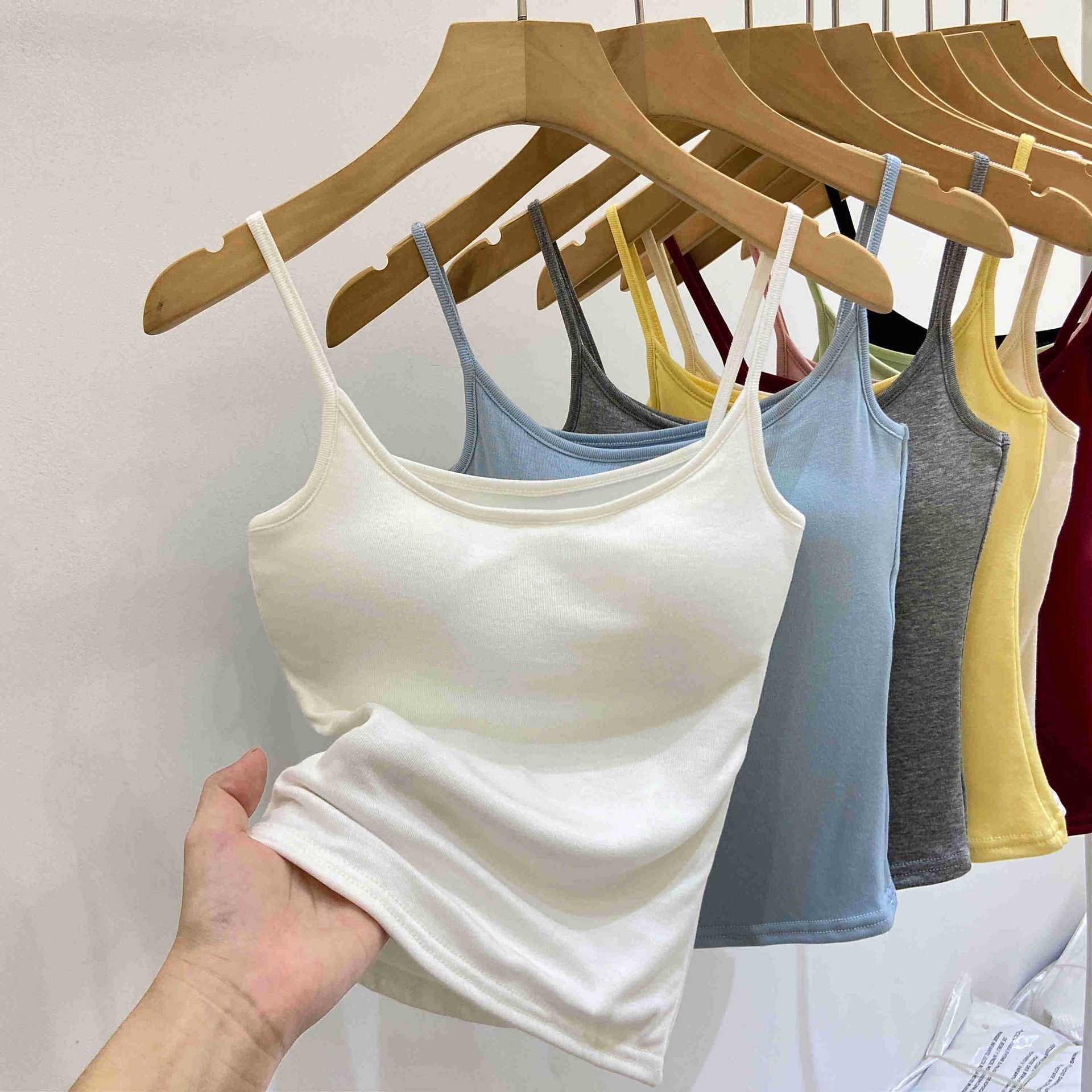 밝은 노란색 카미 솔 여성의 여름 원피스 핫 소녀 민소매 탑 가슴 패드 슬림 핏 짧은 아름다운 뒤스토어 가기