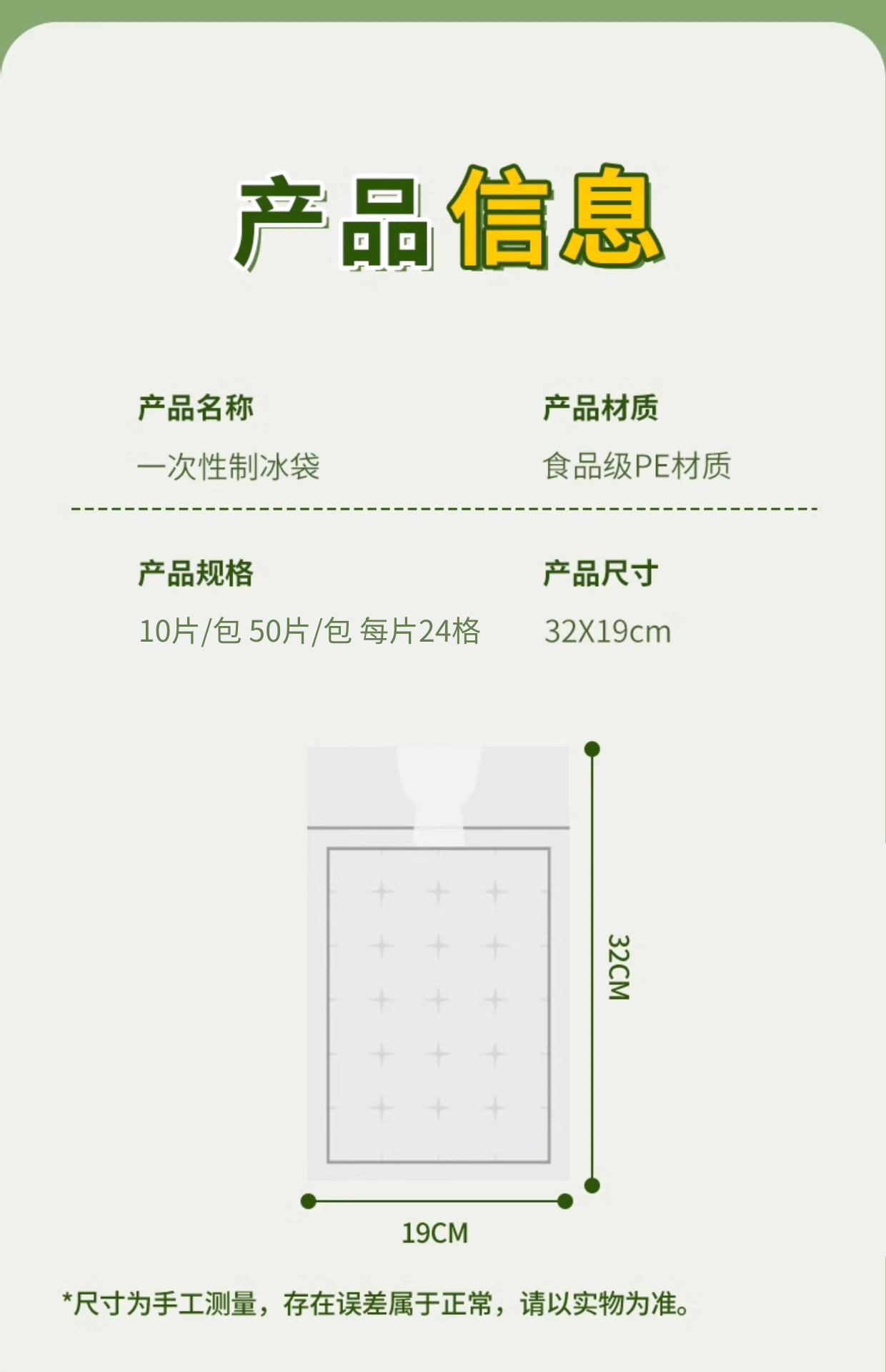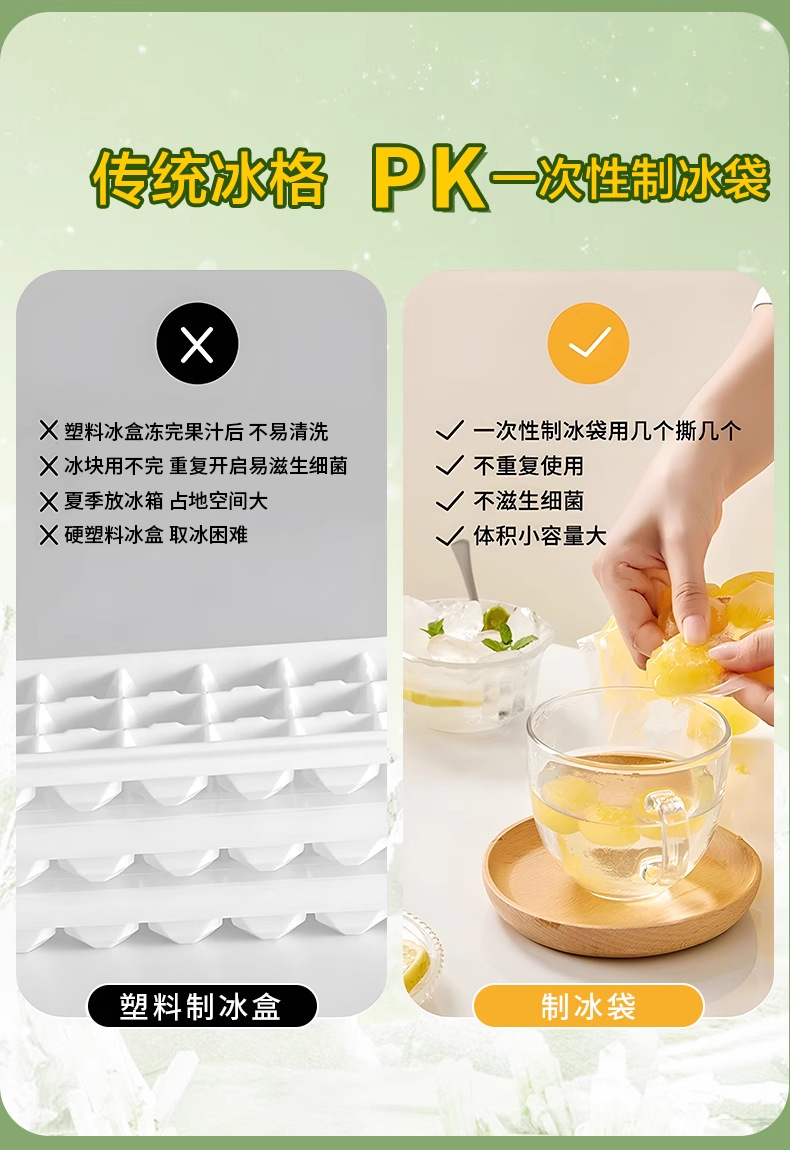 • 얼음주머니가 없는 얼음 트레이 가방 깔때기(개별 포장)