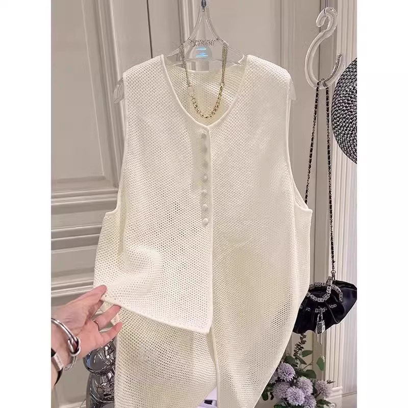 고급스러운 프렌치 스타일의 불규칙 조끼 여성용 2026년 여름 신상 얇은 레이스업 가디건 탑 아우터 조끼