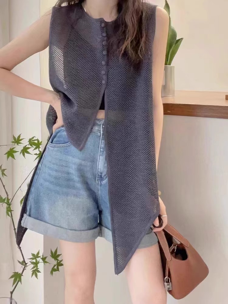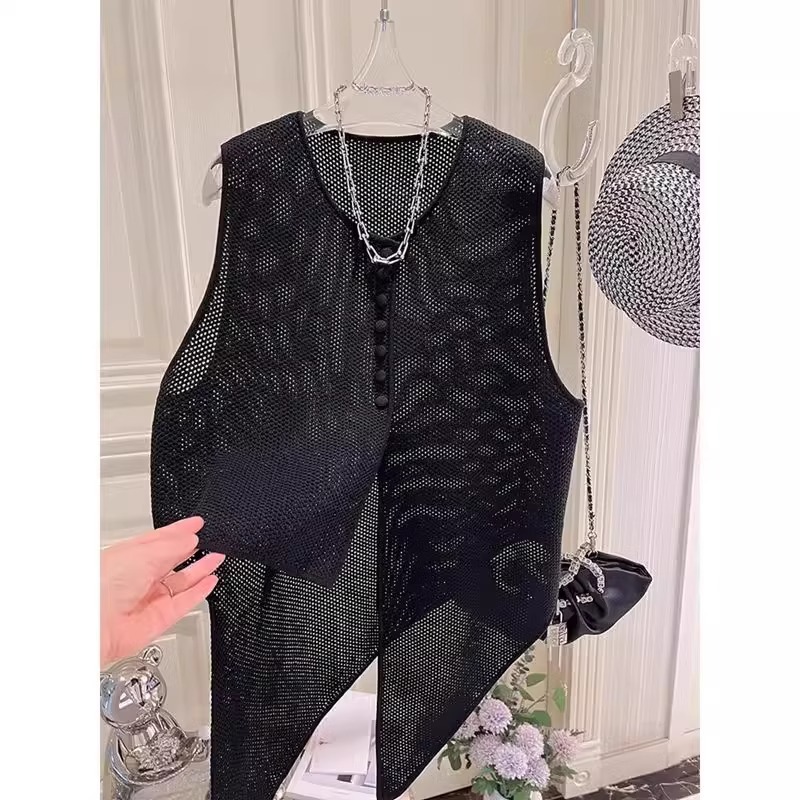 고급스러운 프렌치 스타일의 불규칙 조끼 여성용 2026년 여름 신상 얇은 레이스업 가디건 탑 아우터 조끼스토어 가기
