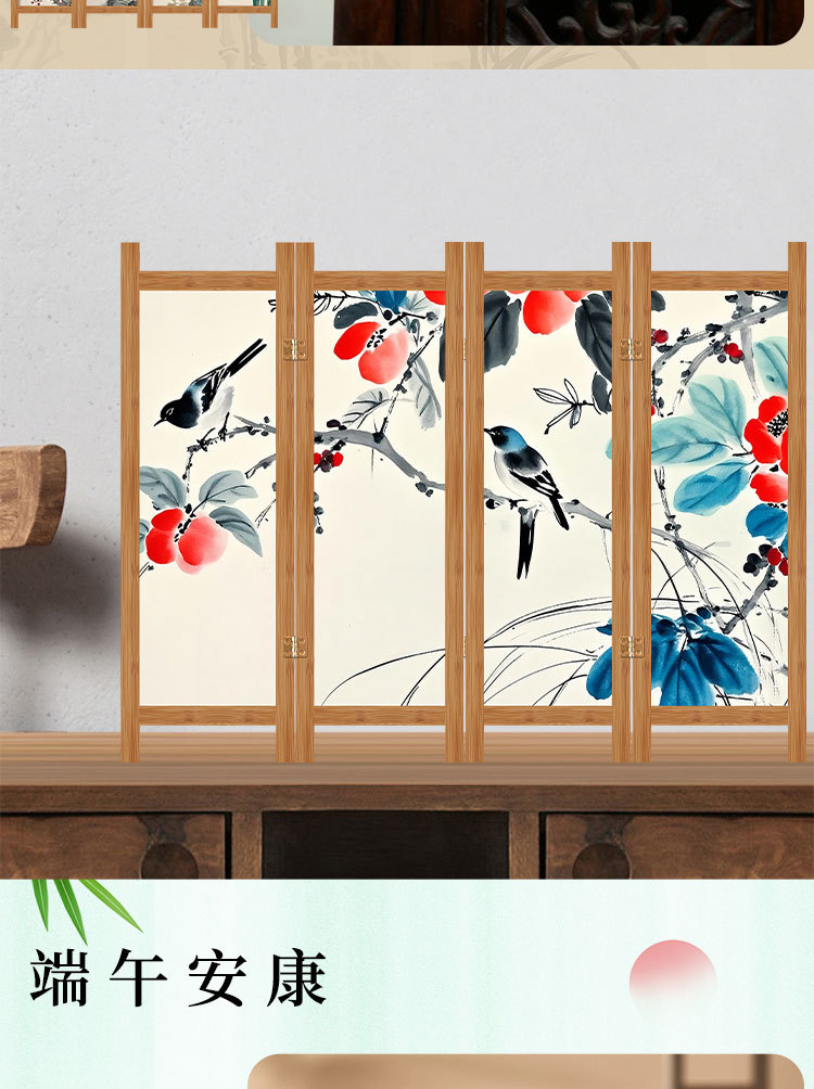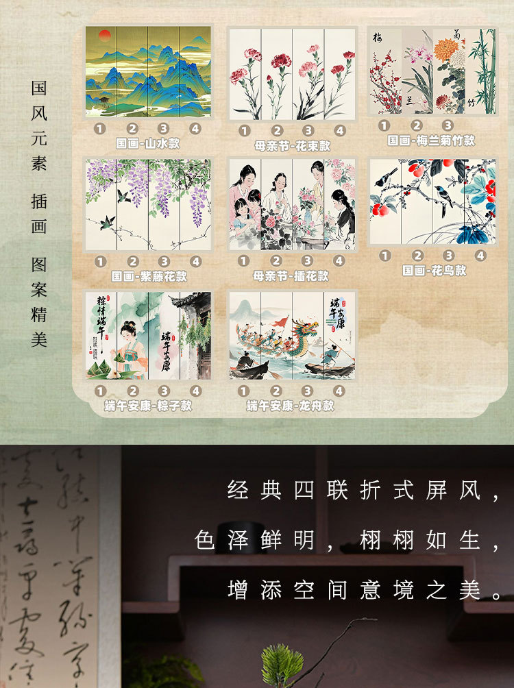 • [매화, 난초, 국화, 대나무 + 꽃과 새] 고대풍 스크린
