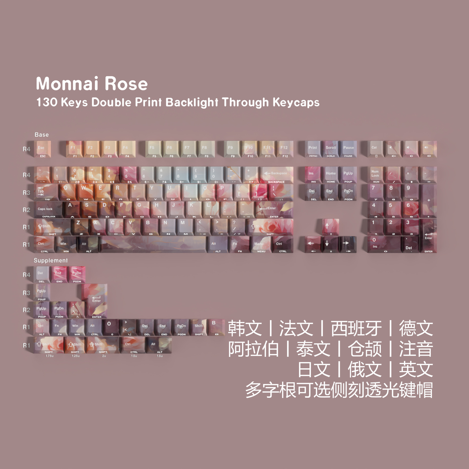 JCM 장미 더블 새겨진 투명 Pbt 원래 전체 세트 주요 모자 한국 러시아 태국 유럽 규칙 작은 언어 우팅스토어 가기
