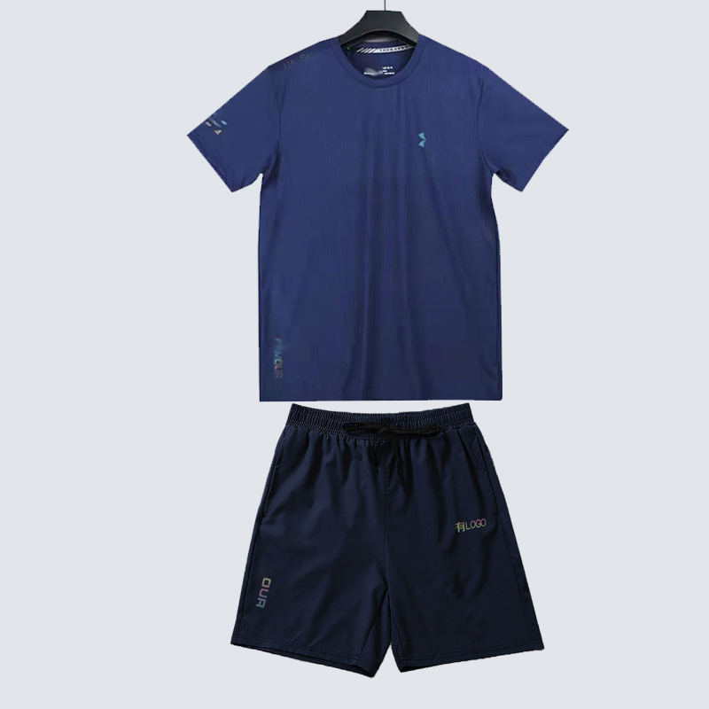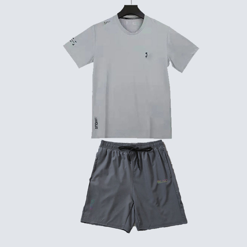 브랜드 재고 아이스 실크 빠른 건조 운동복 세트 달리기 피트니스 농구 야외 통기성 바로 바지 느슨한 반팔