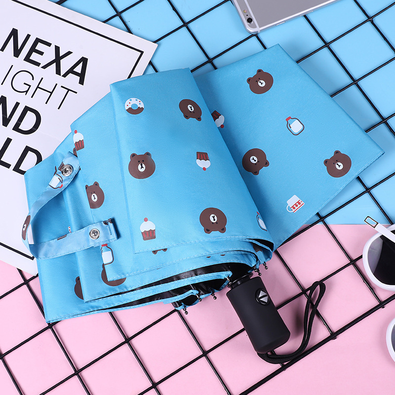 여성용 한국식 완전 자동 학생 우산, 비가 오나 눈이 오나 어린이용 태양 우산, 자외선 차단 및 자외선 차단 비닐 파라솔스토어 가기