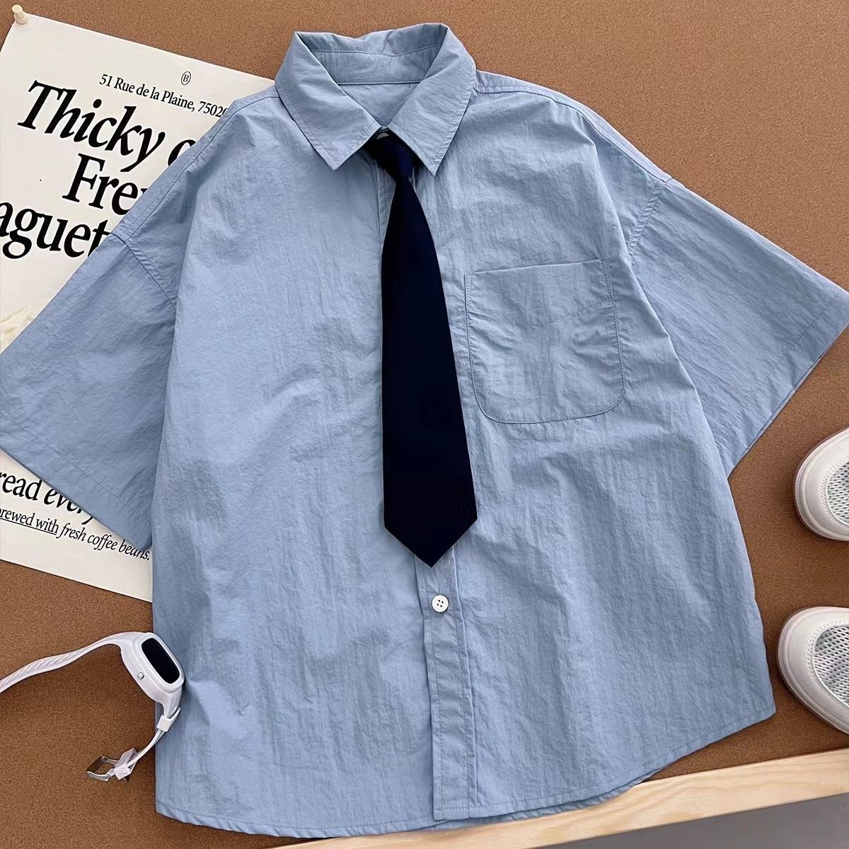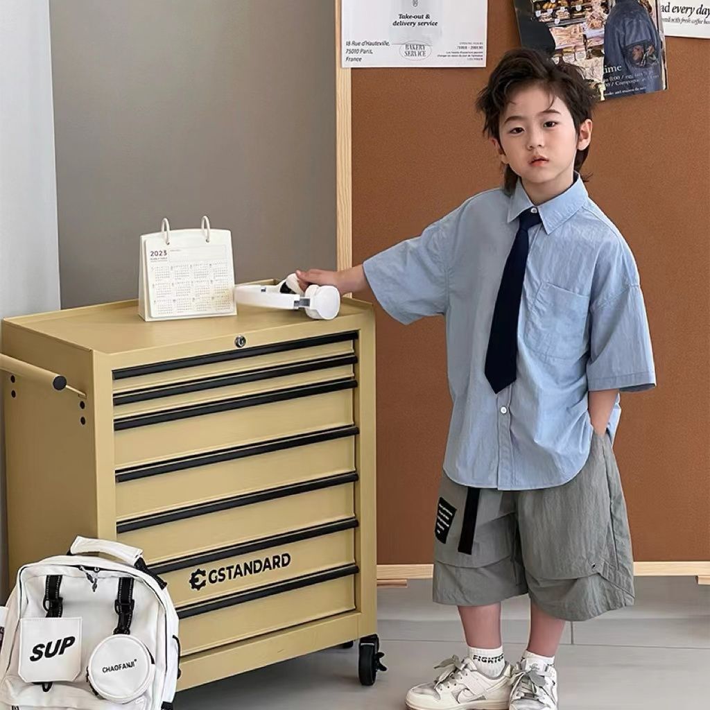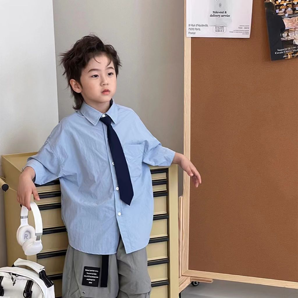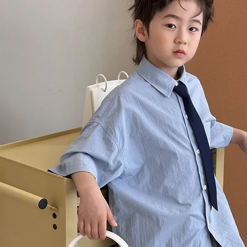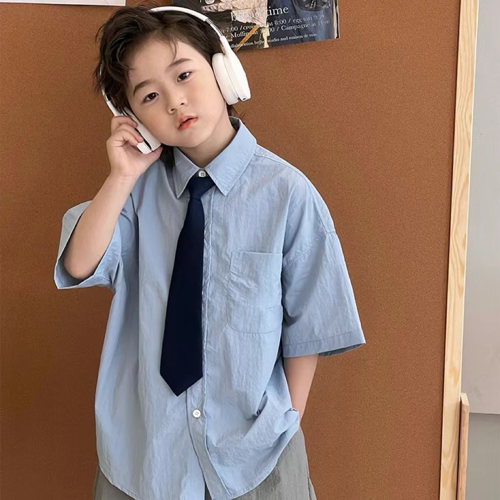 여름 새 스타일 소년 셔츠 반팔 여름 베이비 대학 스타일 2025 셔츠 서양식 캐주얼 대학 스타일스토어 가기