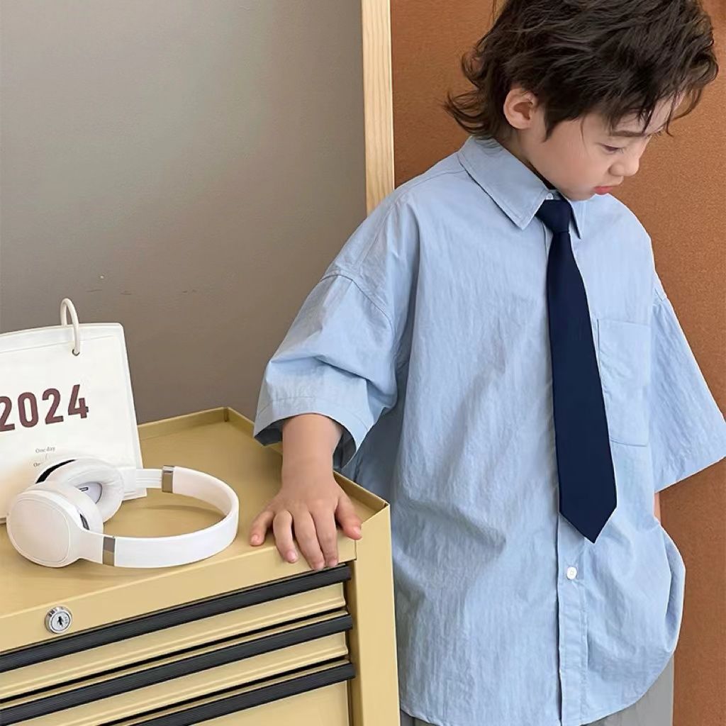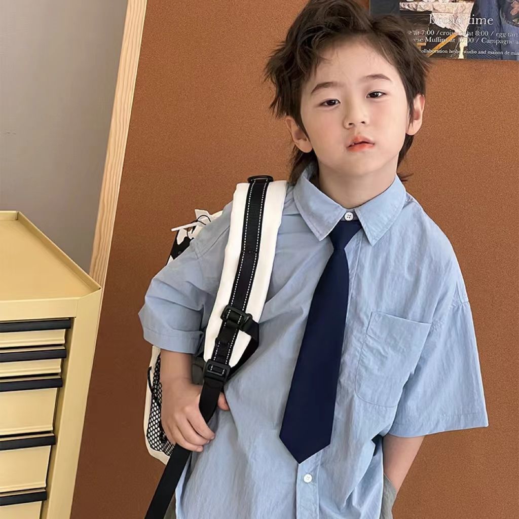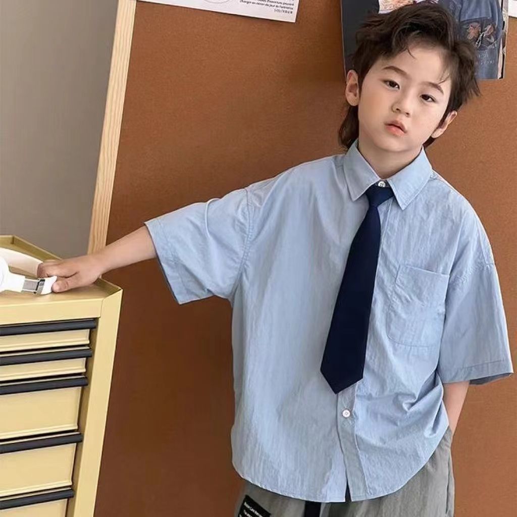 여름 새 스타일 소년 셔츠 반팔 여름 베이비 대학 스타일 2025 셔츠 서양식 캐주얼 대학 스타일