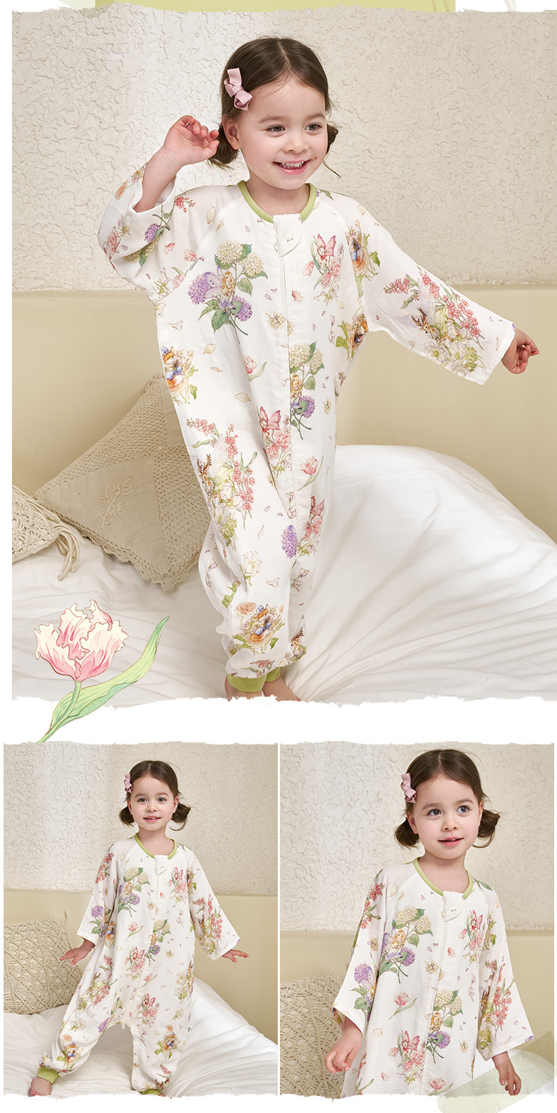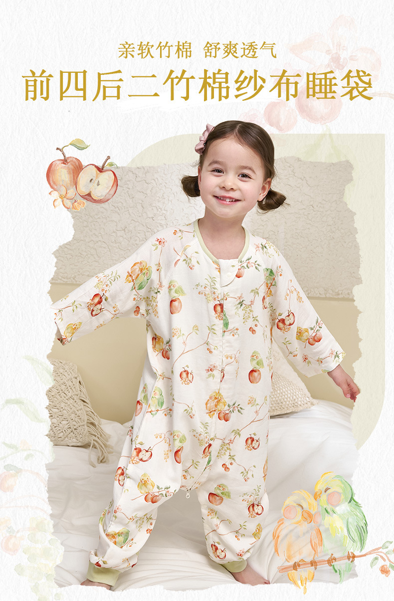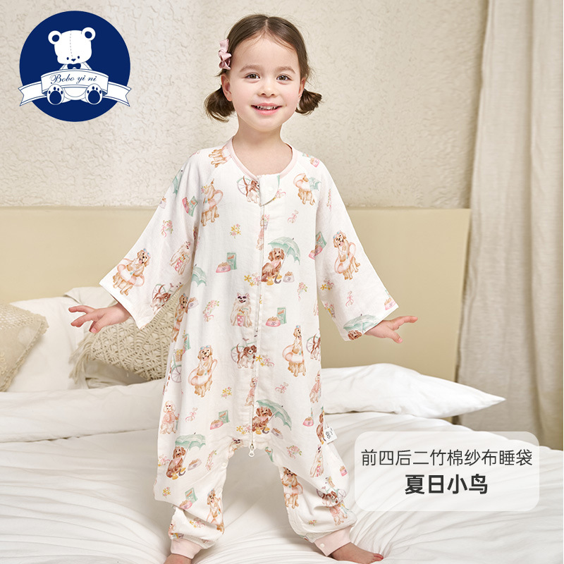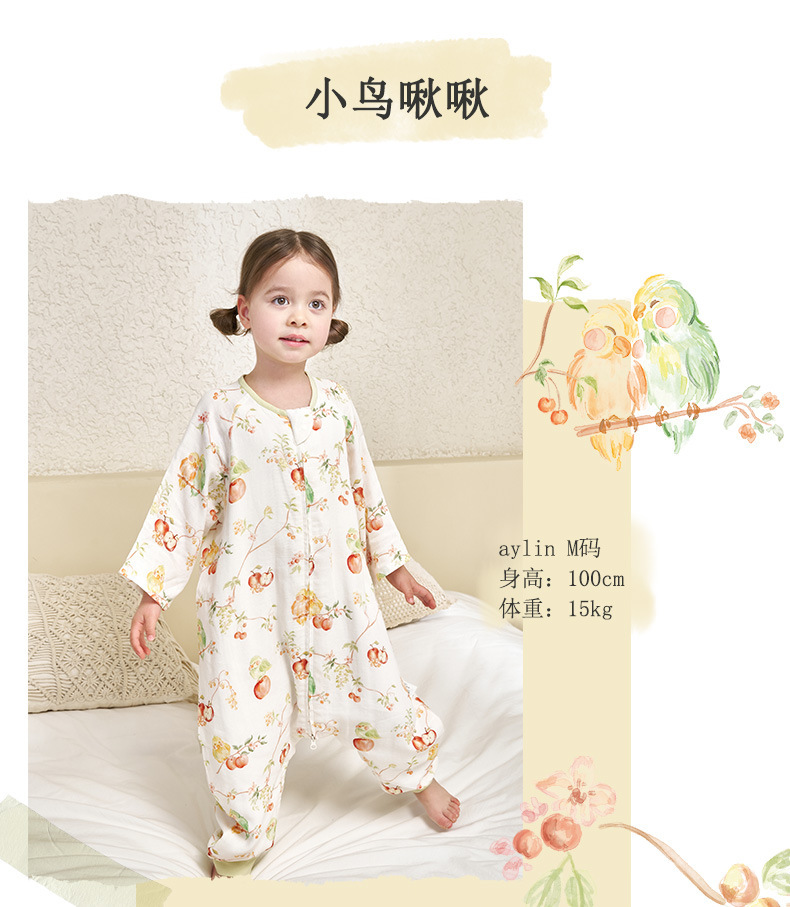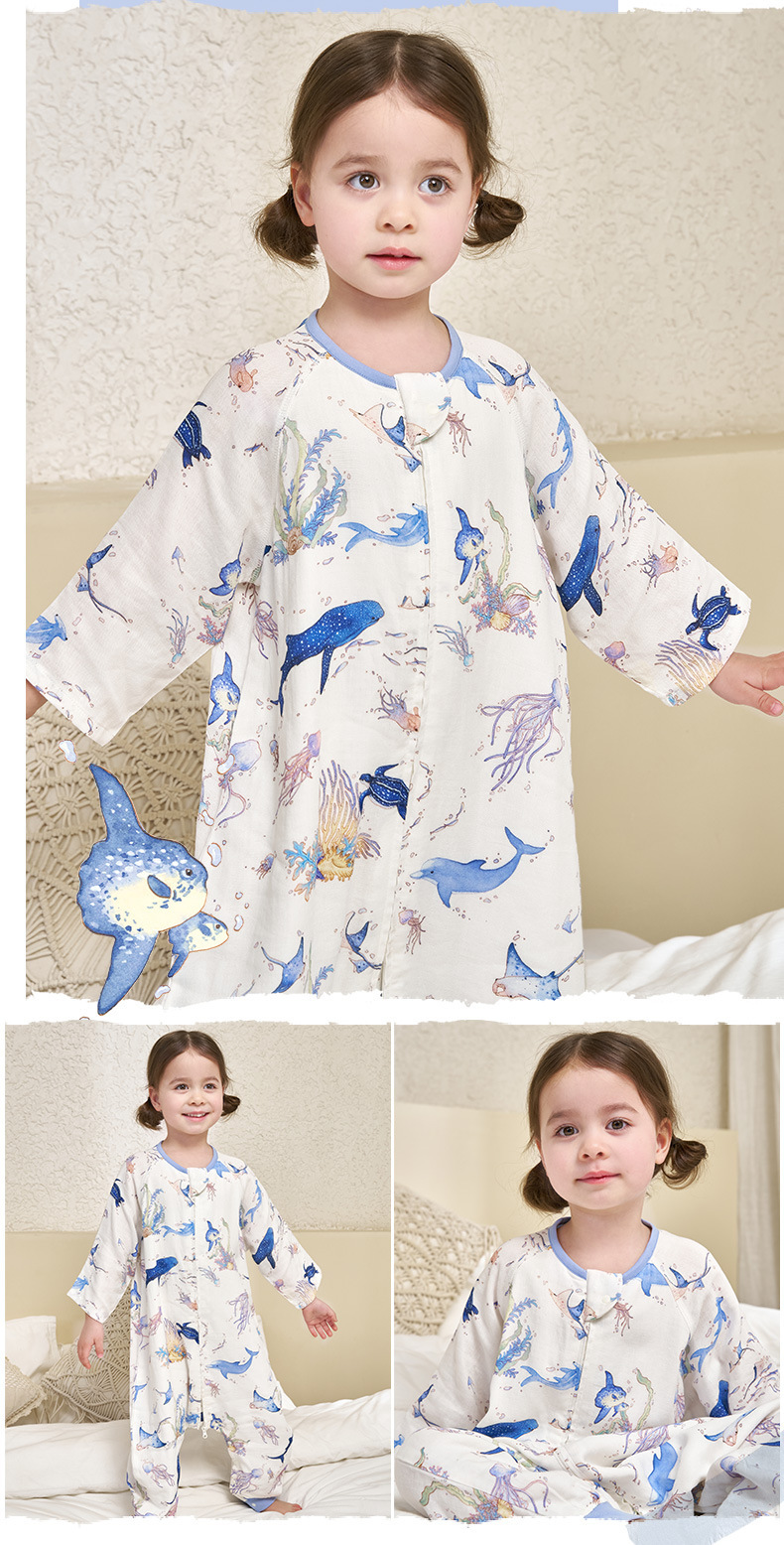 2025 봄/여름 신상품 어린이용 침낭, 앞면 4개, 뒷면 2개의 대나무 면 거즈로 제작, 다리 분리형으로 밤새도록 편안하게 잠을 자는 디자인스토어 가기