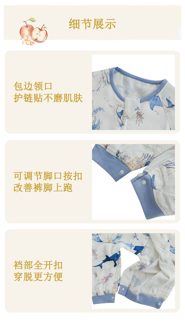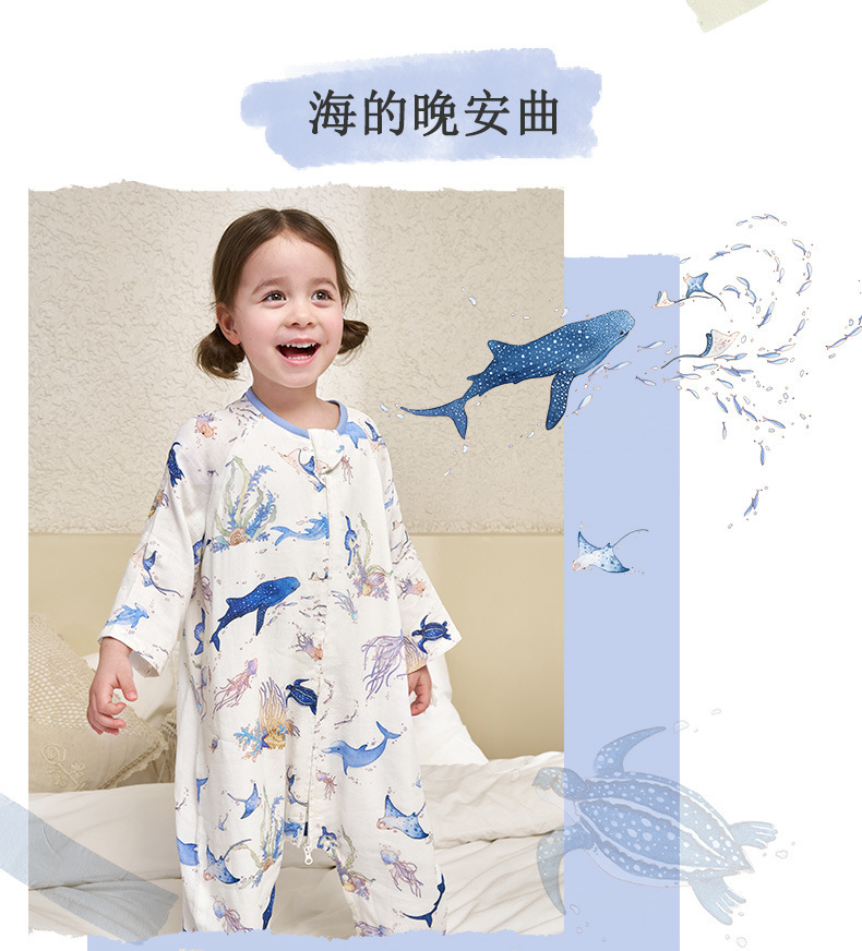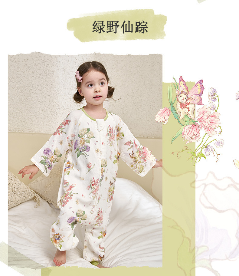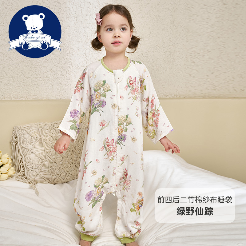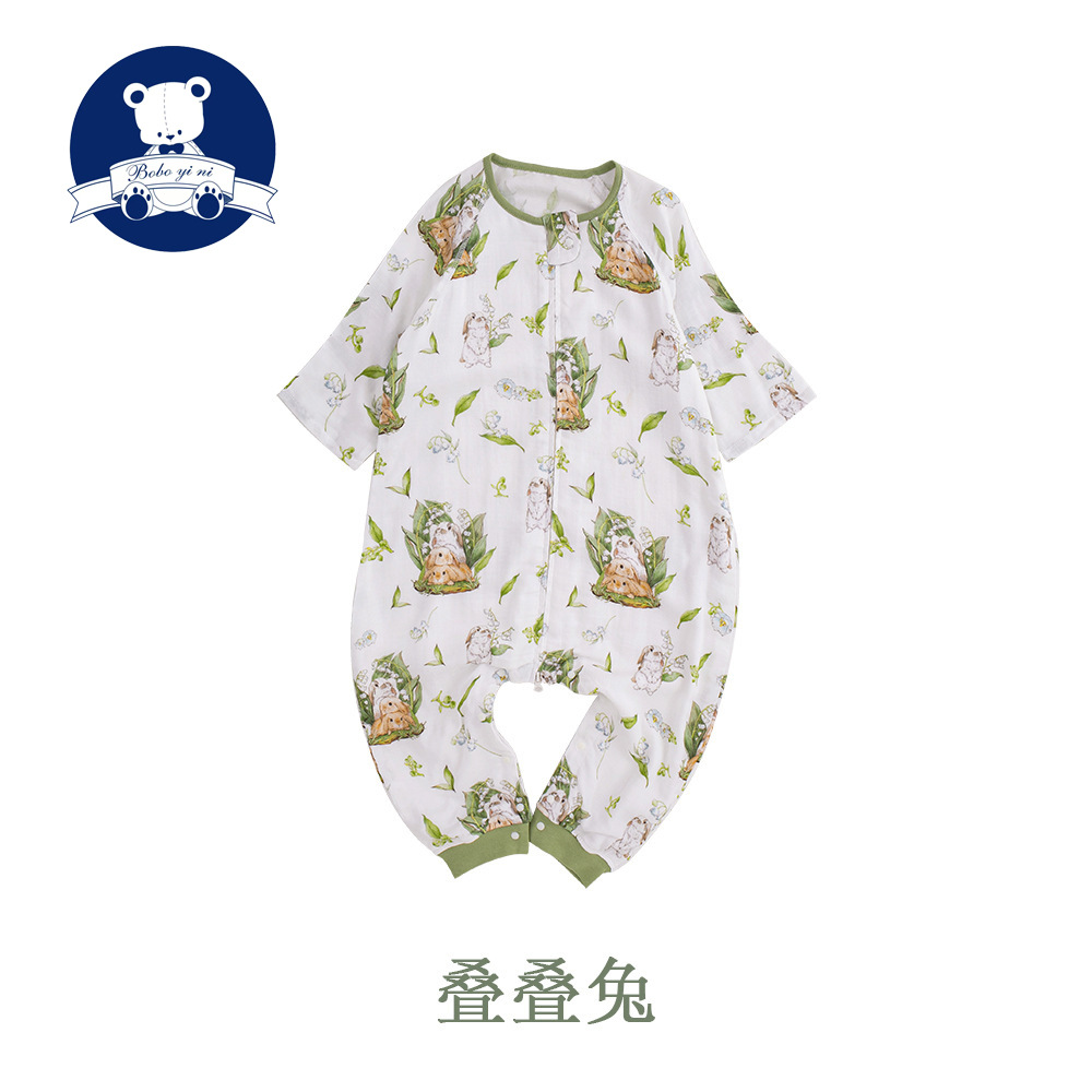 2025 봄/여름 신상품 어린이용 침낭, 앞면 4개, 뒷면 2개의 대나무 면 거즈로 제작, 다리 분리형으로 밤새도록 편안하게 잠을 자는 디자인스토어 가기