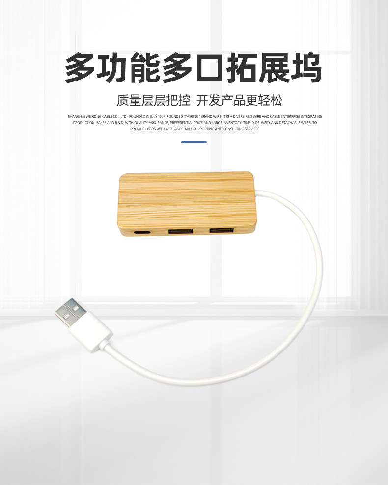 새로운 대나무 USB 허브 분배기 선물 다기능 멀티 포트 도킹 스테이션 허브 컴퓨터 변환 커넥터
