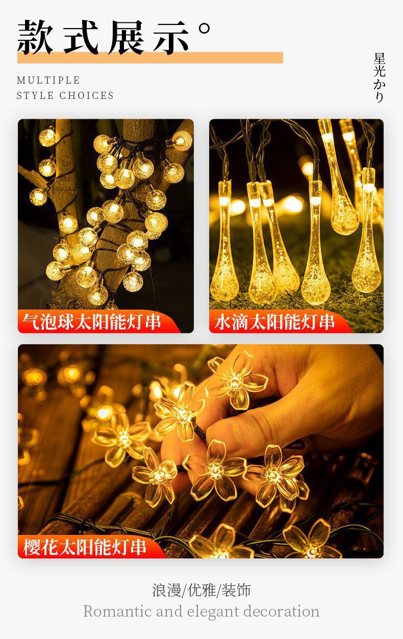 야외 캠핑 텐트 크리스마스 분위기 장식 별 조명 태양열 스트링 LED 새해 조명 야간 조명