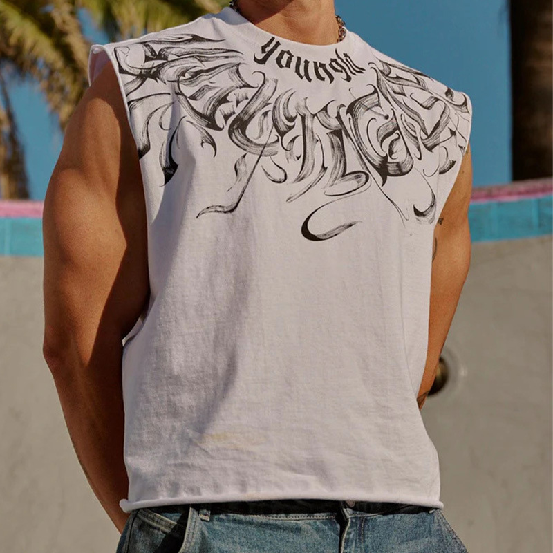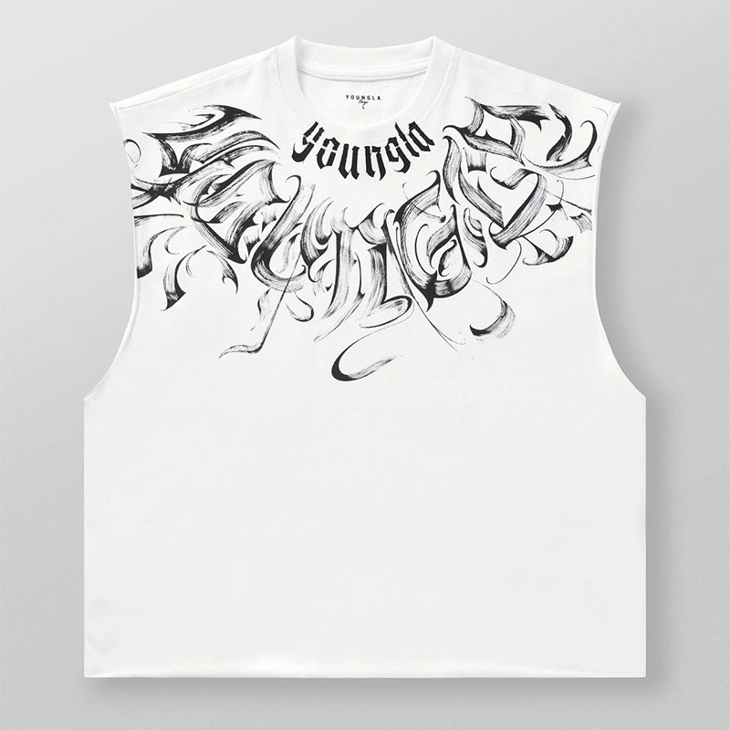 아메리칸 YOUNG 조끼 남성 코튼 근육 넓은 어깨 트렌디 패션 스포츠 피트니스 러닝 캐주얼 민소매 셔츠