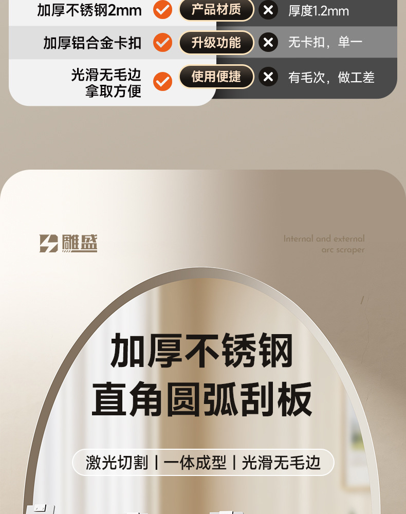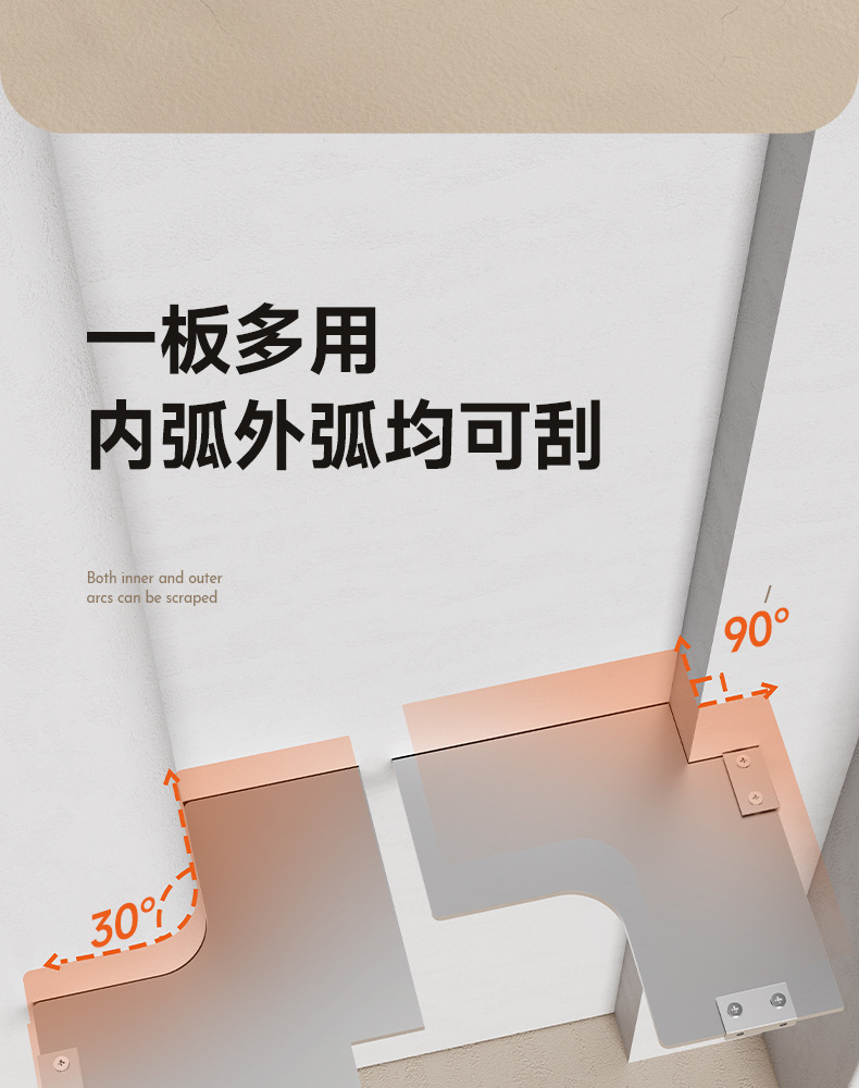 두꺼운 스테인레스 스틸 아크 외부 직각 스크레이퍼 조정 가능한 다기능 음양 코너 스크레이퍼 스크레이퍼 도구 도매스토어 가기