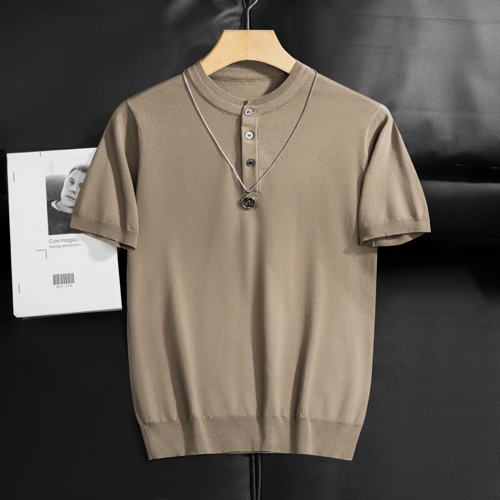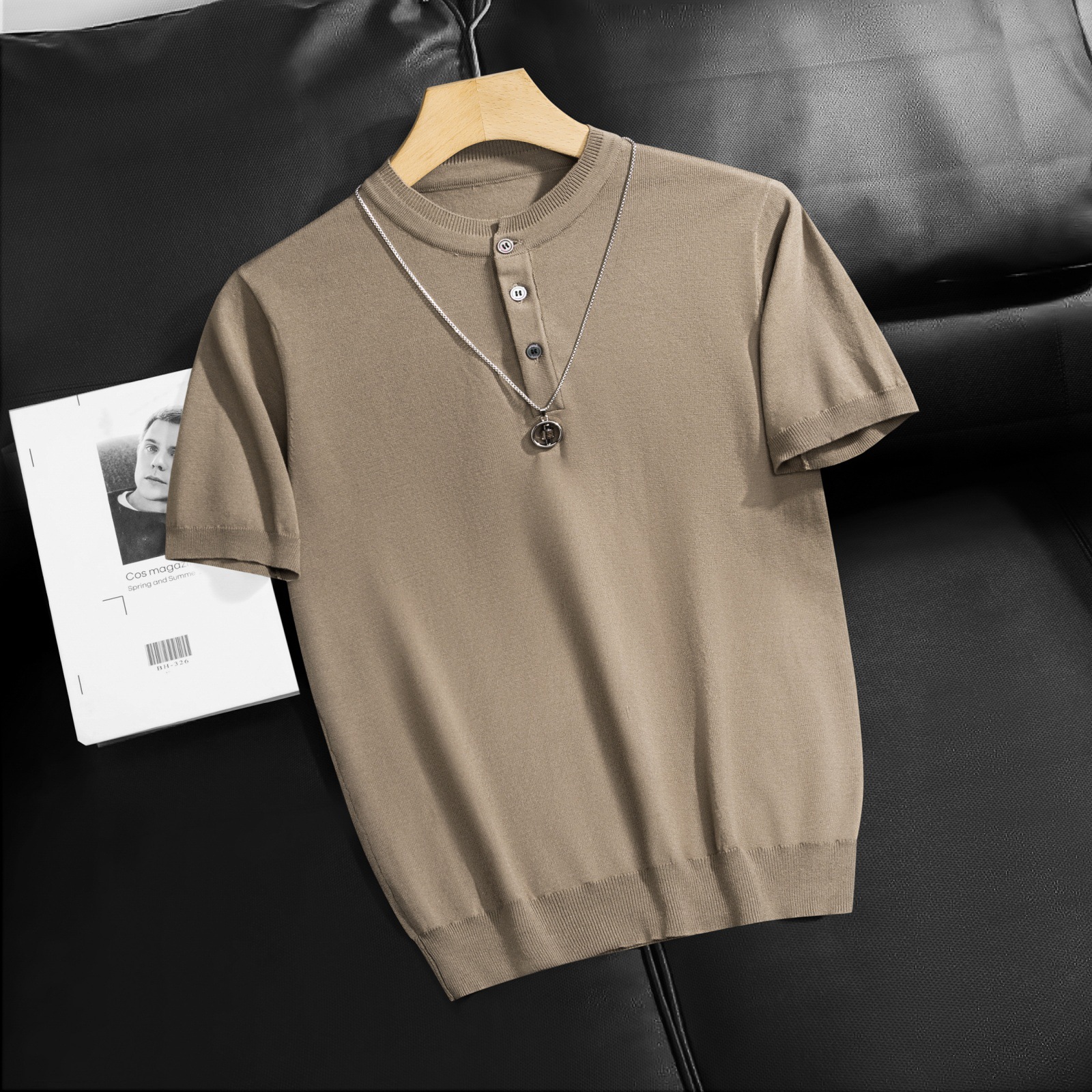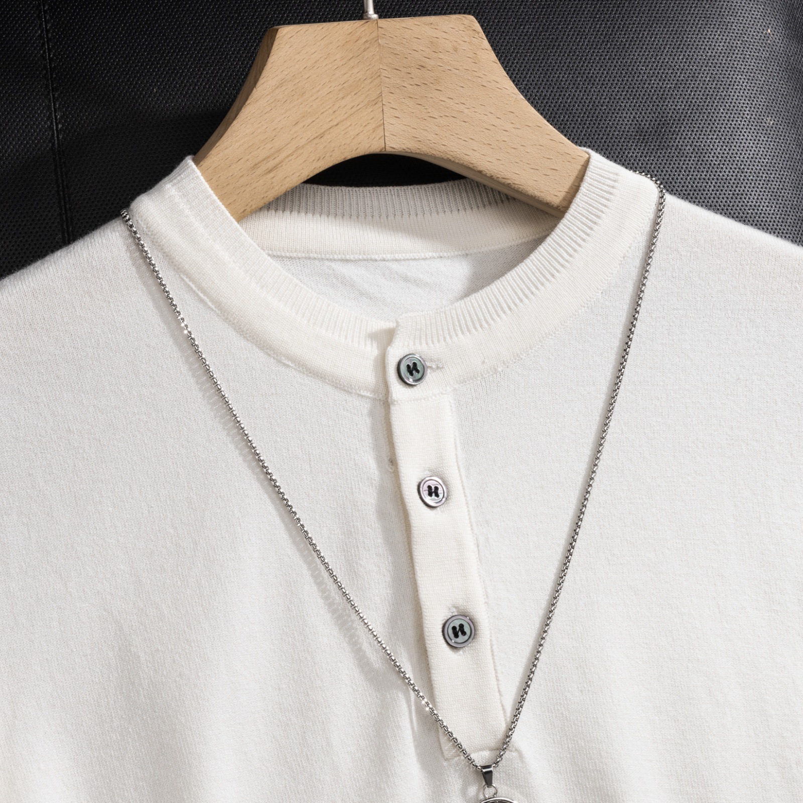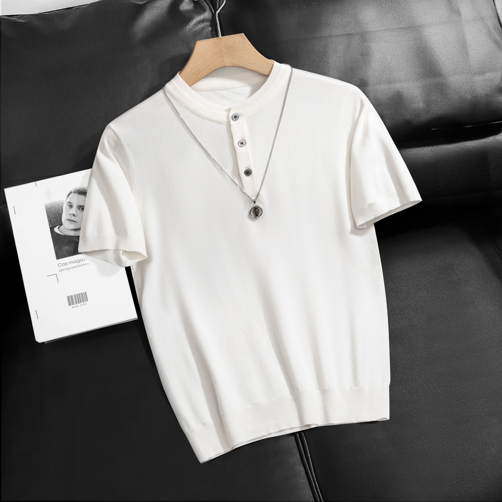 2025 봄 여름 고품질 피부 친화적인 화이트 헨리 칼라 반팔 스웨터 남성 슬림핏 라이트 럭셔리 스웨터 반팔스토어 가기