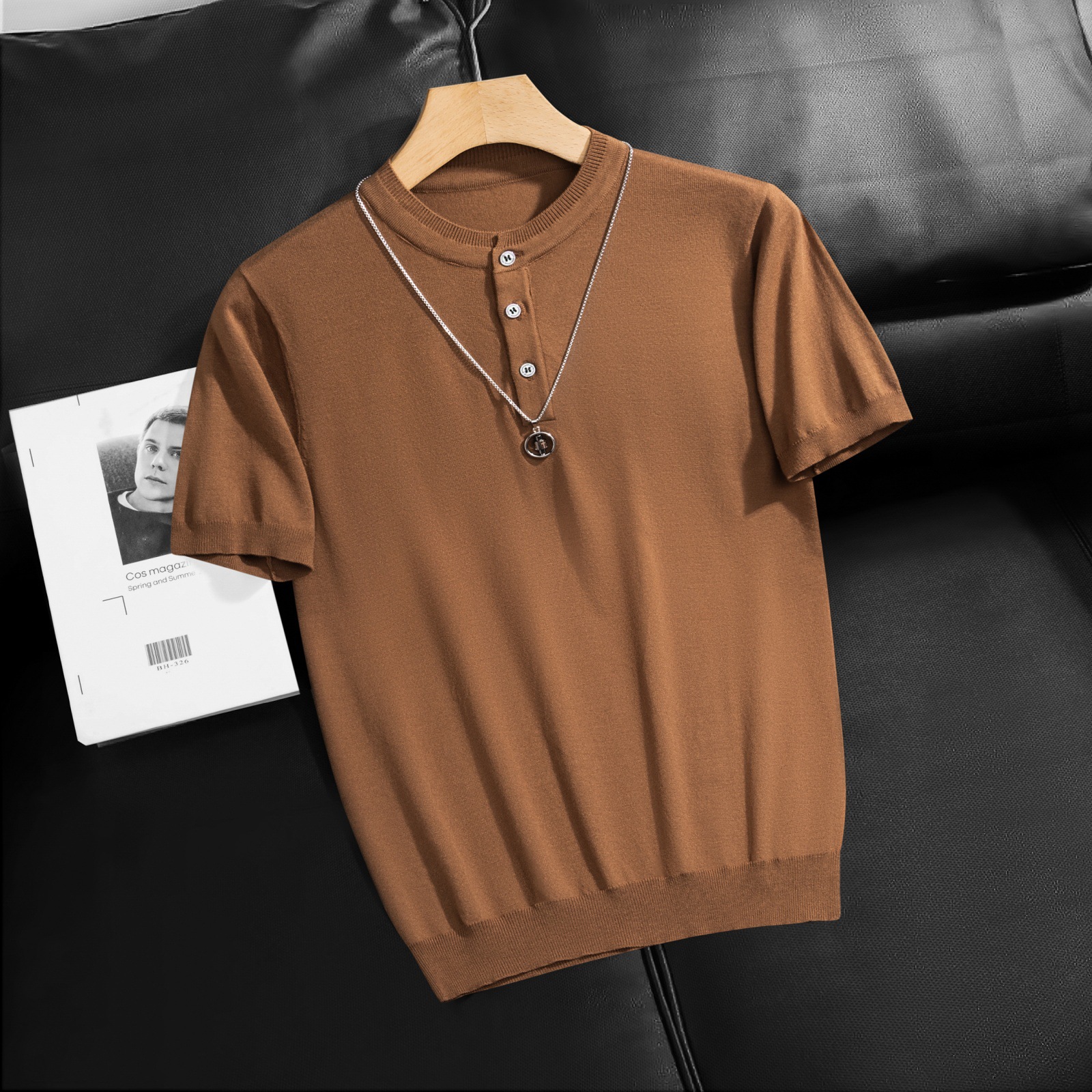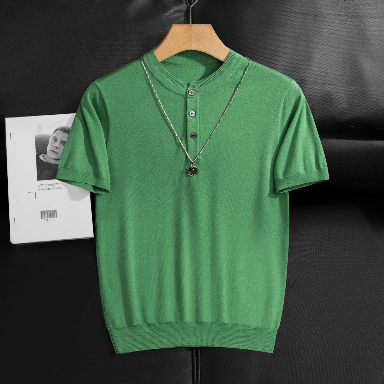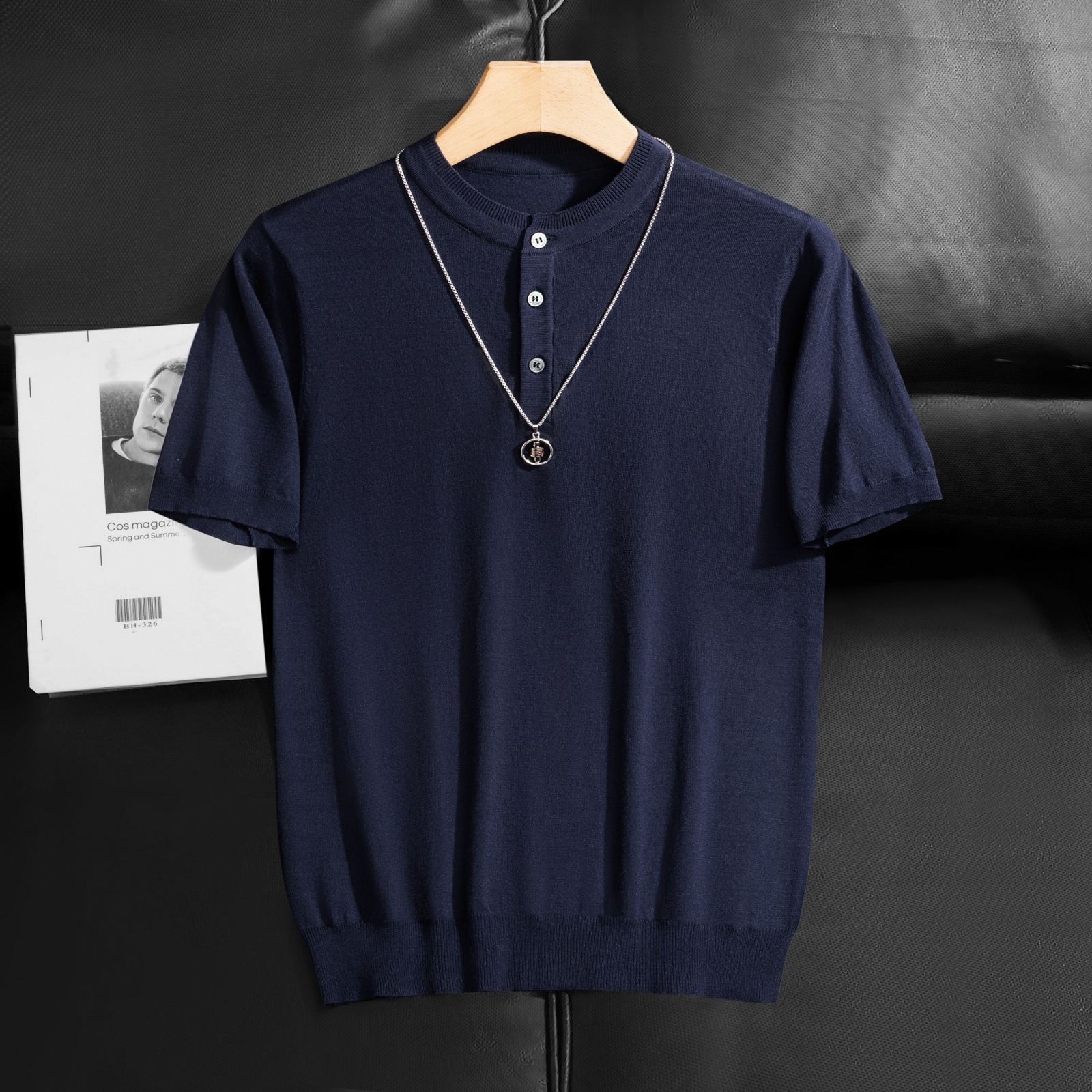 2025 봄 여름 고품질 피부 친화적인 화이트 헨리 칼라 반팔 스웨터 남성 슬림핏 라이트 럭셔리 스웨터 반팔스토어 가기