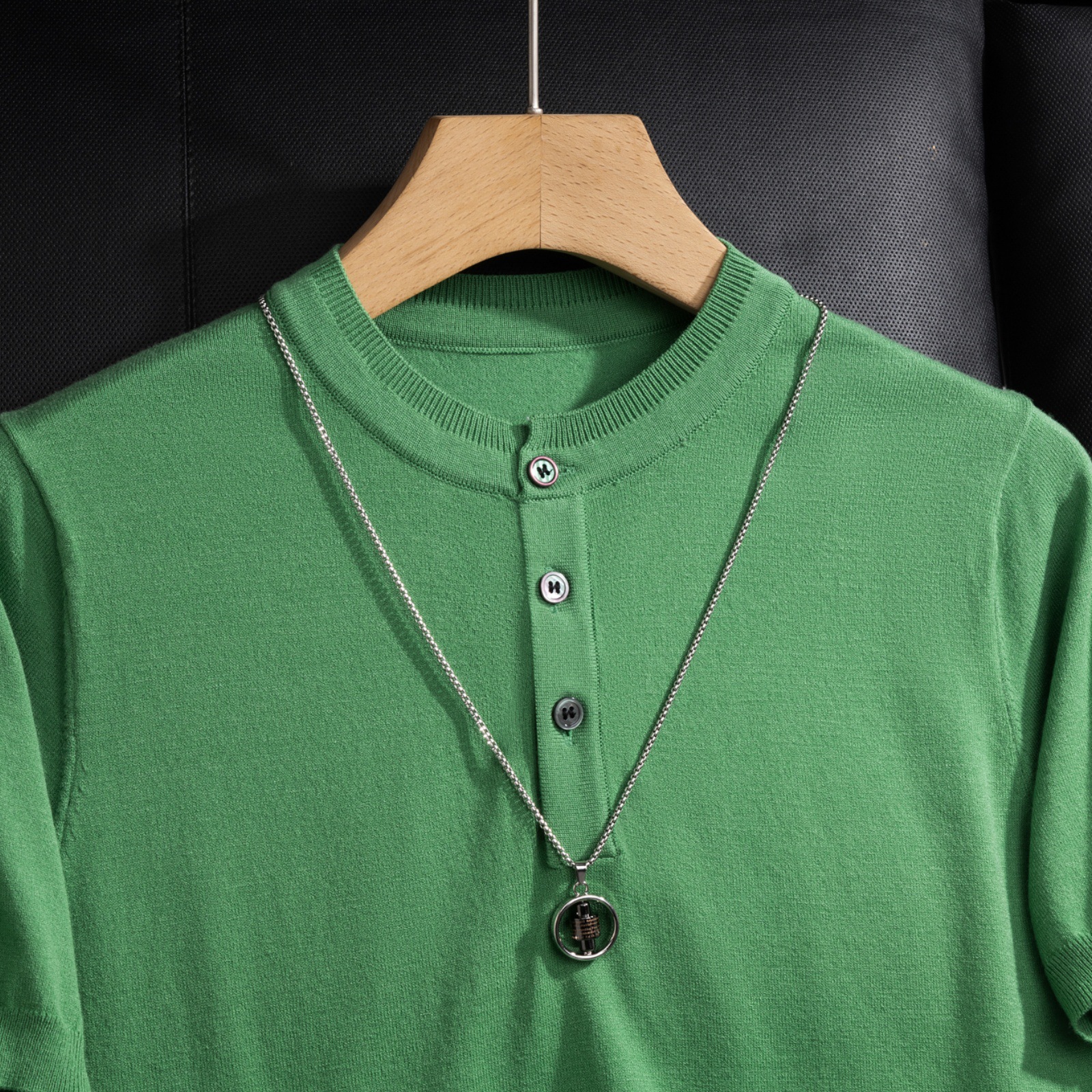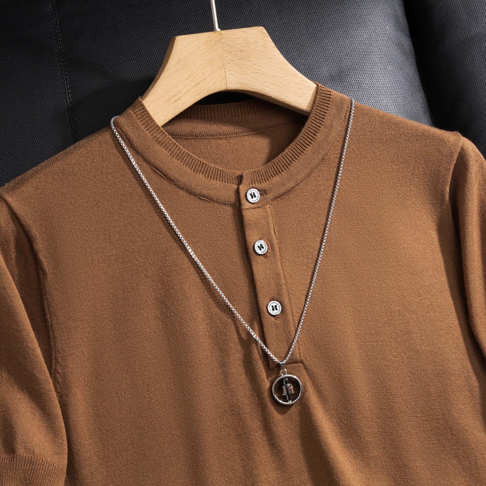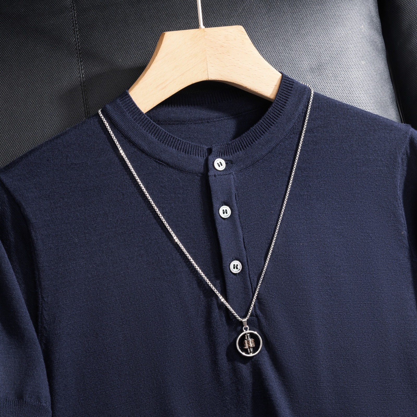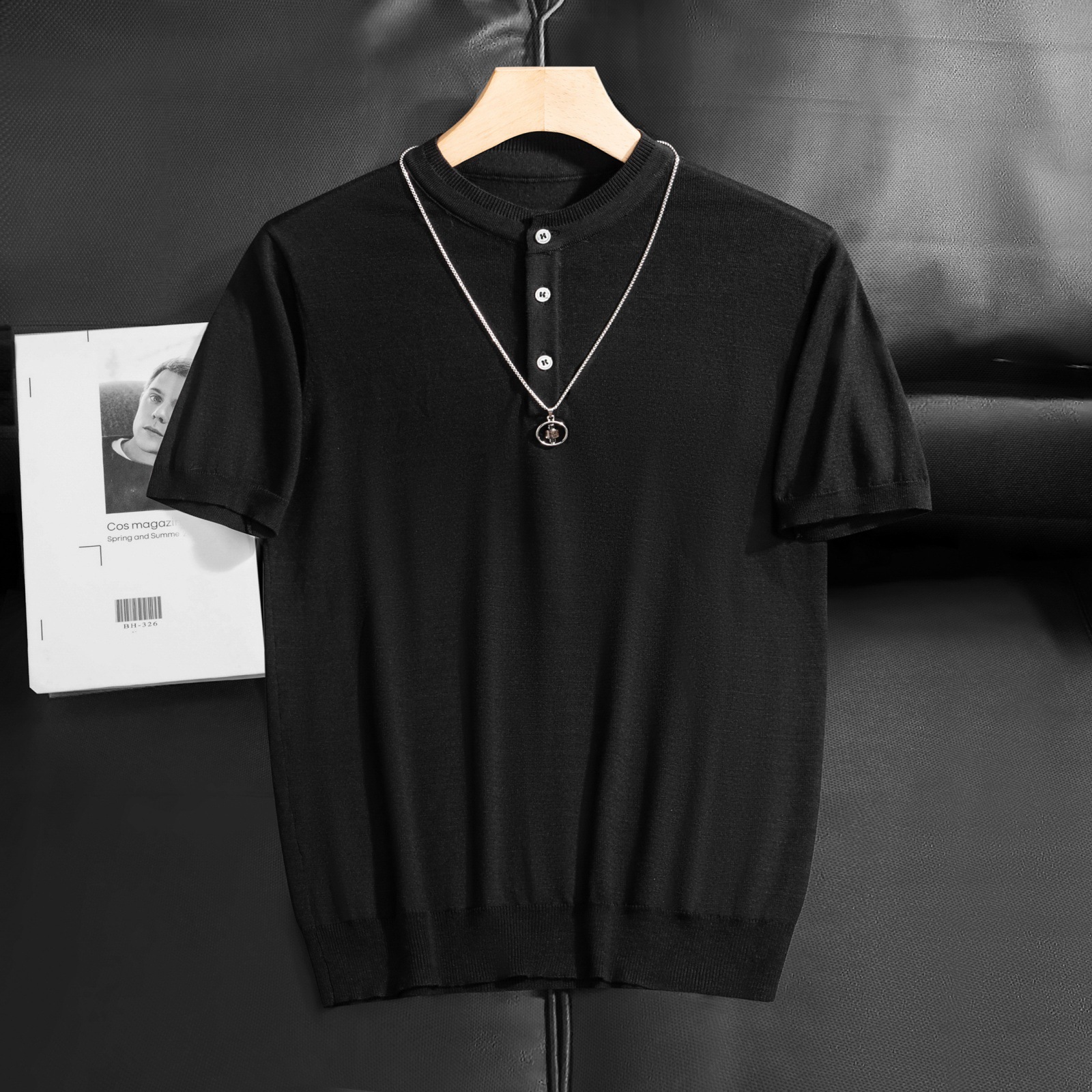 2025 봄 여름 고품질 피부 친화적인 화이트 헨리 칼라 반팔 스웨터 남성 슬림핏 라이트 럭셔리 스웨터 반팔스토어 가기