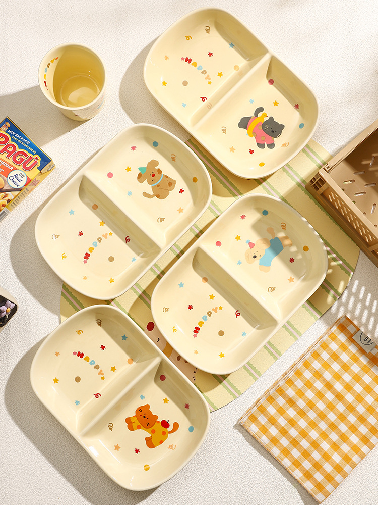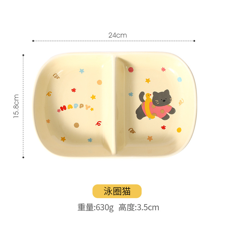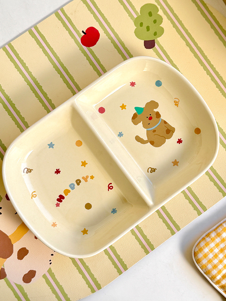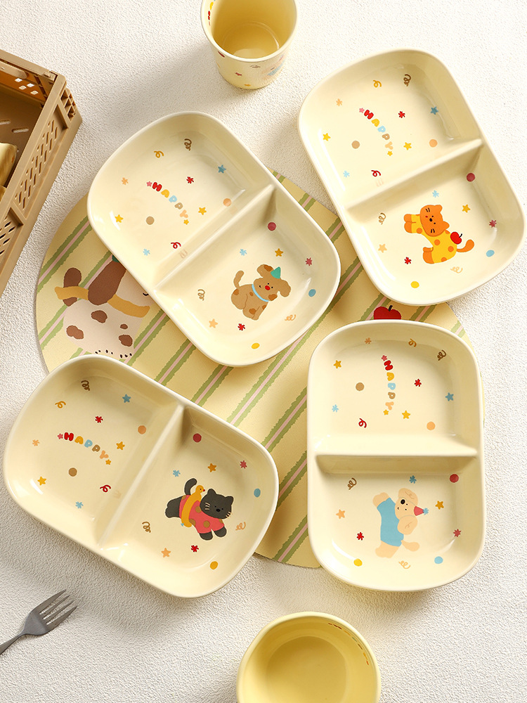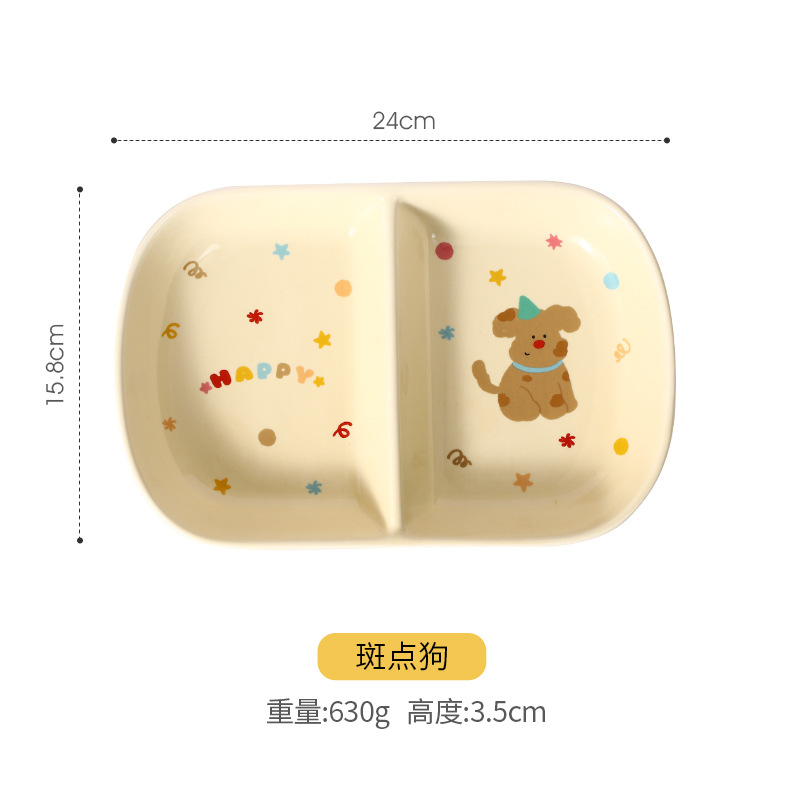 귀여운 고양이와 강아지 1인용 분할 접시, 어린이 접시, 가정용 분할 접시, 성인용 지방 감량 세라믹 아침 식사 접시스토어 가기