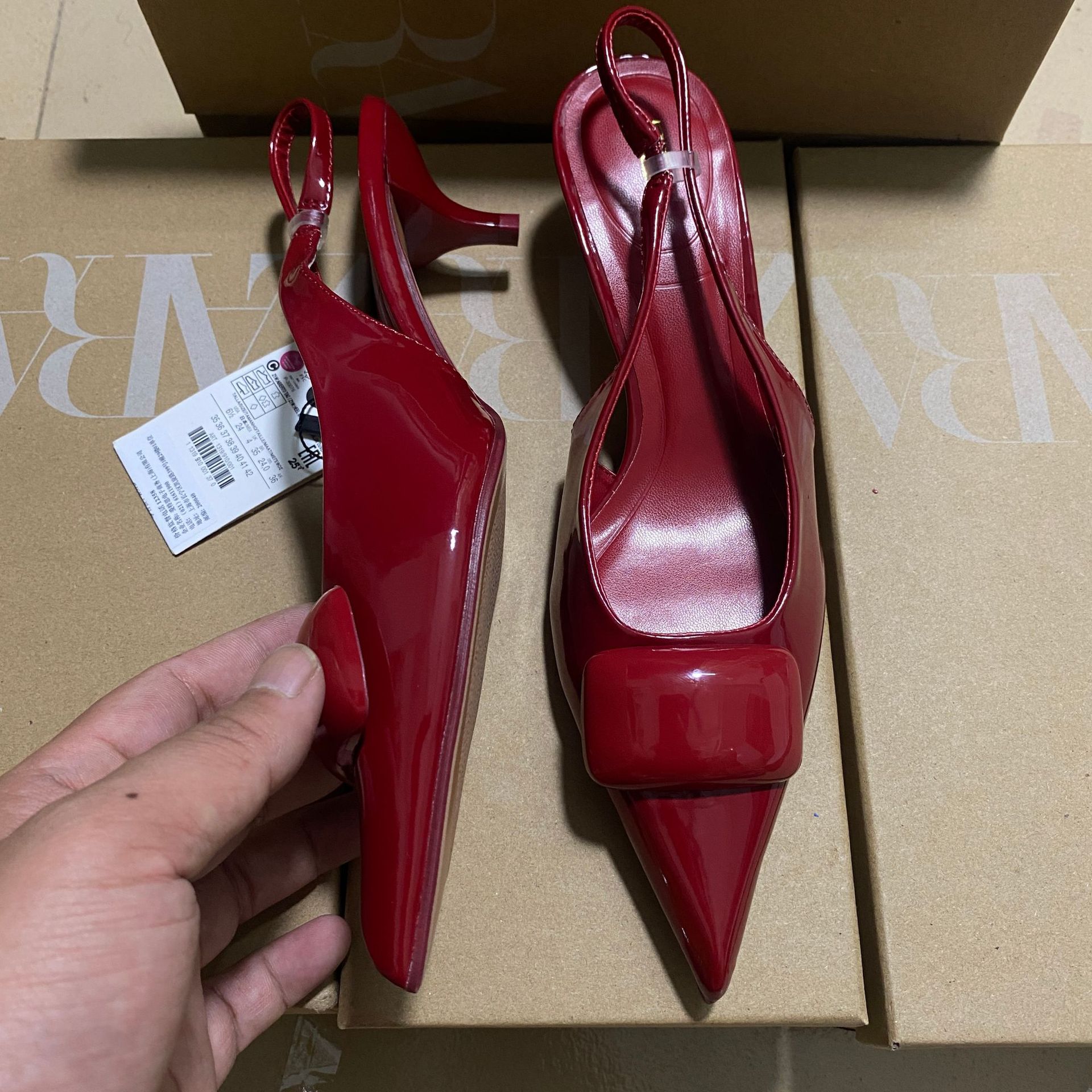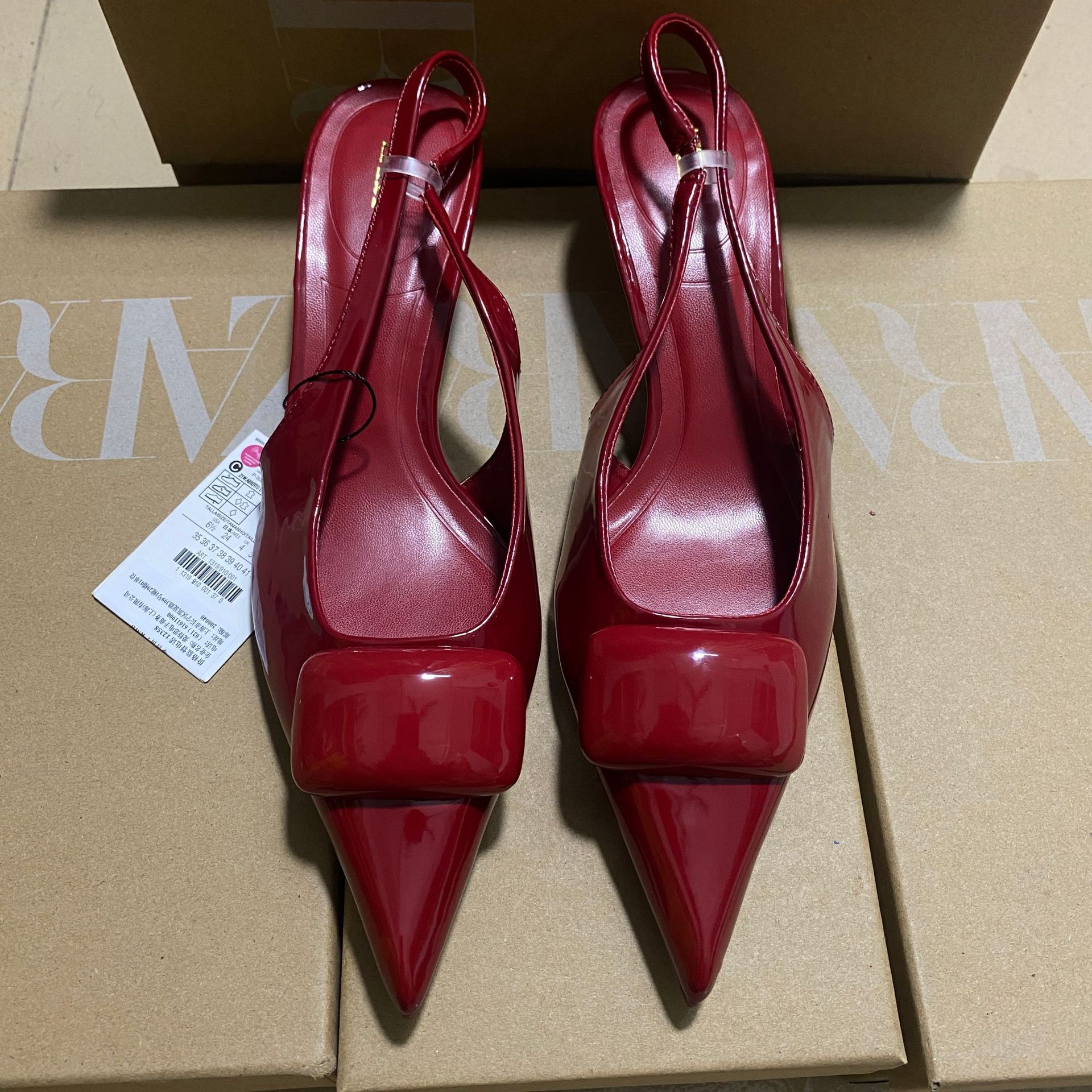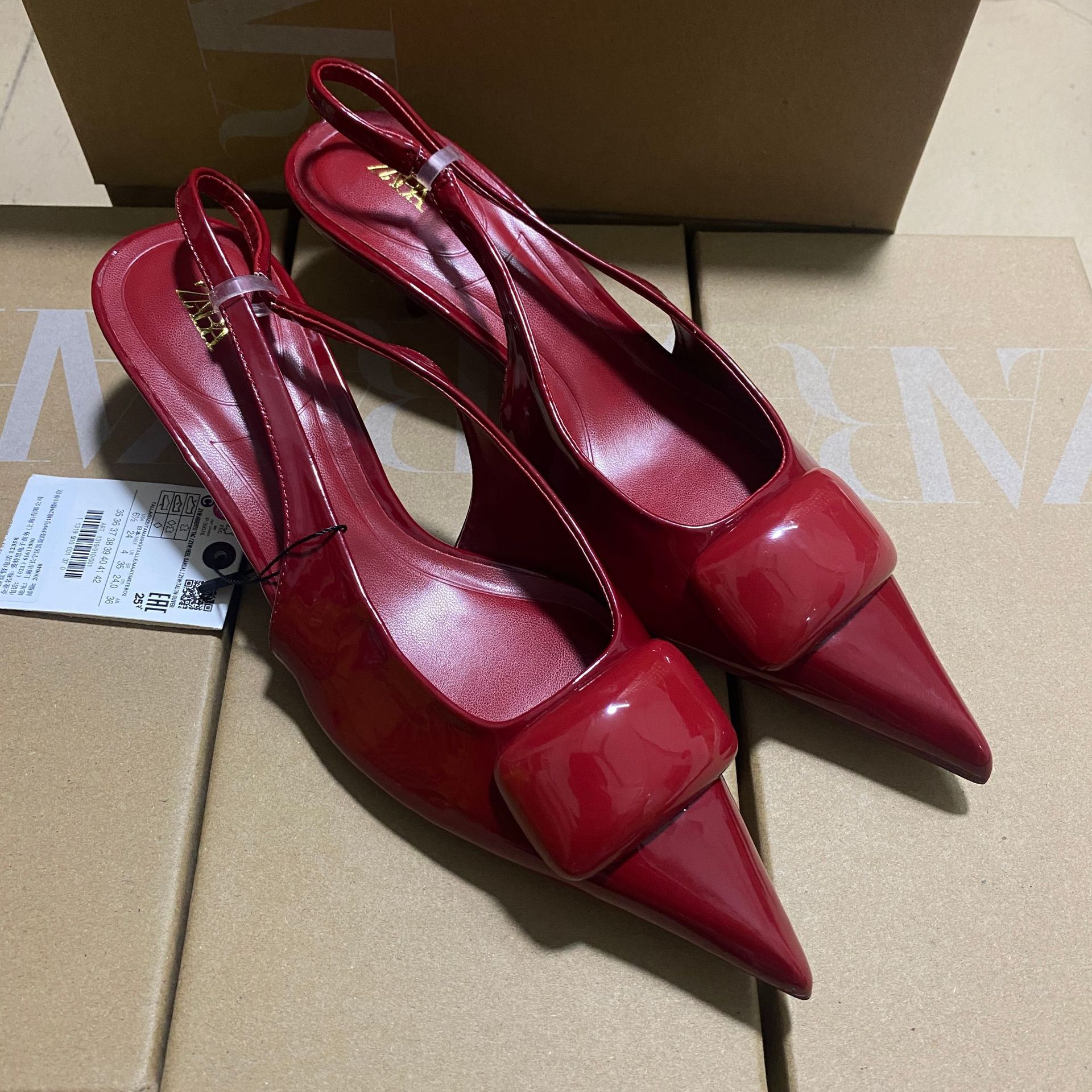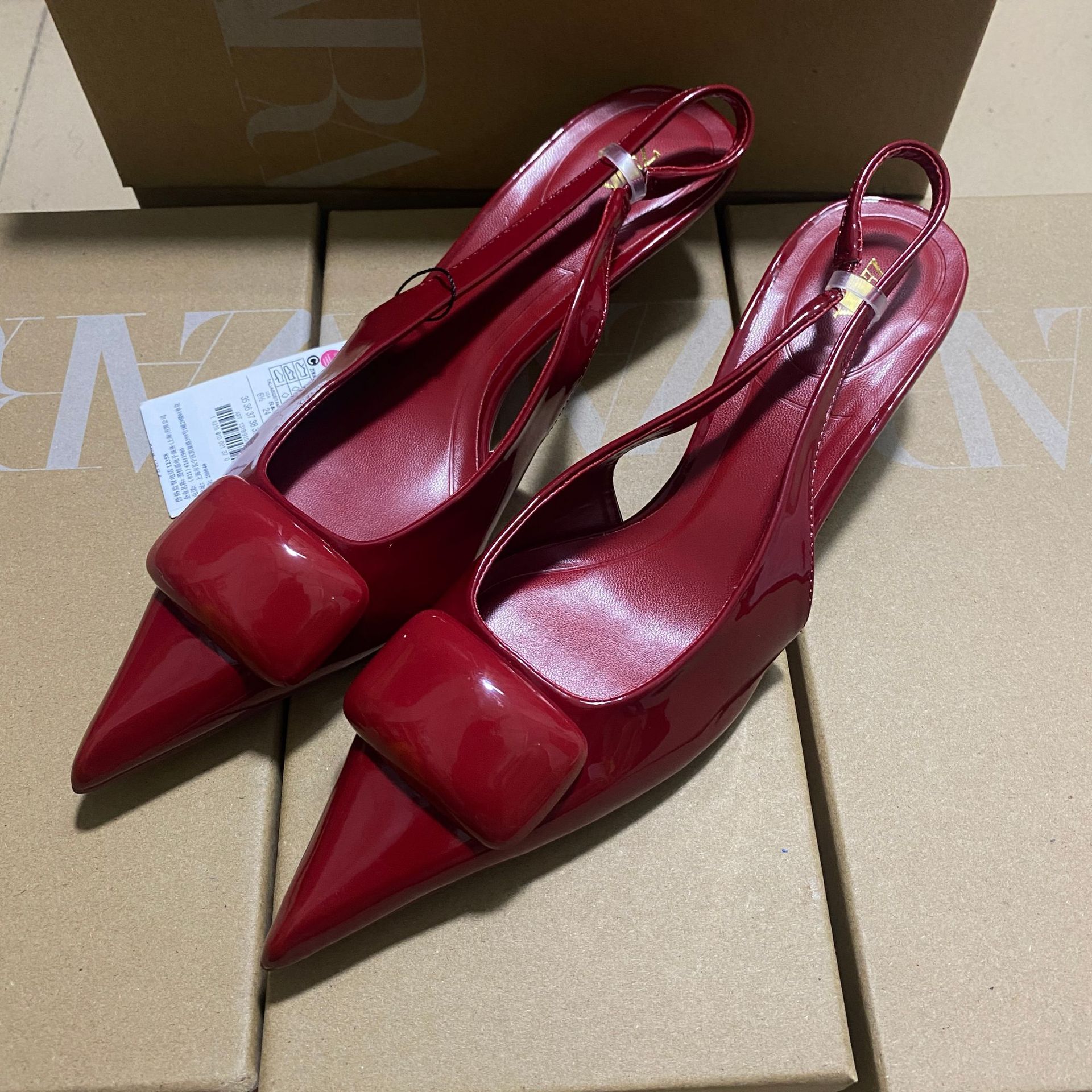 ZA의 2025년 신형 스페인 연예인 여성 구두 포인티드 토 버클 하이힐 여성용 버건디 샌들스토어 가기